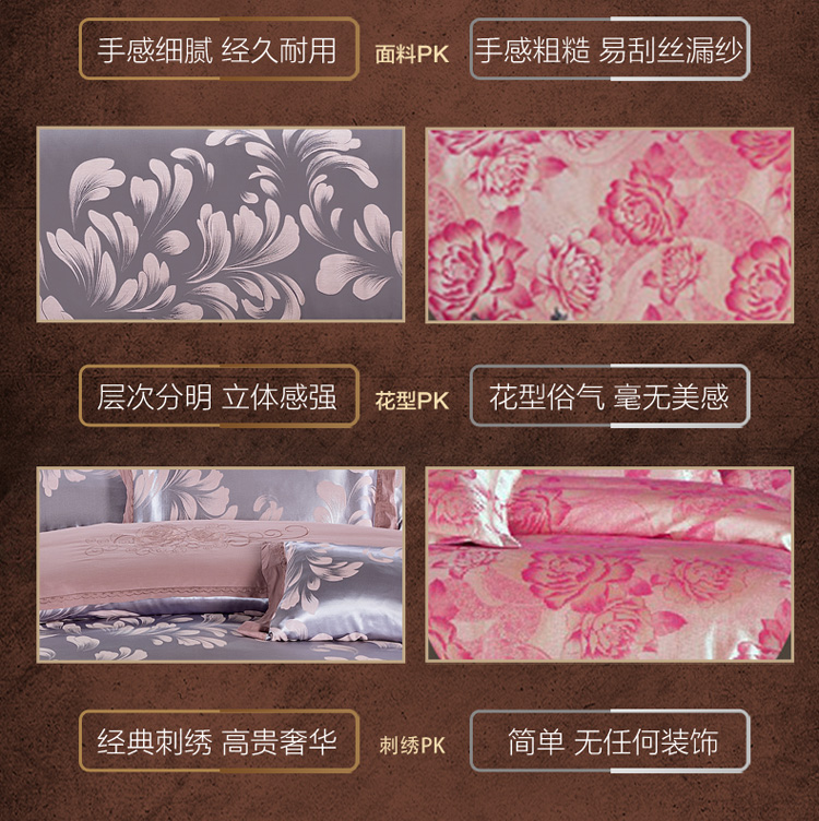 (总)柔觉家纺 天丝刺绣贡缎提花全棉四件套,艾利斯-兰金,宝琪-藕荷玉,罗娜恋歌-粉,奥威丽雅-蓝,奥薇丽雅(豆沙),龙凤交鸣(大红),罗娜恋歌-红玉,情恋花语(大红),罗兰庄园-靛蓝,莫奈情怀-蓝金,叶语浪漫-浅紫,约瑟情调-灰金,约瑟情调-魅紫,雅普诺-卡兰,小憩-雪青,科西利亚-金色,雅普诺-红灰,水汐-绸缎兰