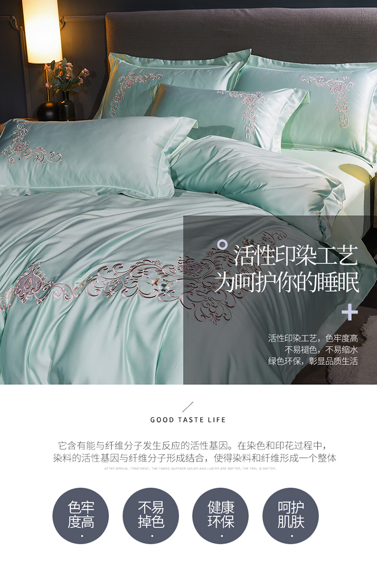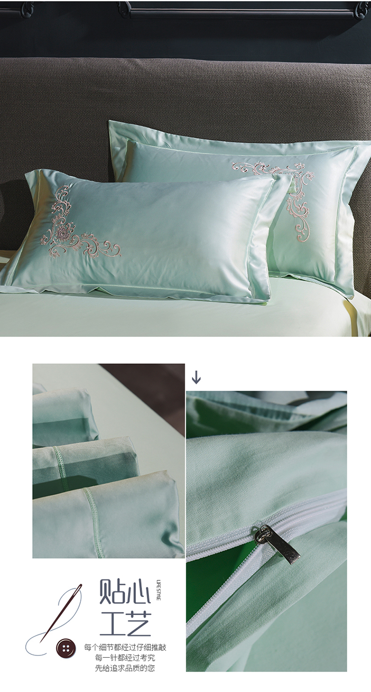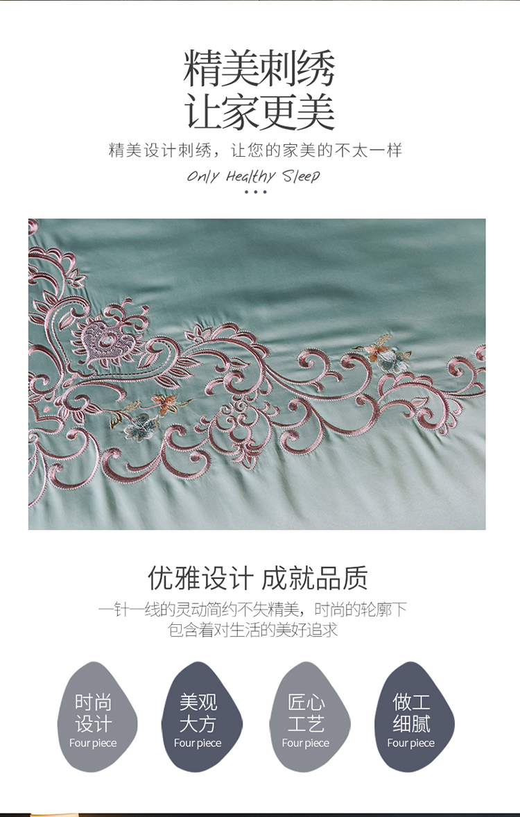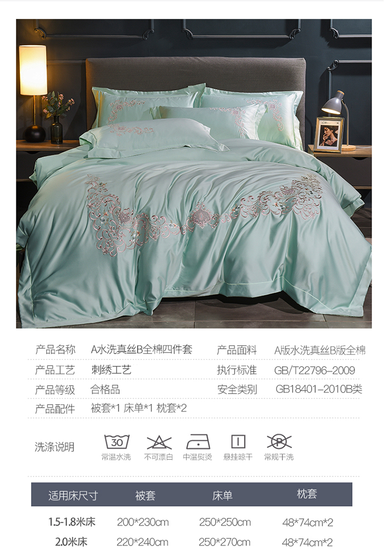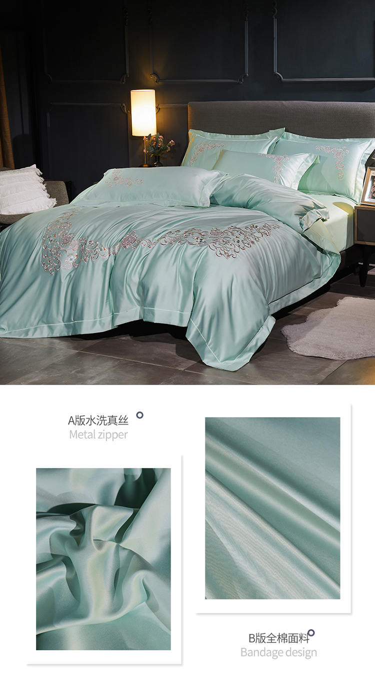 商品名称:安妮 2020新款水洗真丝欧若拉刺绣四件套 欧若拉-水绿