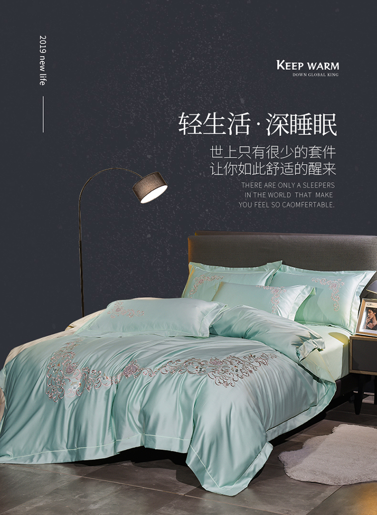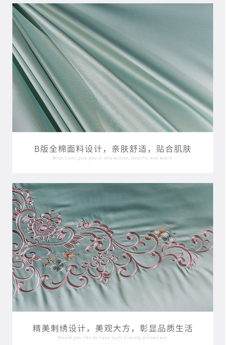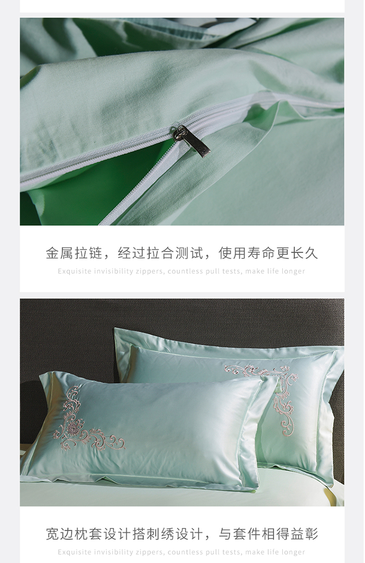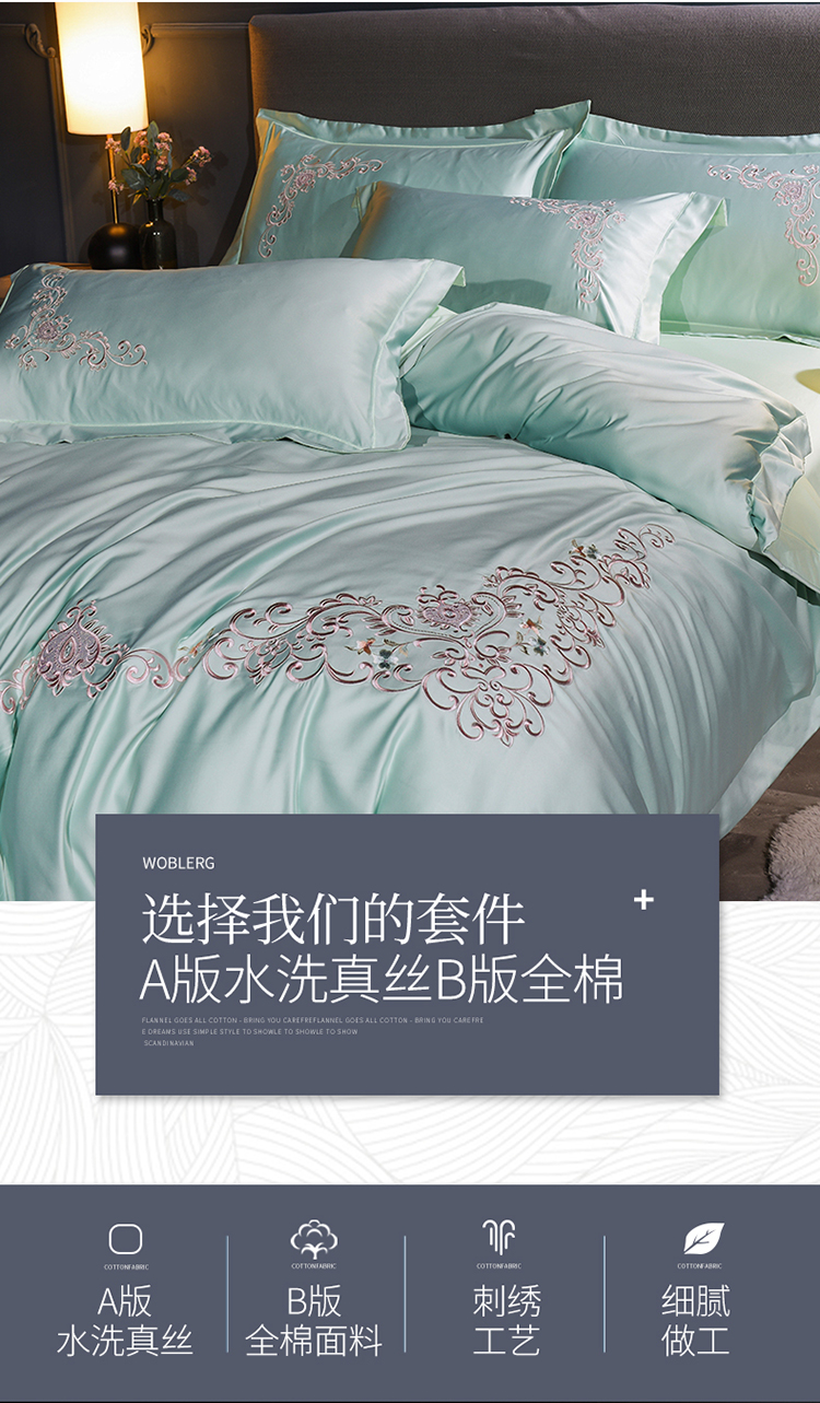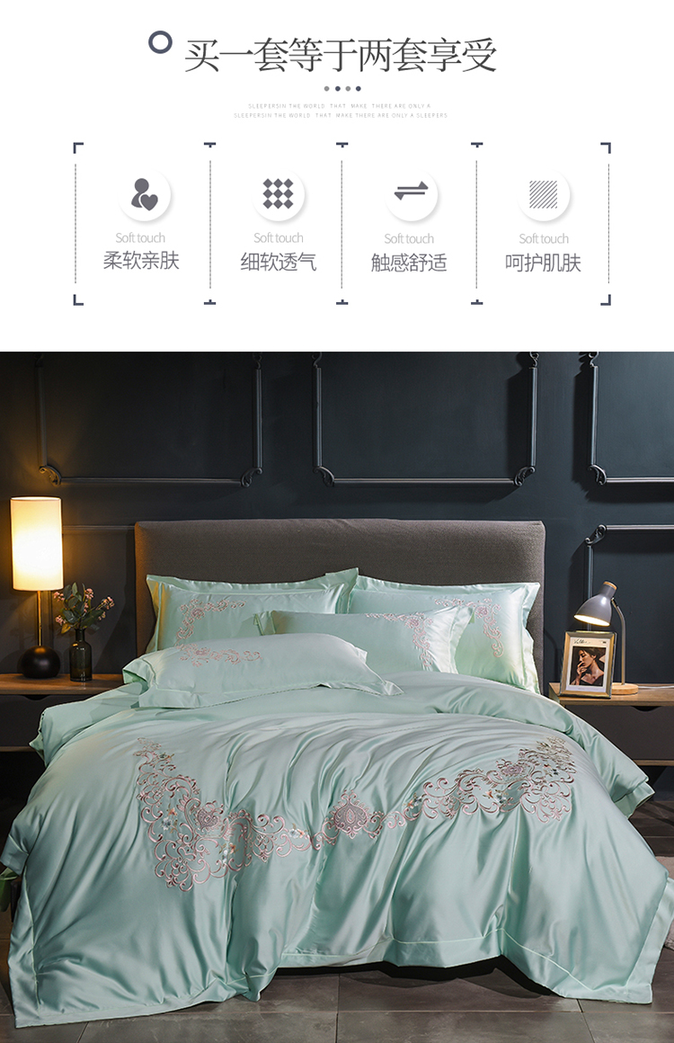 商品名称:安妮 2020新款水洗真丝欧若拉刺绣四件套 欧若拉-水绿