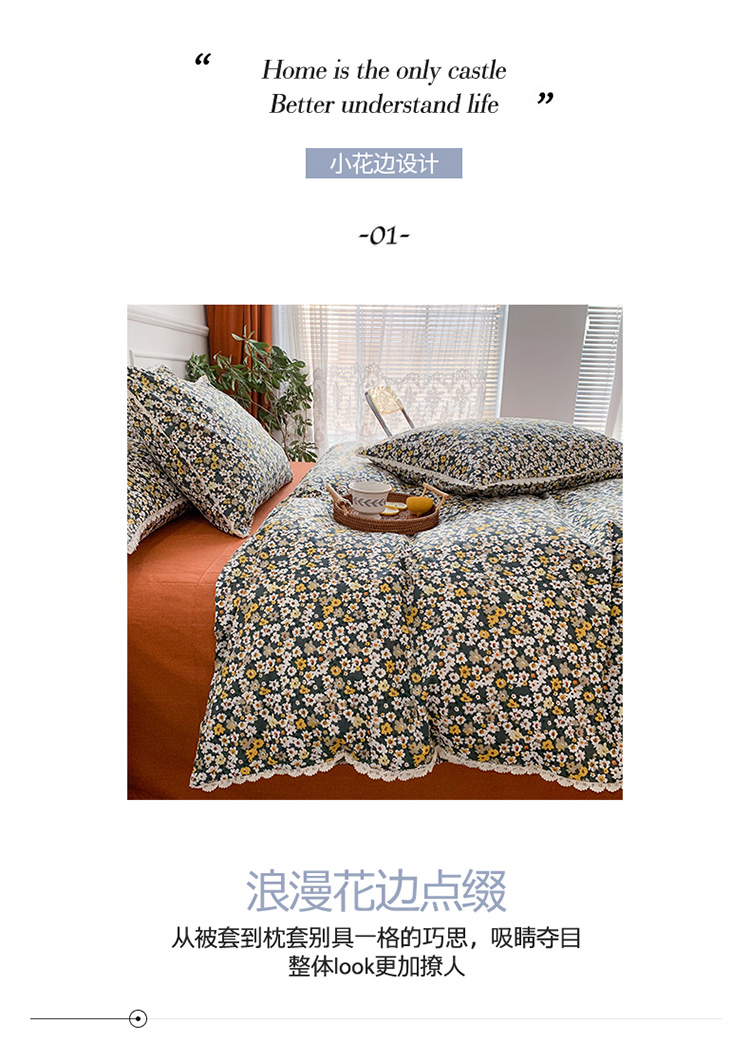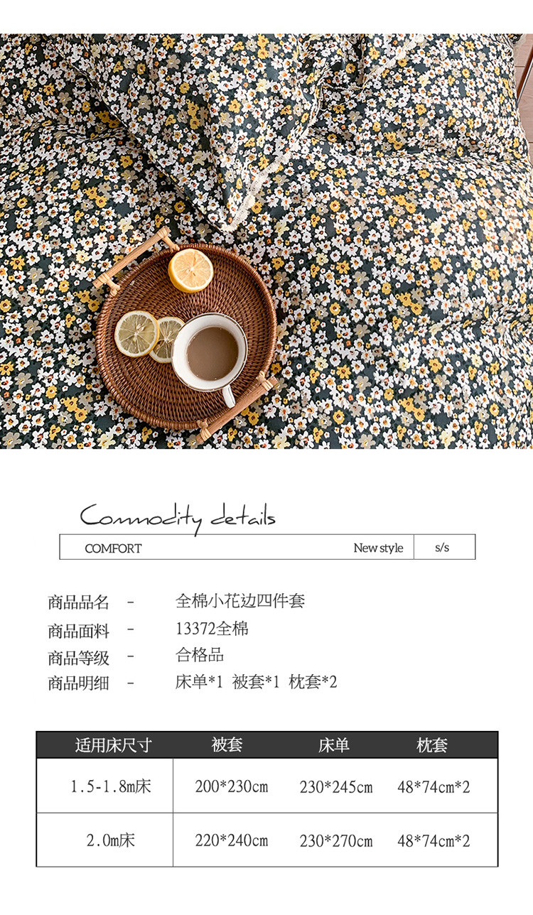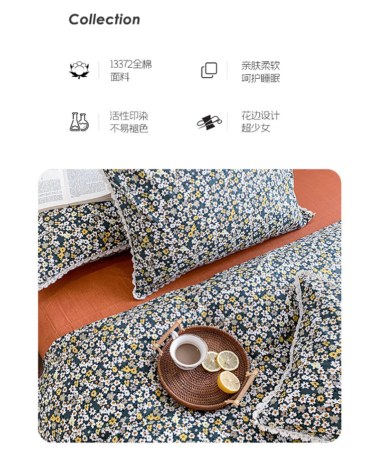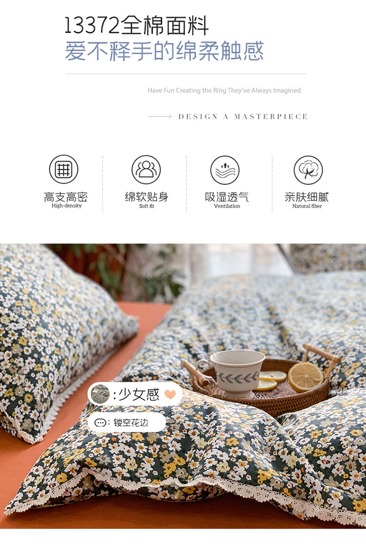 商品名称:澳萝拉 2021新款全棉小花边四件套 日出