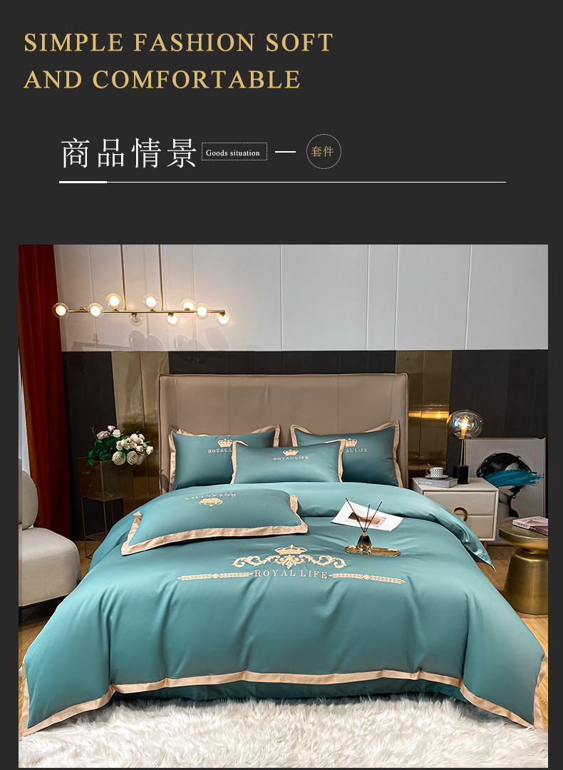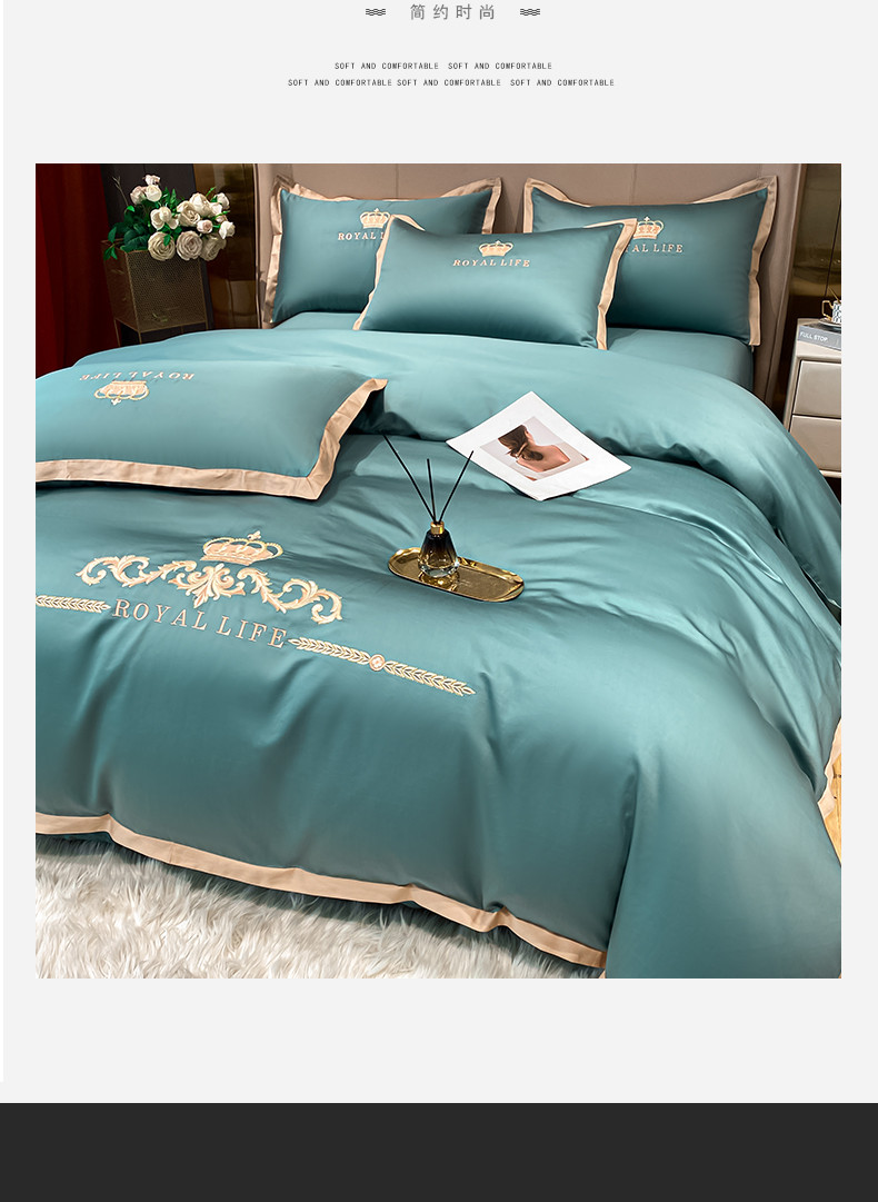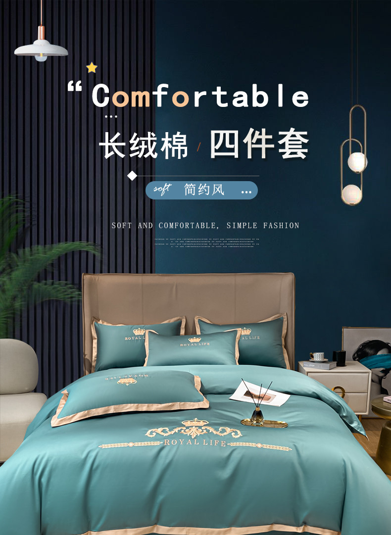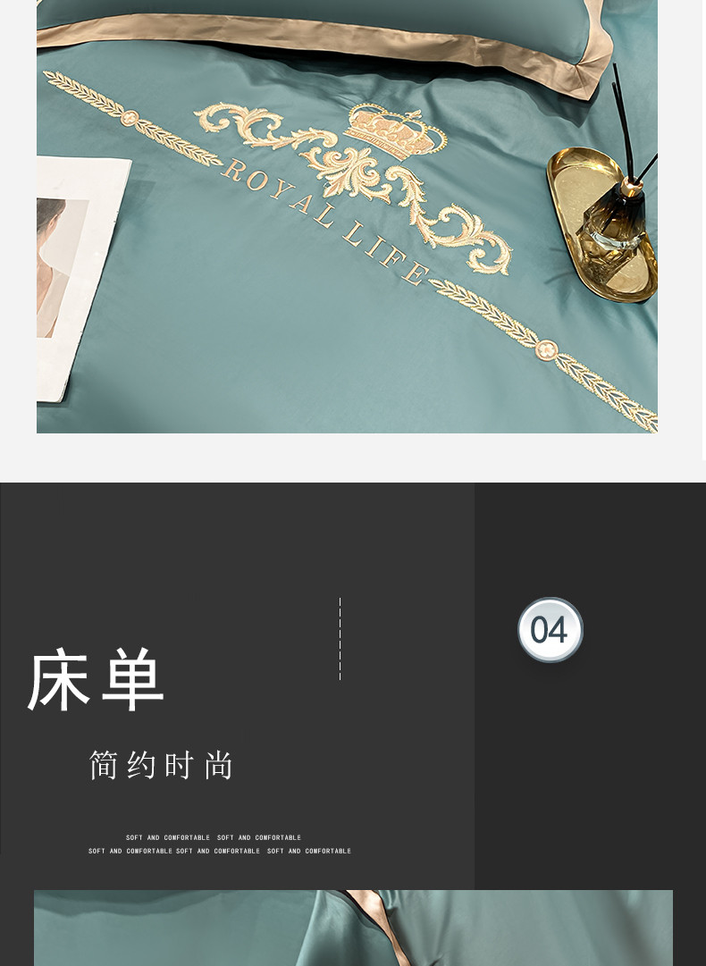 商品名称:安妮家居 2021新款皇冠120s长绒棉四件套 浅石蓝