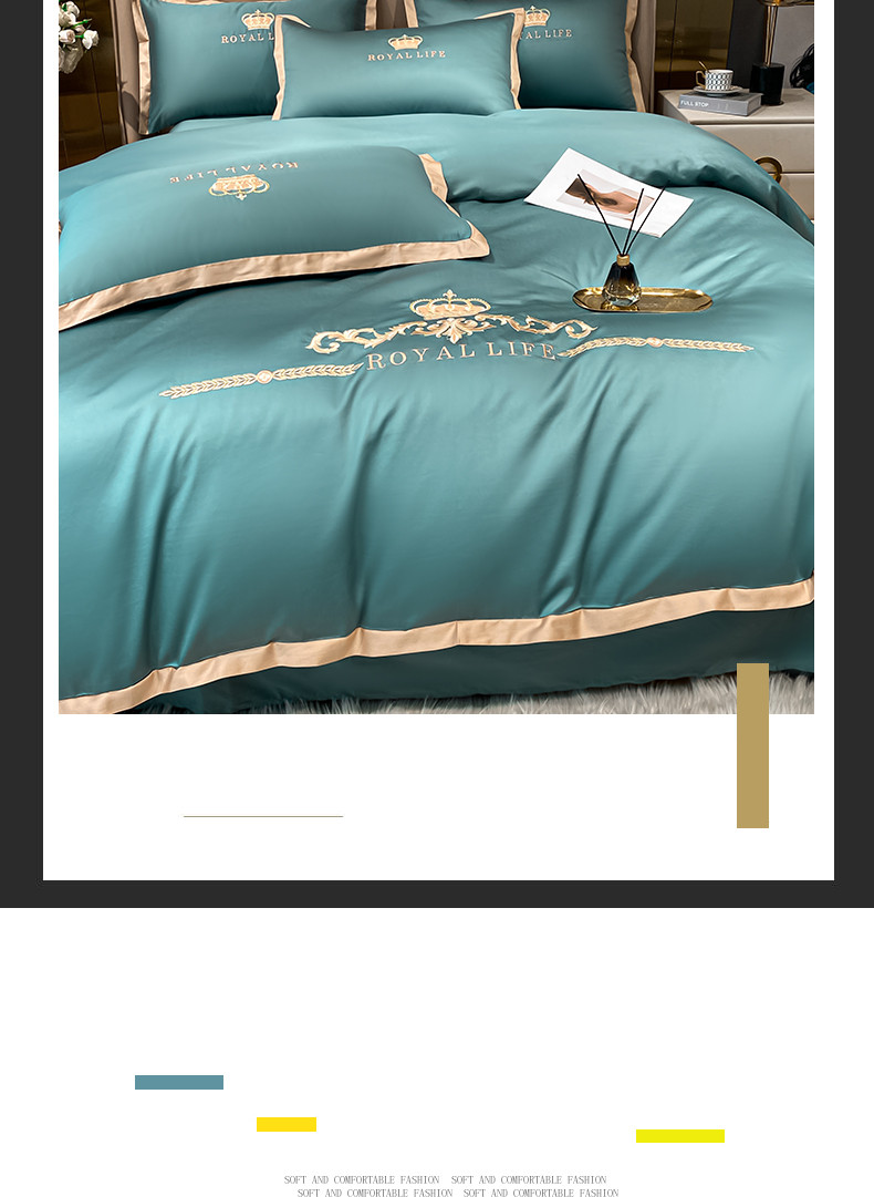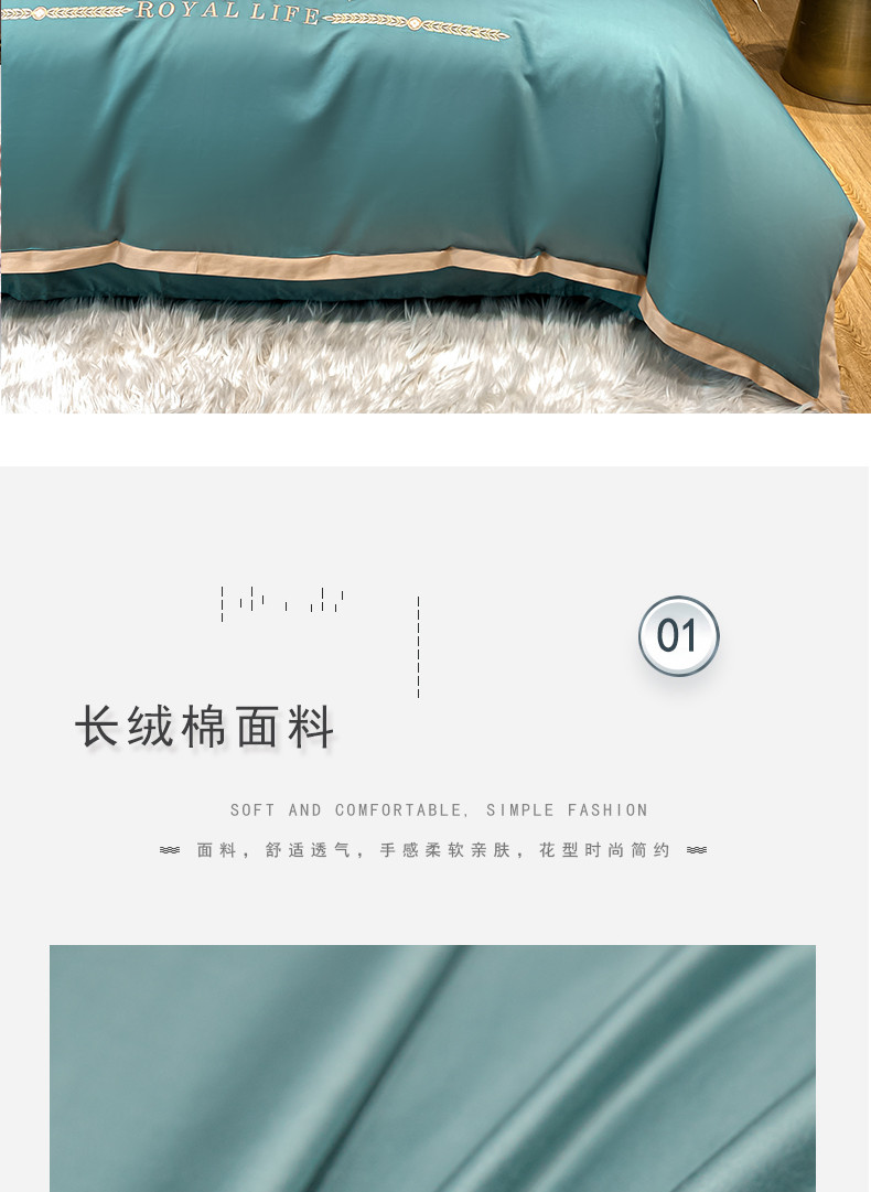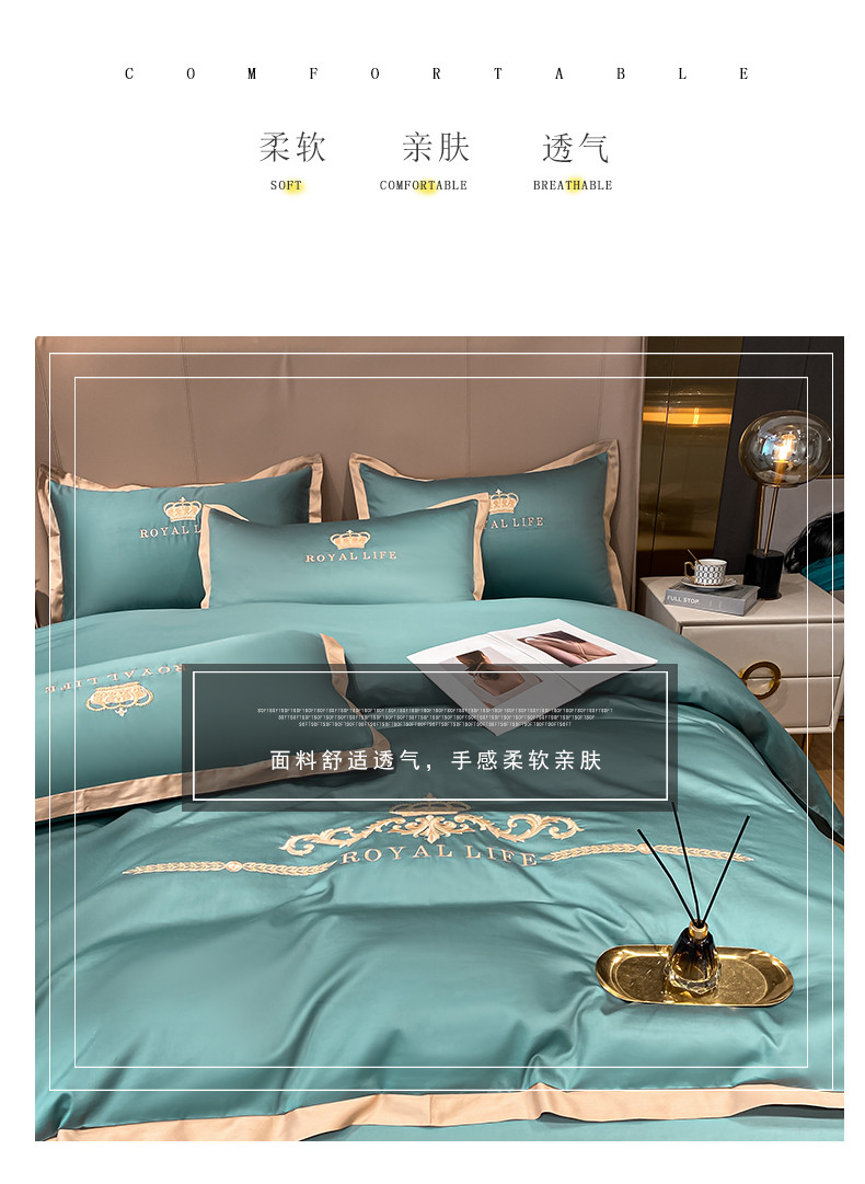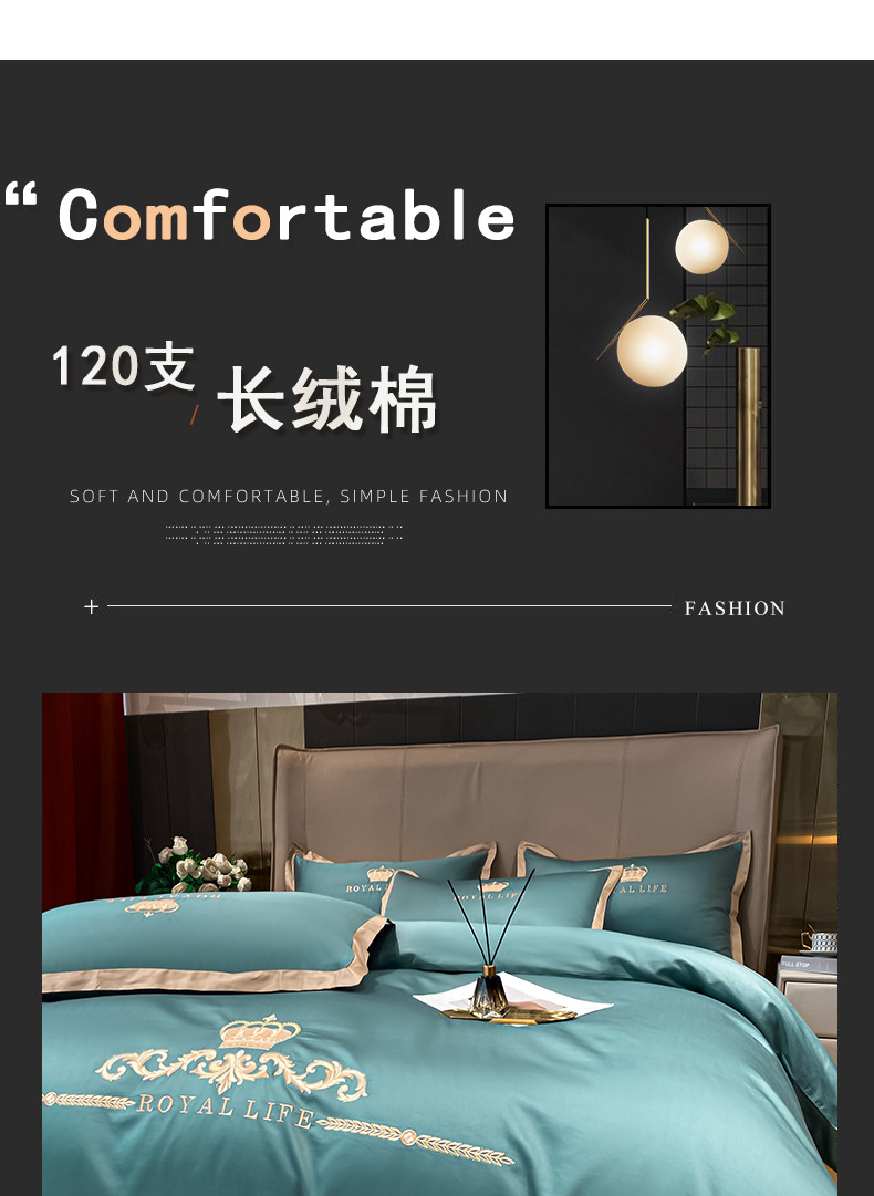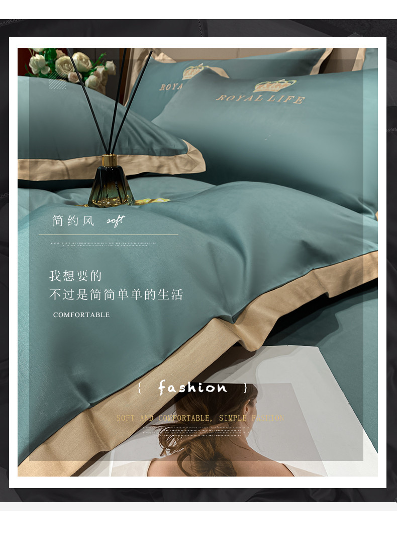 商品名称:安妮家居 2021新款皇冠120s长绒棉四件套 浅石蓝