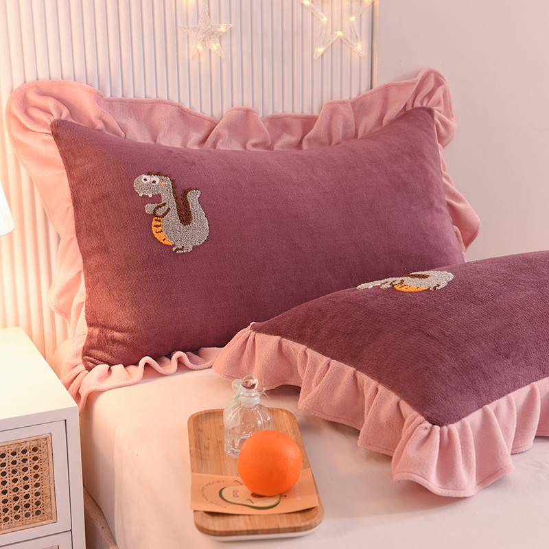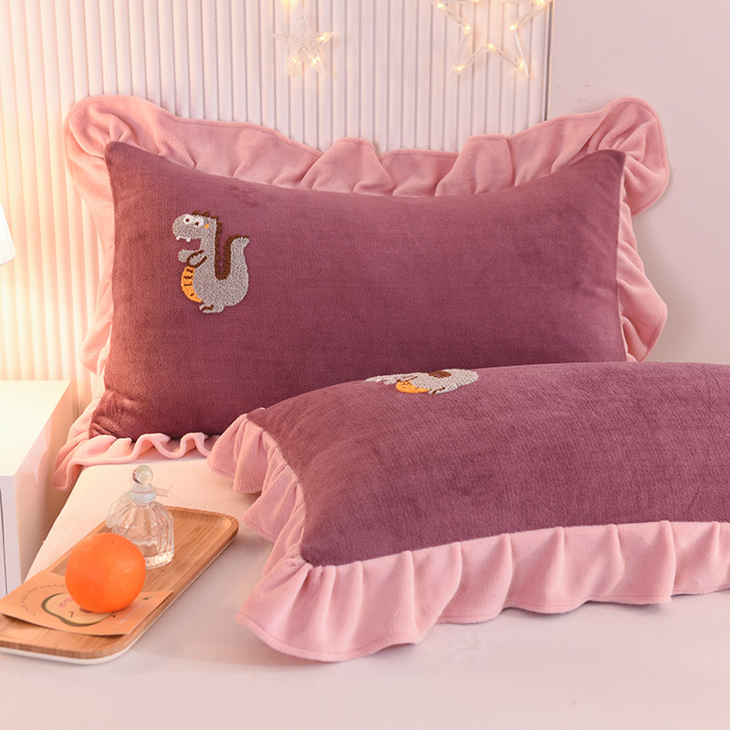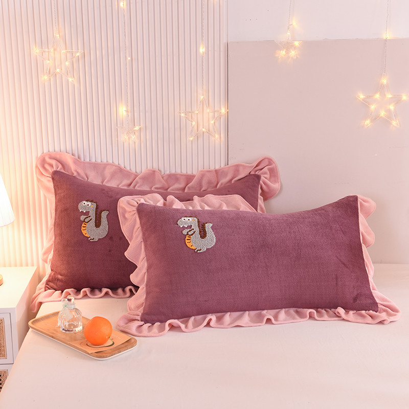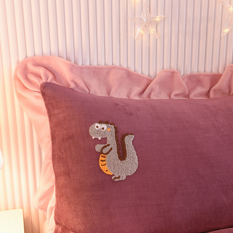 商品名称:甜之梦 2025新款毛巾绣牛奶绒单枕套 乖乖龙紫豆沙