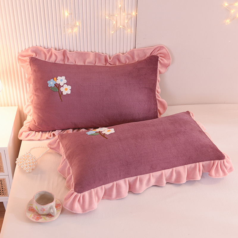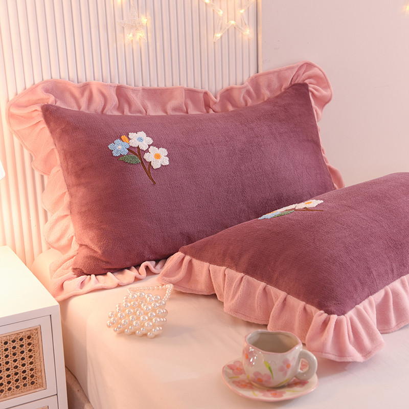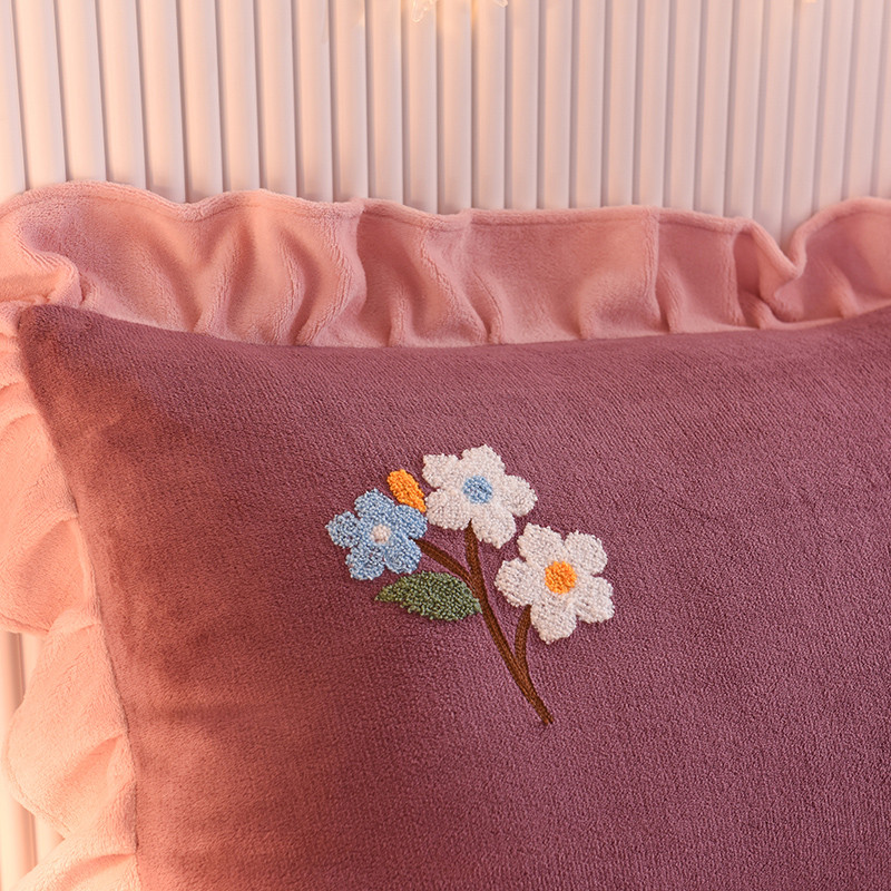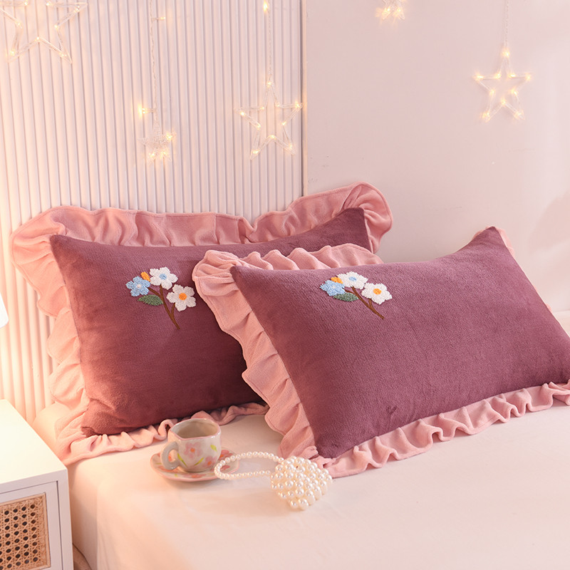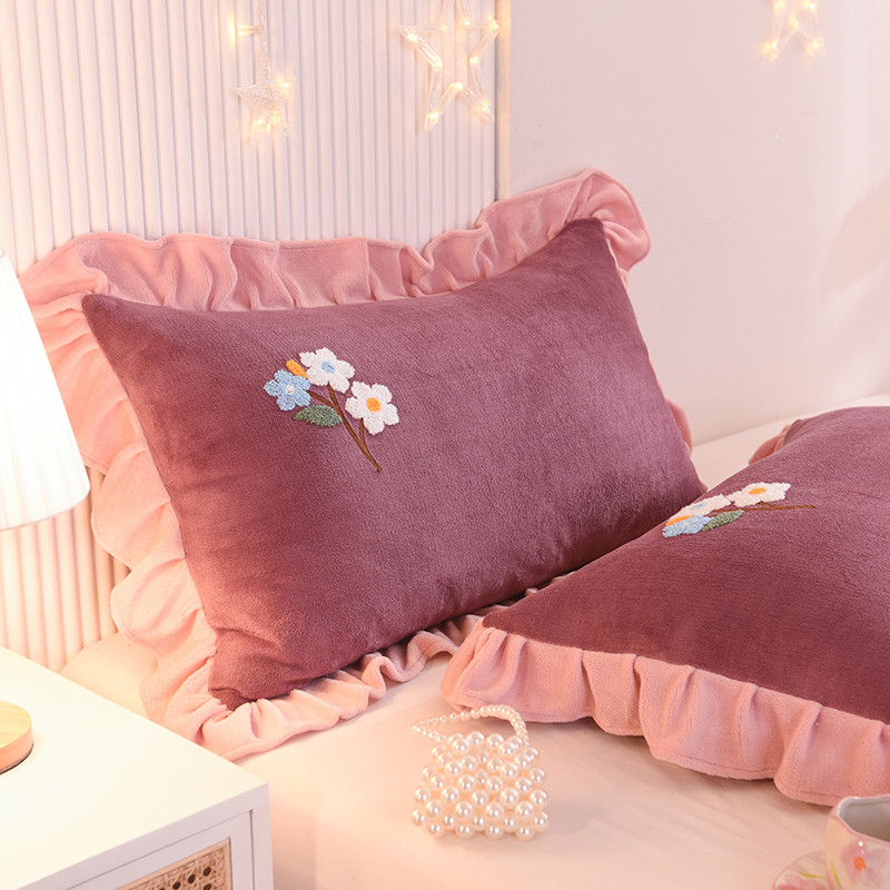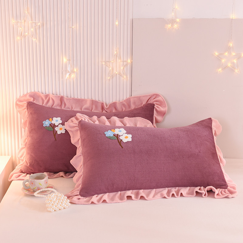 商品名称:甜之梦 2025新款毛巾绣牛奶绒单枕套 满天星紫豆沙