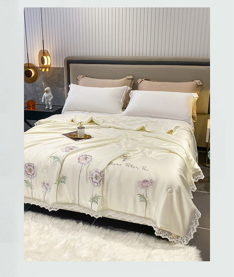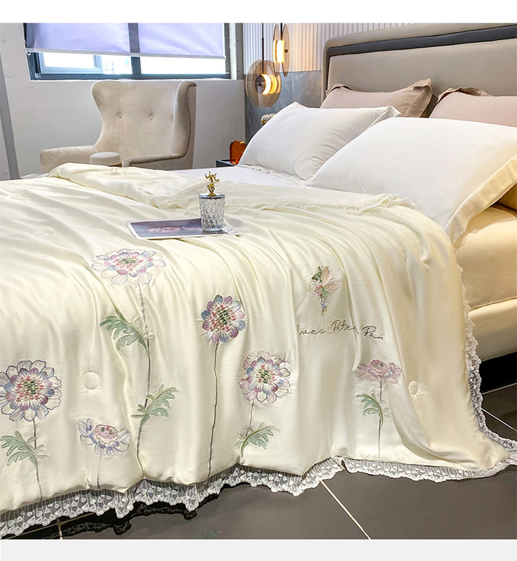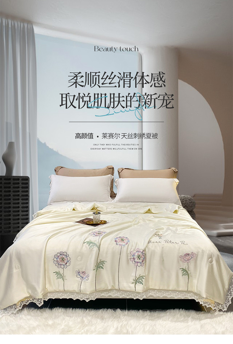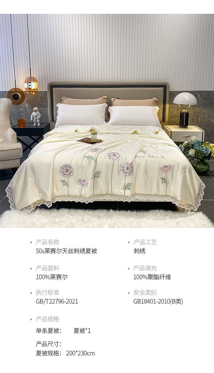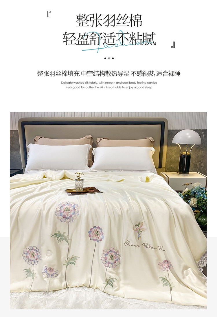 吾秀 2022新款50S莱赛尔天丝刺绣夏被-花仙子 花仙子-米白