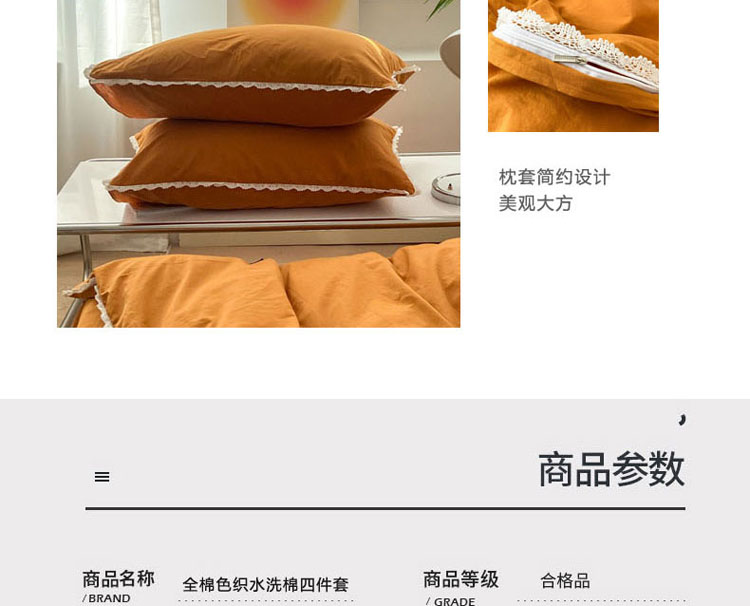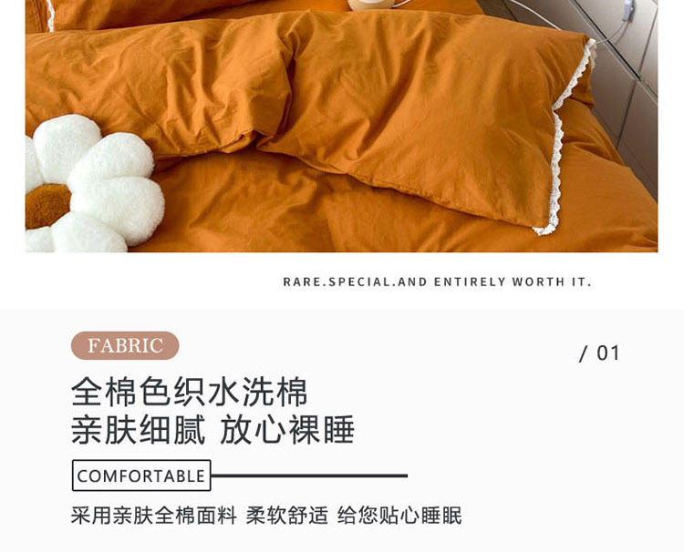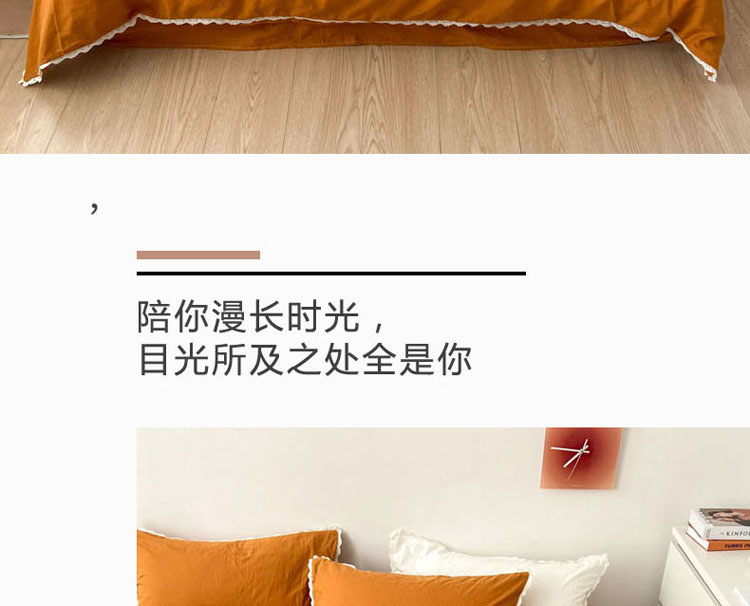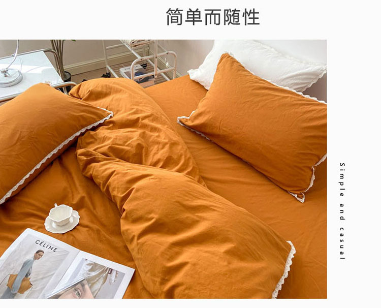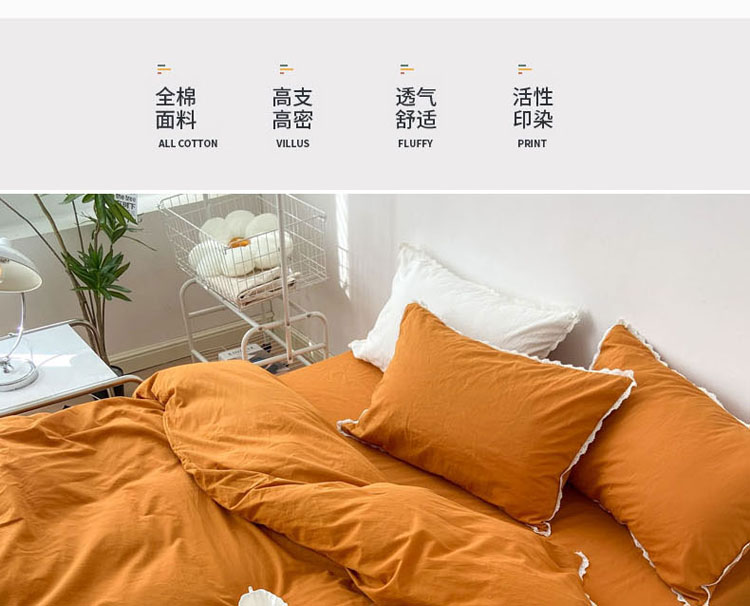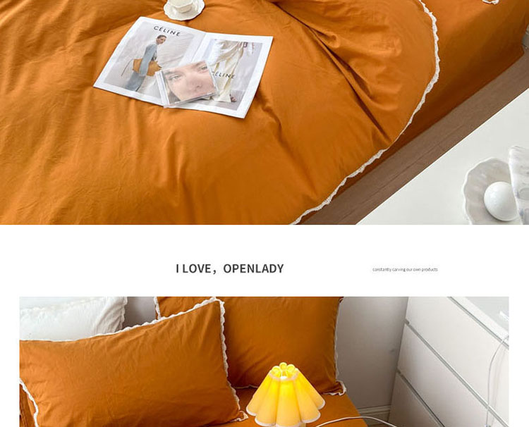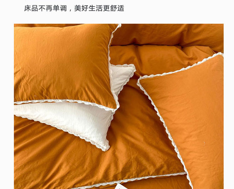 当前位置: 91家纺网 > 商品网购 > 床品套件 > 四件套 > 全棉普通四件套 > 梦家居 2022韩国花边款色织全棉水洗棉四件套 南瓜色