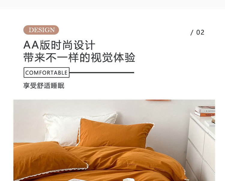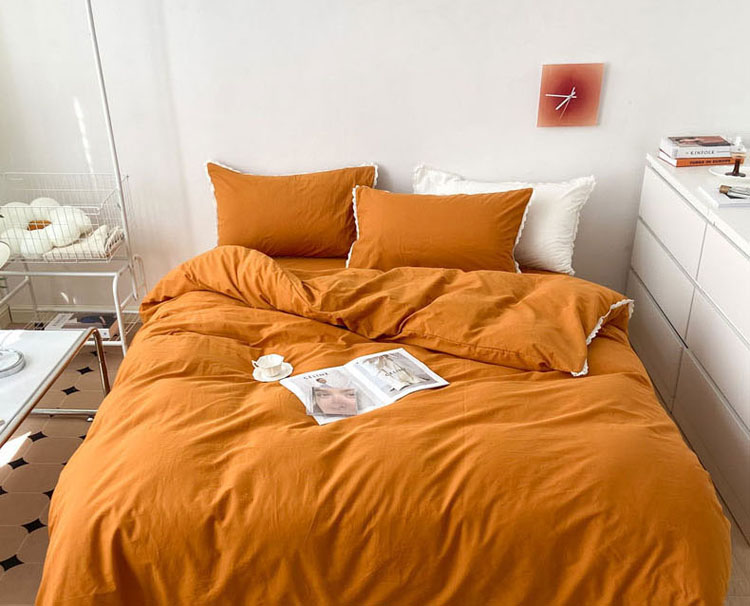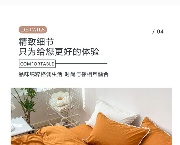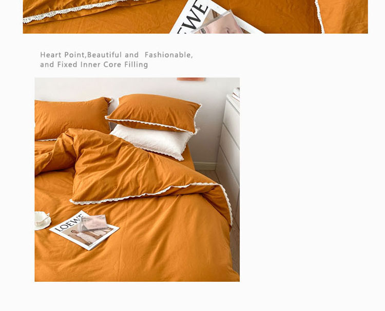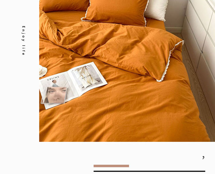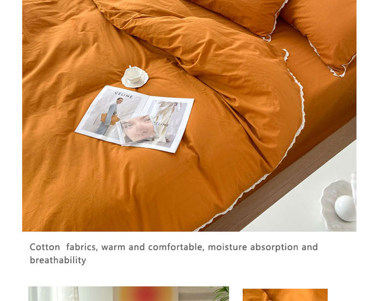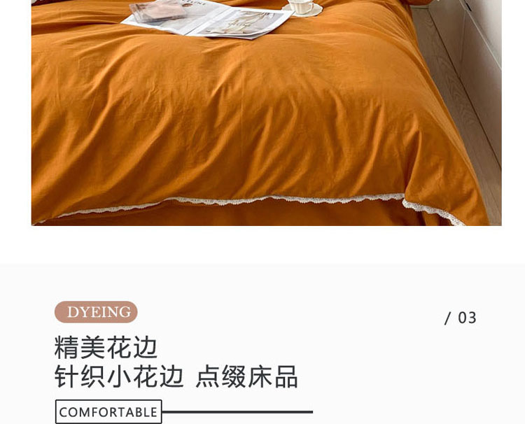 当前位置: 91家纺网 > 商品网购 > 床品套件 > 四件套 > 全棉普通四件套 > 梦家居 2022韩国花边款色织全棉水洗棉四件套 南瓜色