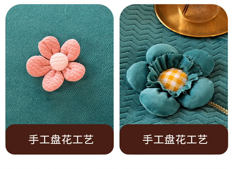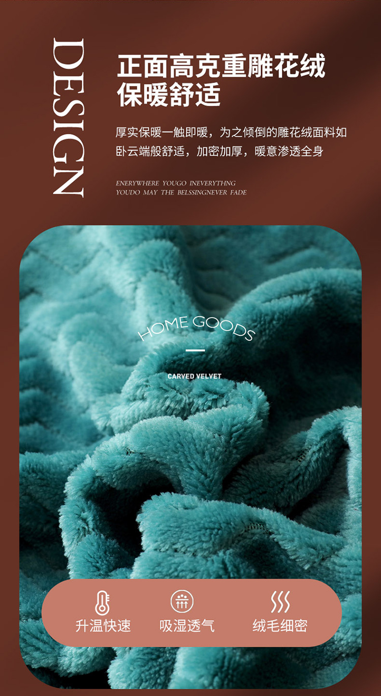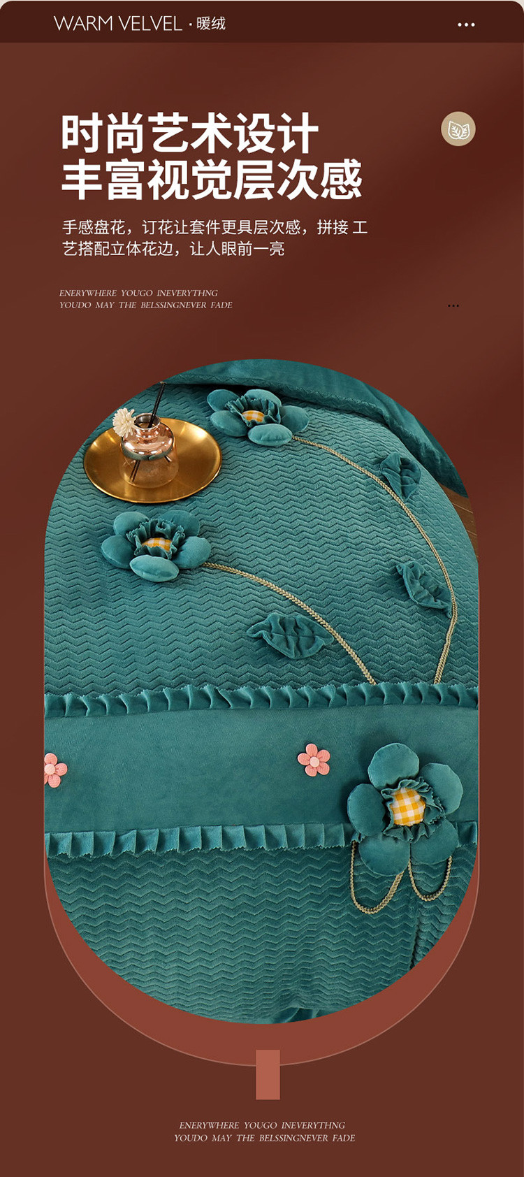 兴美佳 2022新款雕花绒手工盘花四件套 伊甸园-孔雀绿