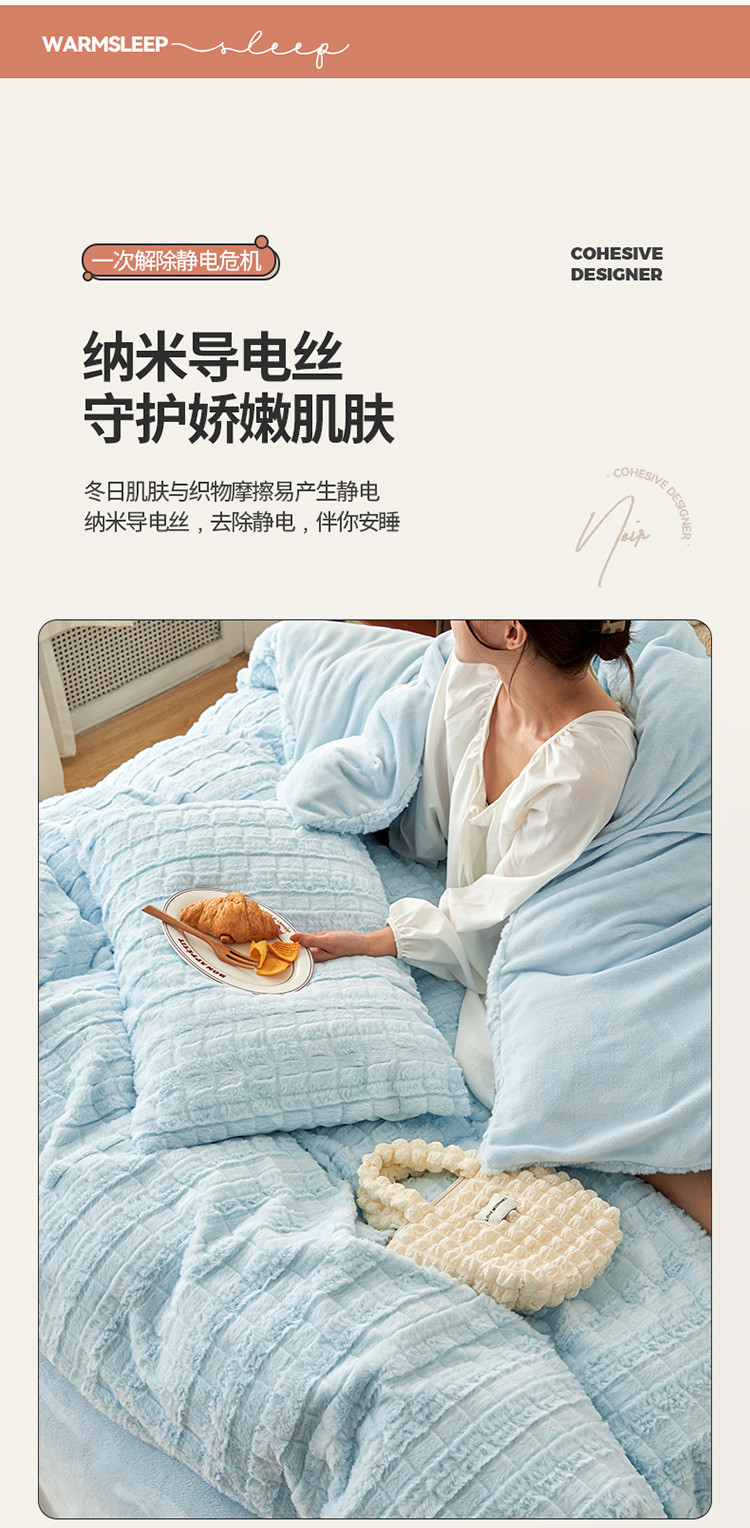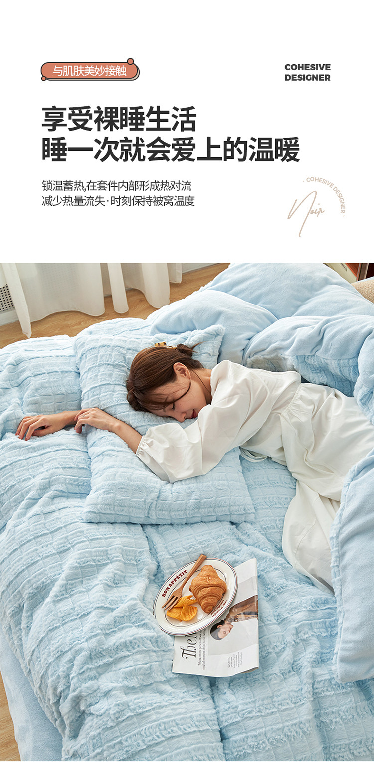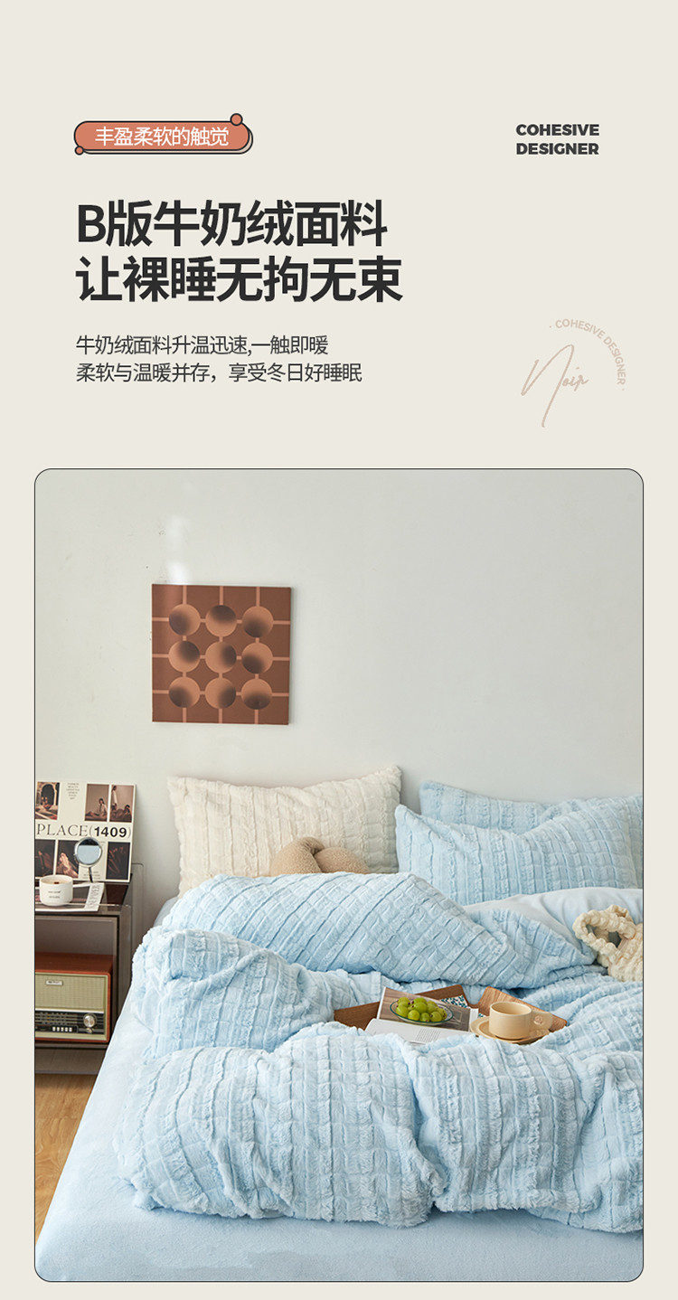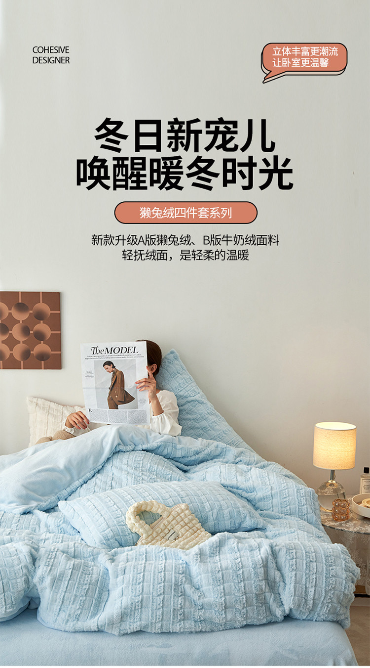 商品名称:榻尚家居 2023新款加厚獭兔绒牛奶绒四件套 天蓝