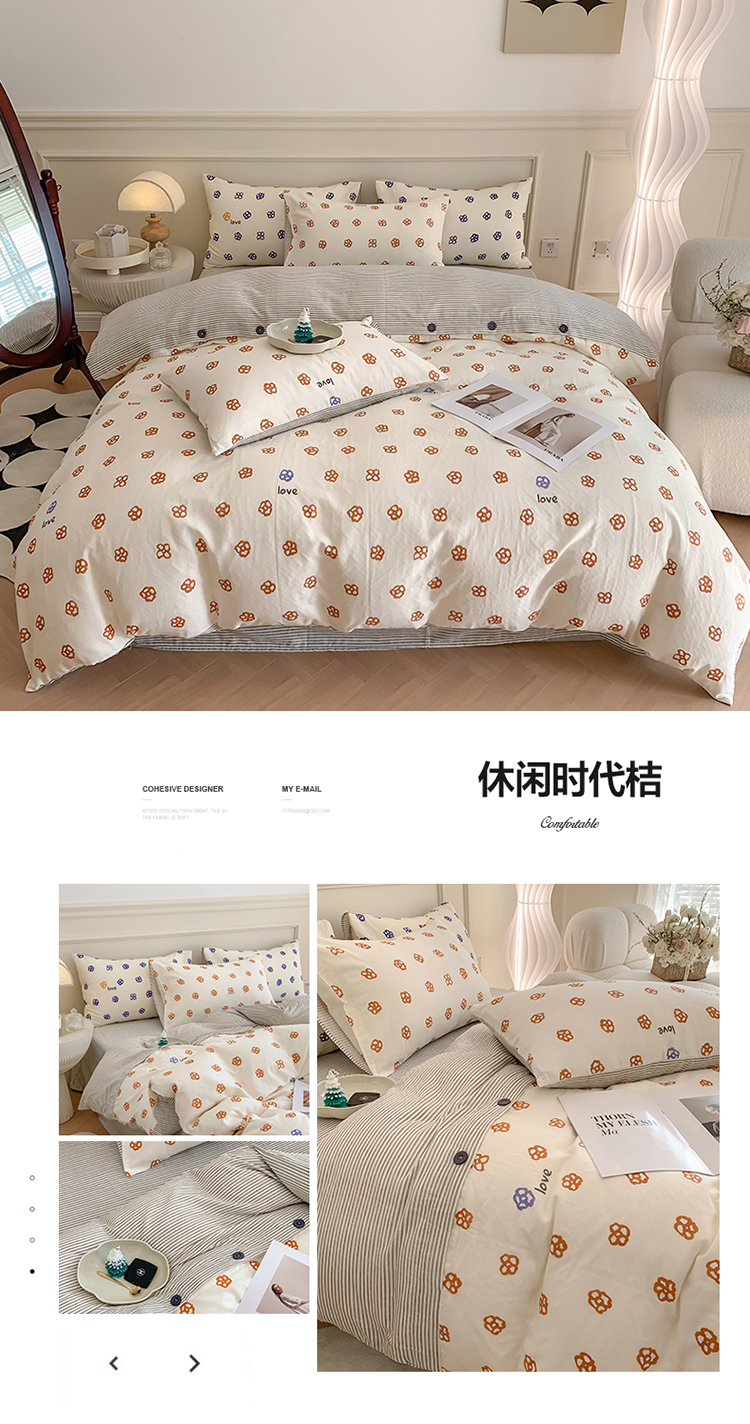 澳萝拉2023新款40支双层纱纽扣款四件套 休闲时代桔