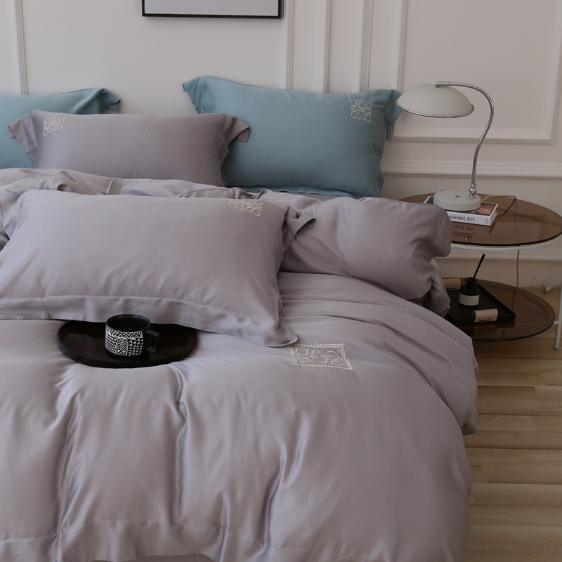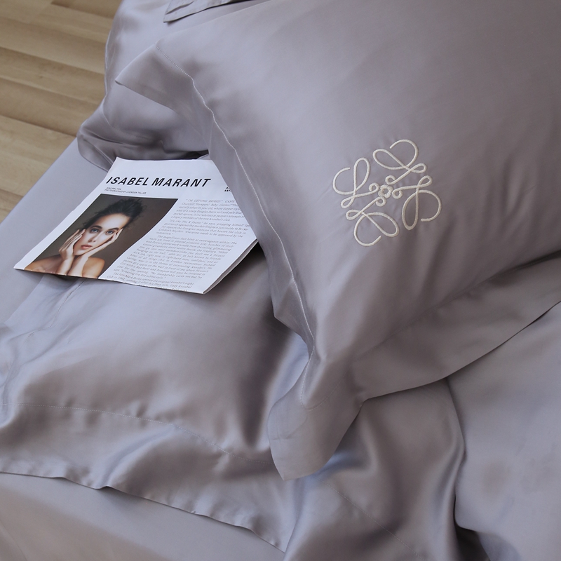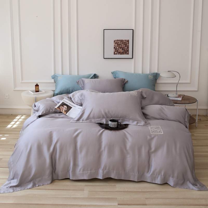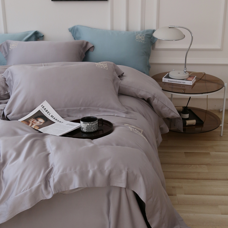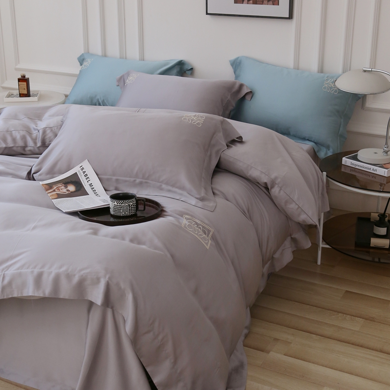 榻尚家居 2023新款80纯色天丝简约绣花四件套-清欢 轻灰