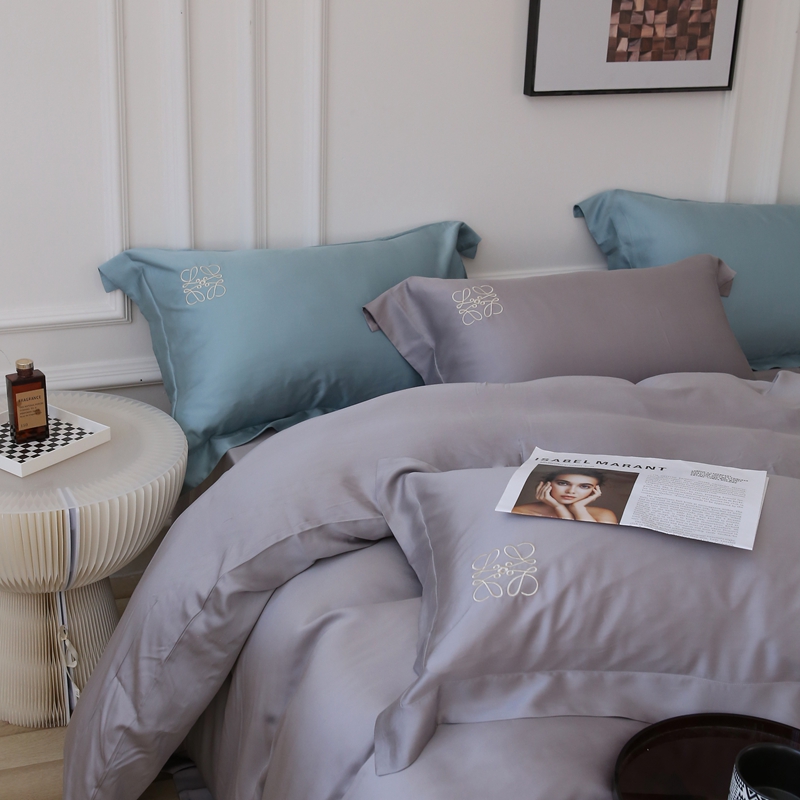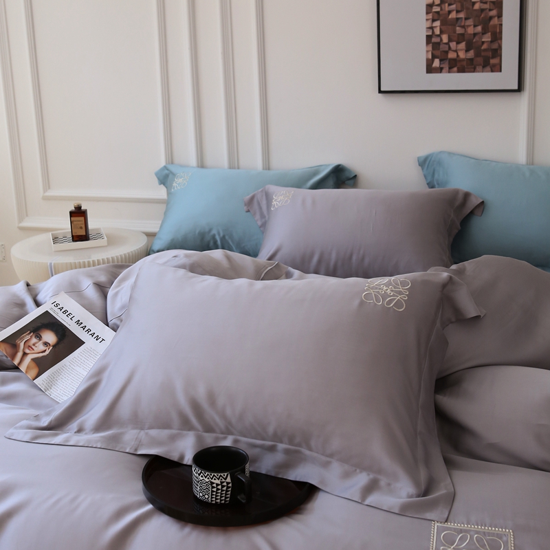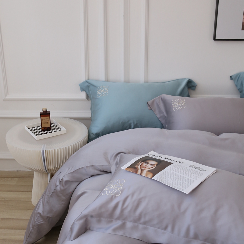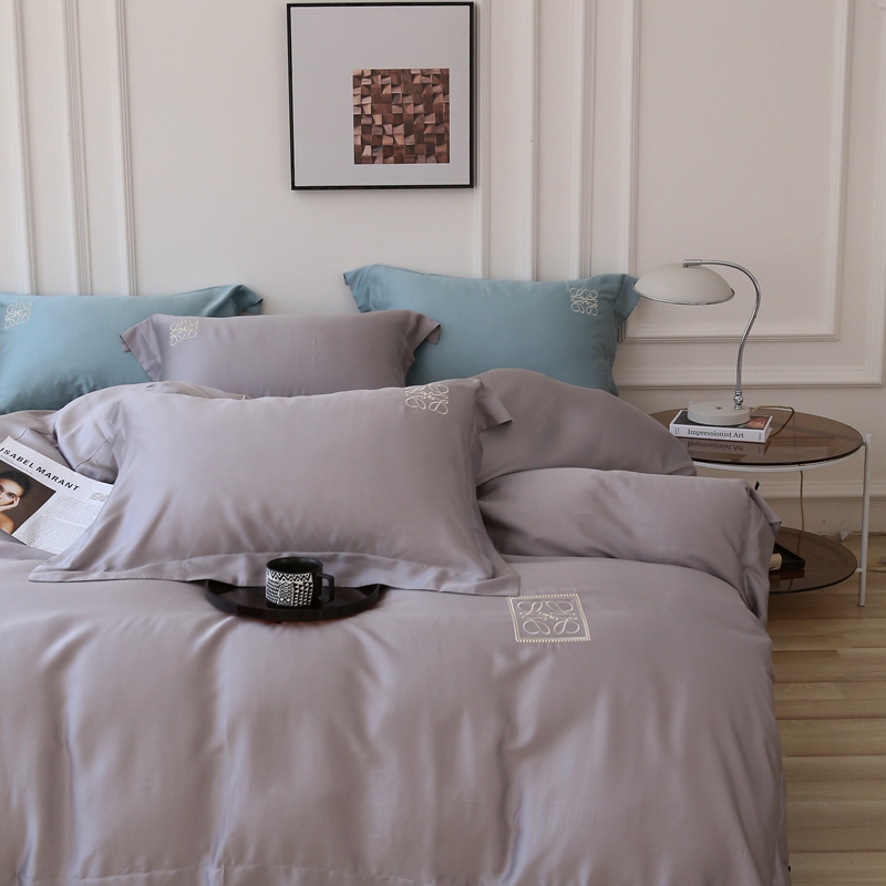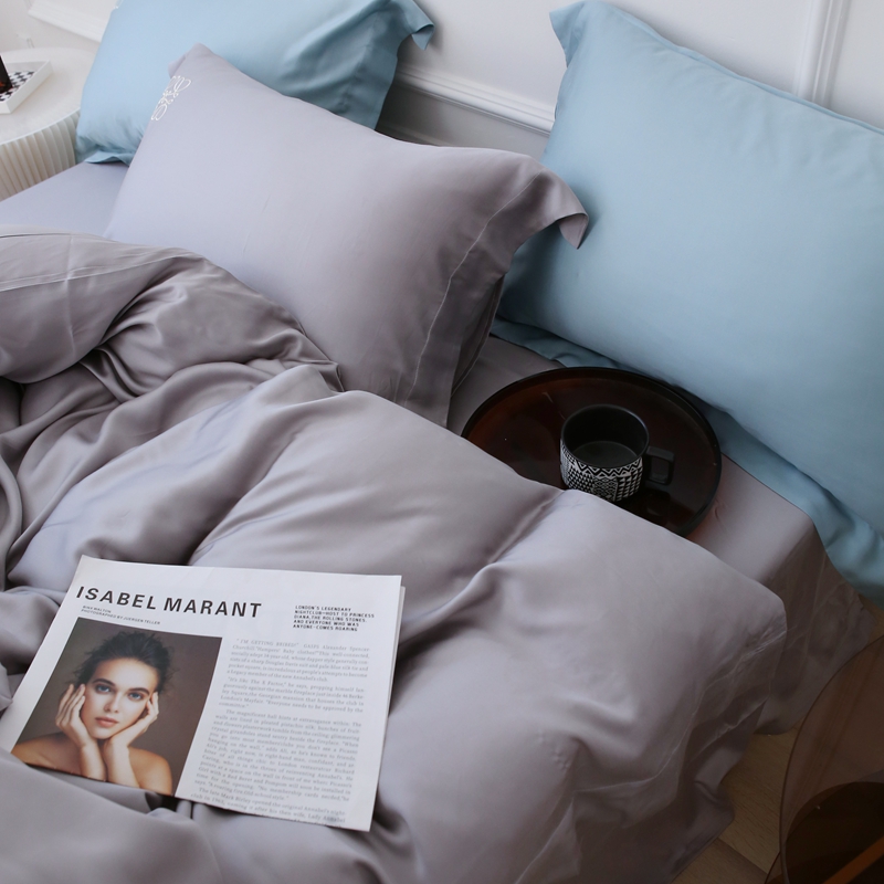 榻尚家居 2023新款80纯色天丝简约绣花四件套-清欢 轻灰