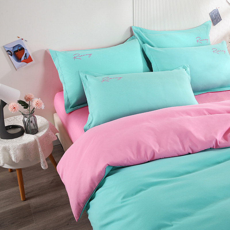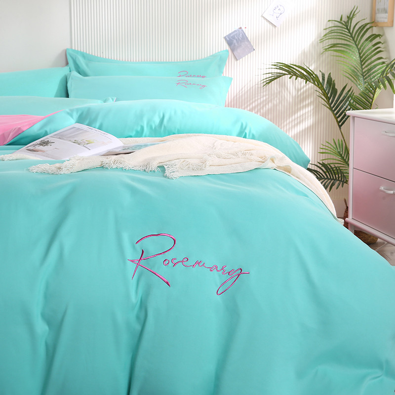 7V 现货3000套110g加厚磨毛刺绣网红直播四件套 库存数量每个颜色500套 墨绿玉