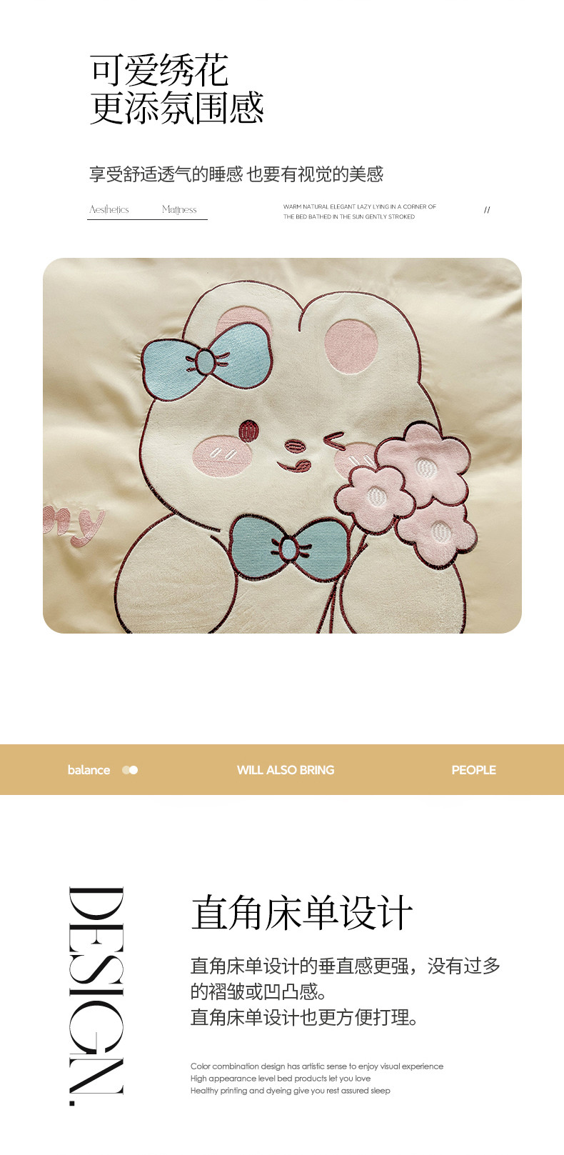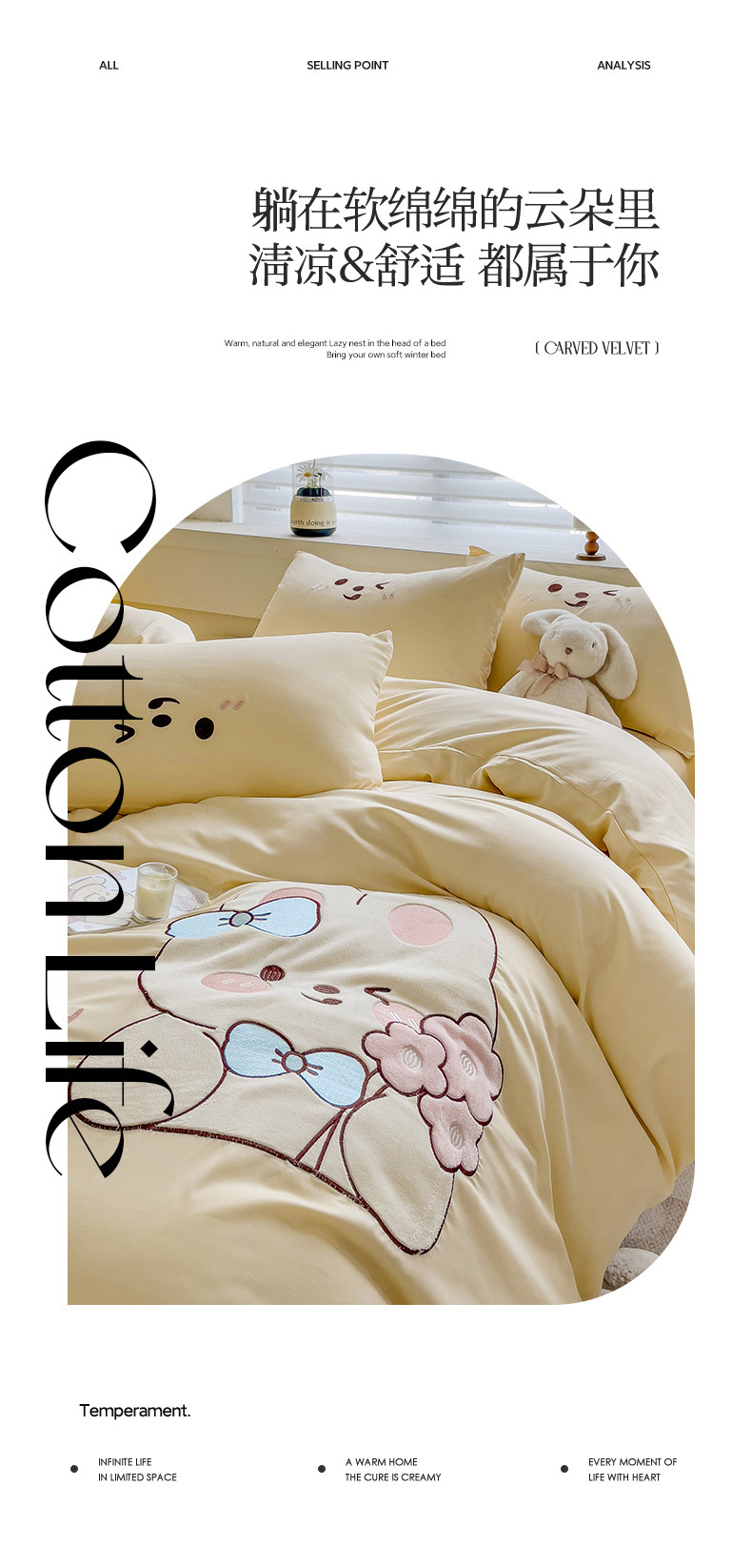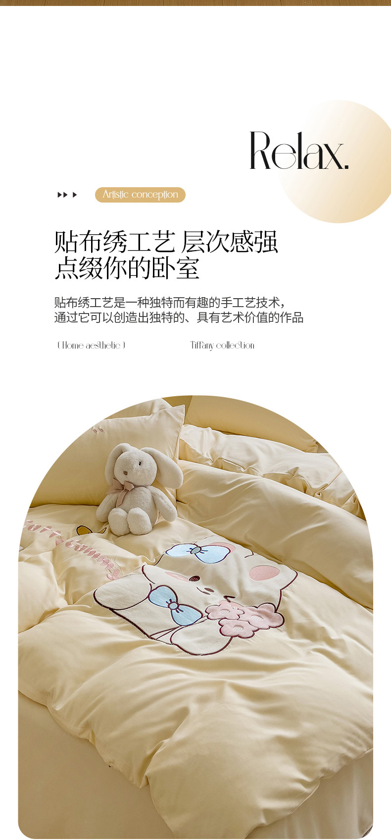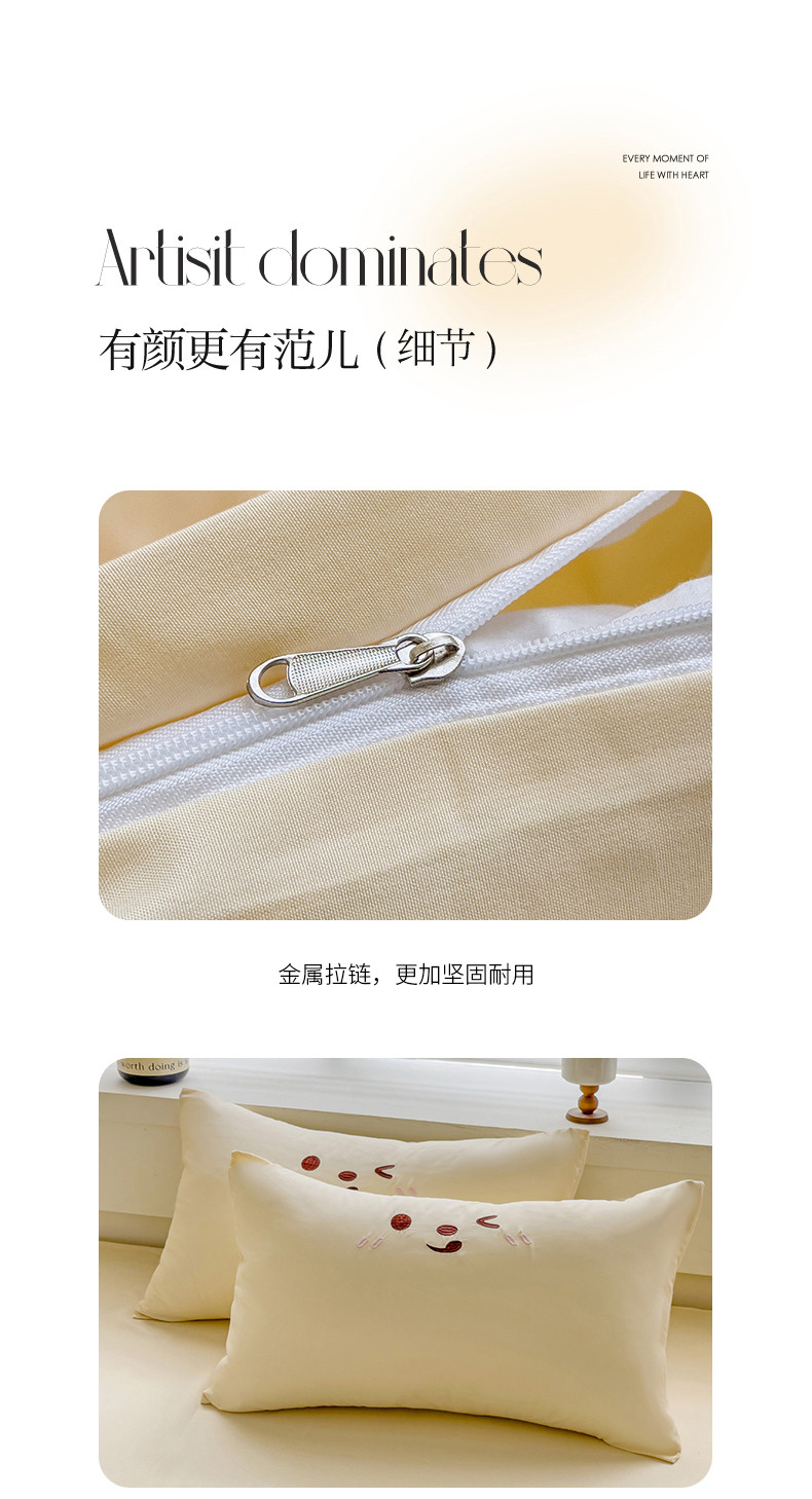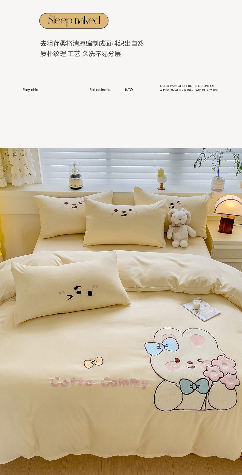 N先生2024秋冬亲肤水洗棉贴布绣四件套-捧花小兔系列 捧花小兔-奶黄
