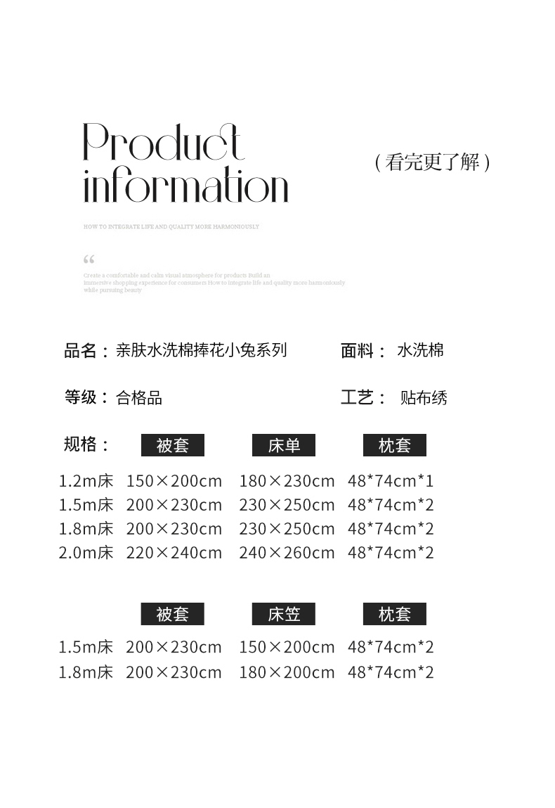 商品名称:N先生2024秋冬亲肤水洗棉贴布绣四件套-捧花小兔系列 捧花小兔-奶黄