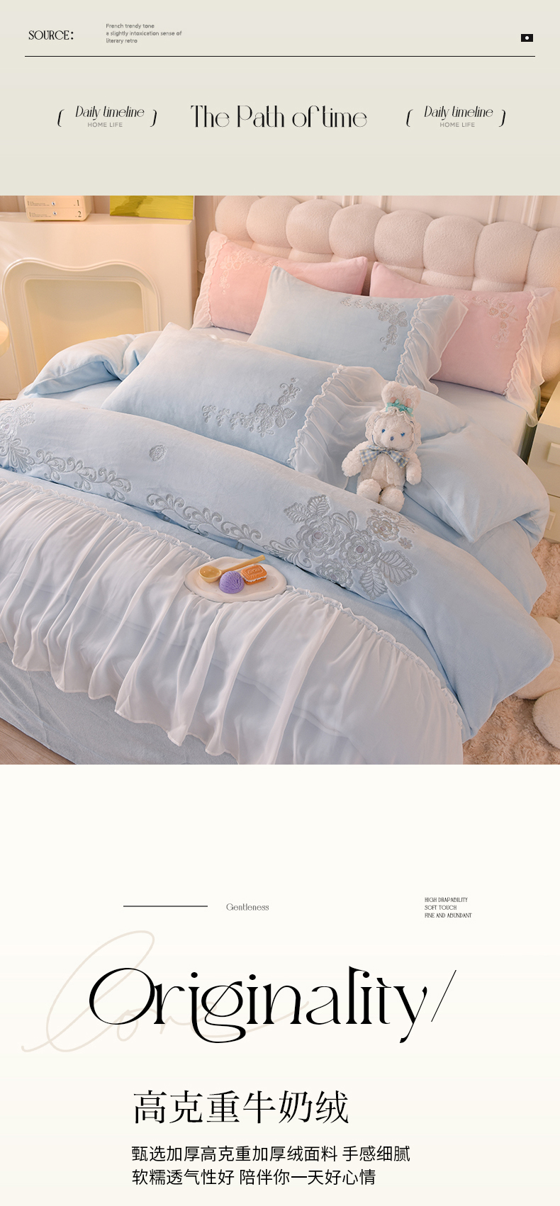 (总)迪欧芙 2025法式冬季230克全消光雕花牛奶绒四件套-岸芷汀兰,粉玉,米色,奶咖