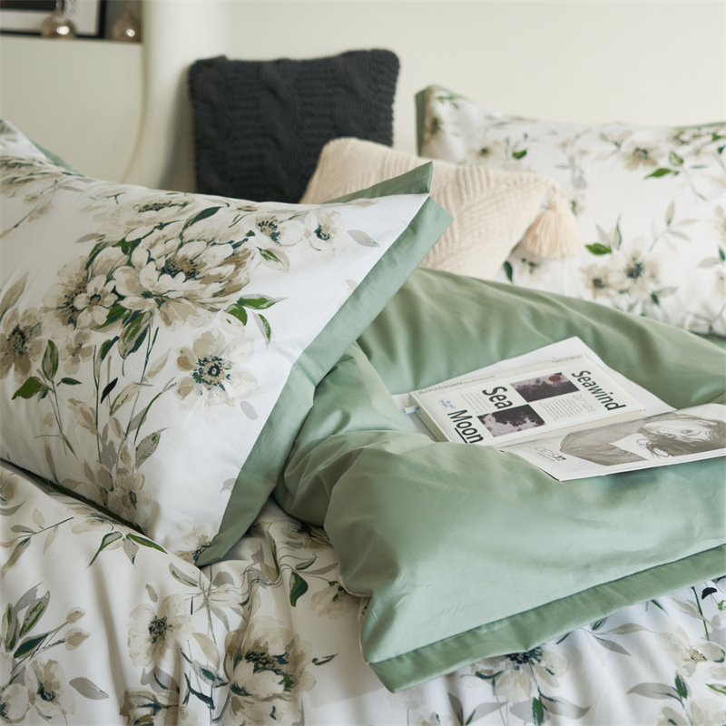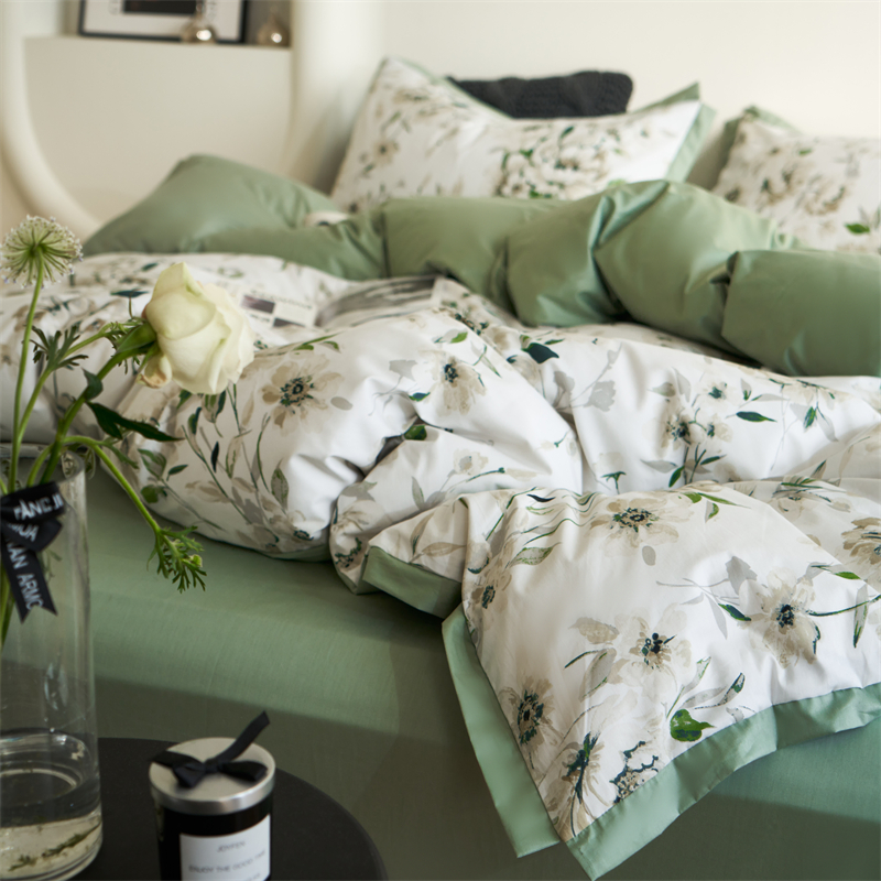 商品名称:橙艺家居 2024新款全棉臻品柔棉立体小宽边四件套 云苓-绿