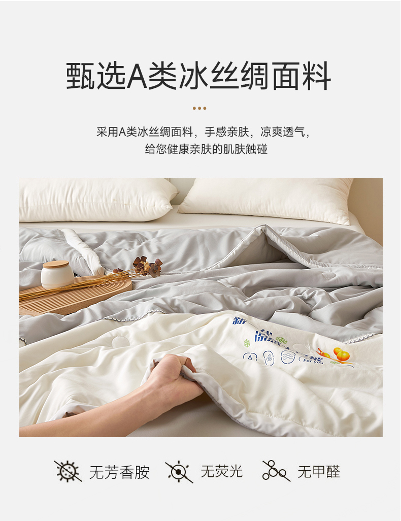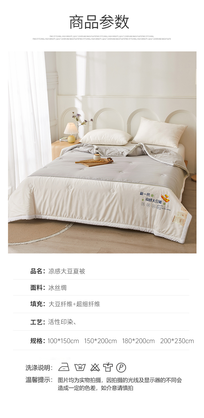 商品名称:钰博2024新款冰丝绸凉感夏被空调被夏凉被大豆被 灰+白