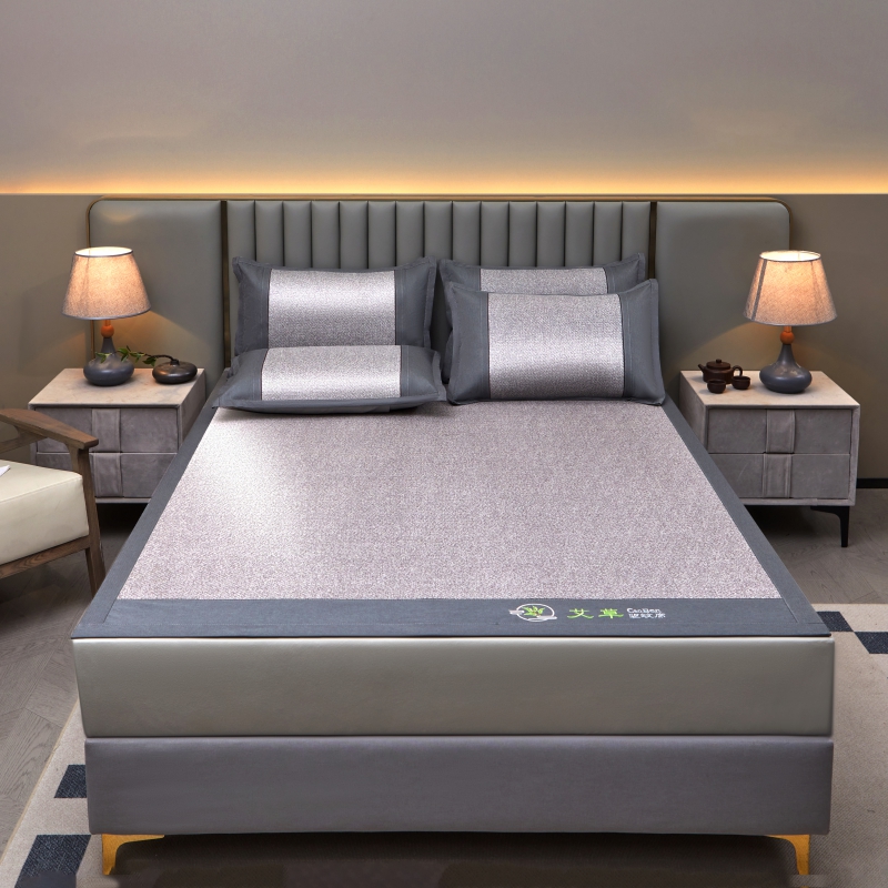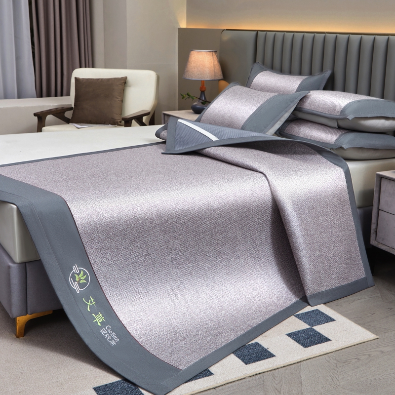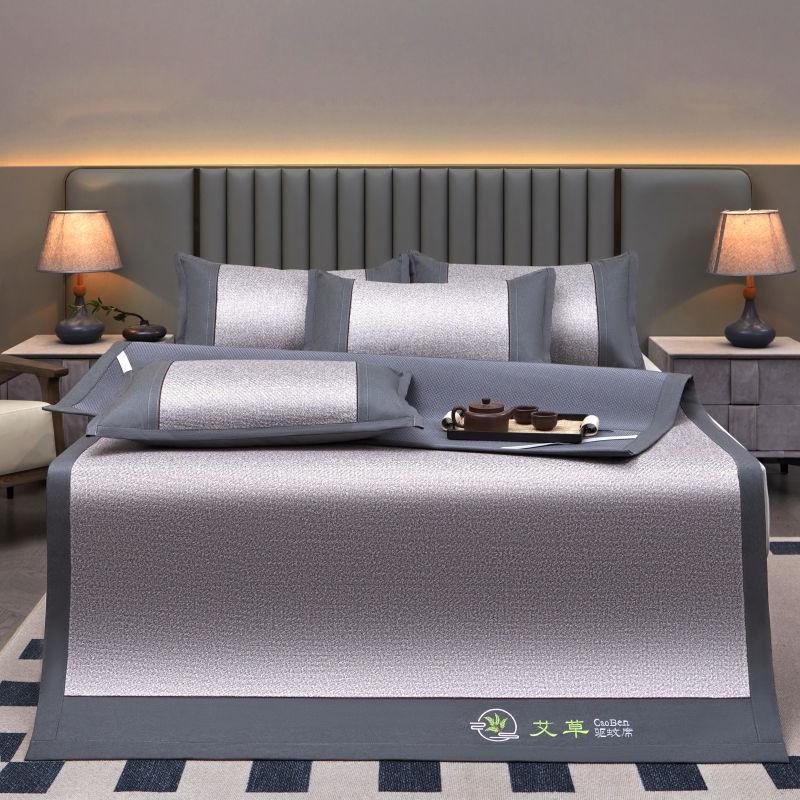 青雅席业 2025新款艾草pe材质印尼藤复合三明治凉席三件套 灰