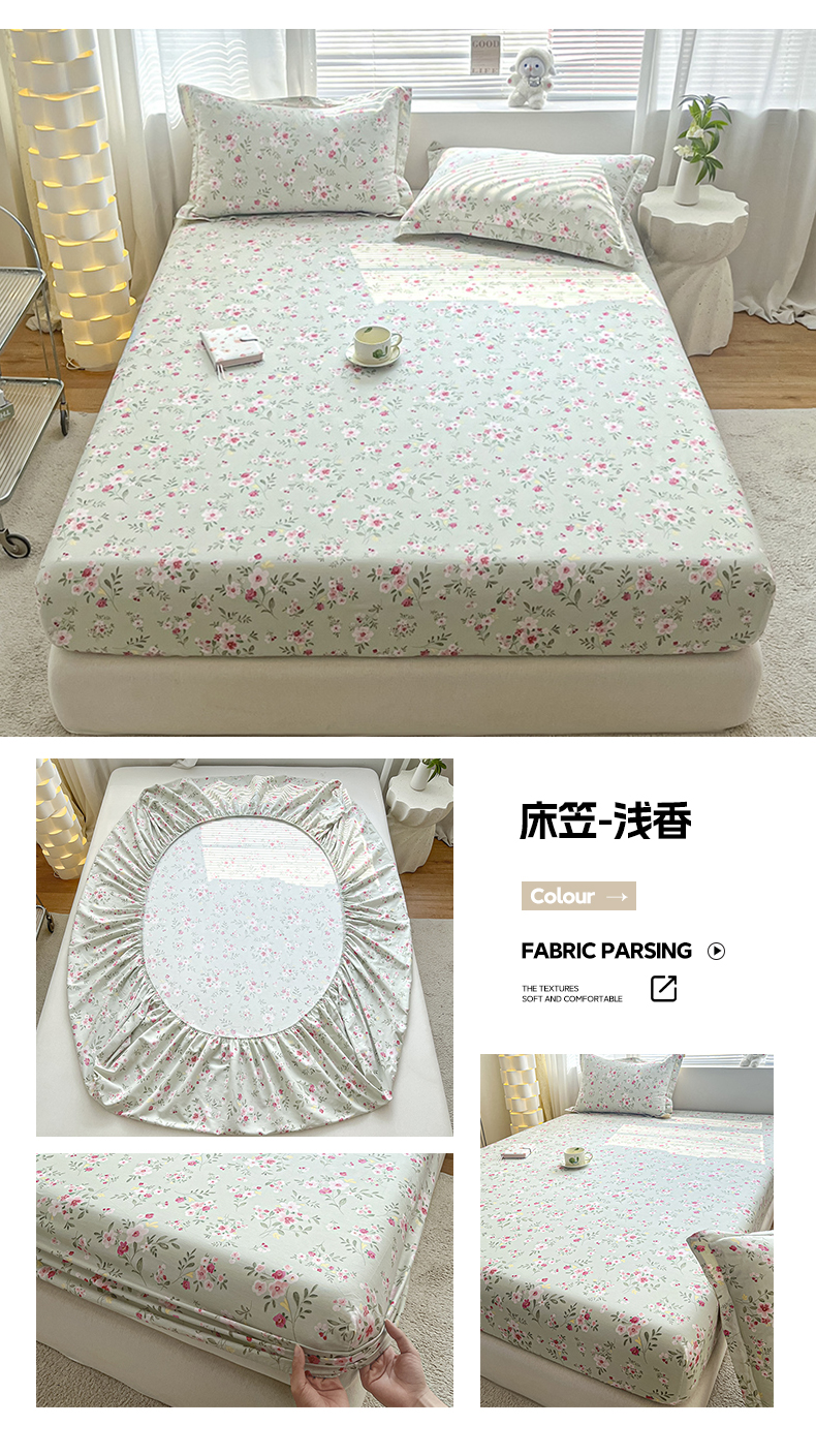 涵宸家纺 2024新款全棉小清新印花单品套件--单床笠 床笠-浅香
