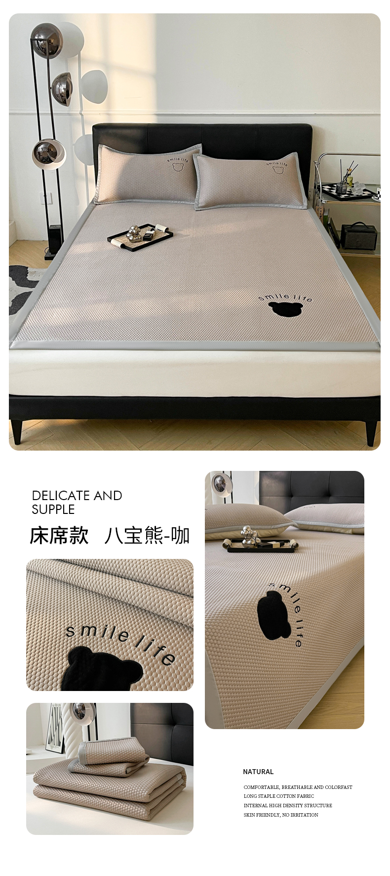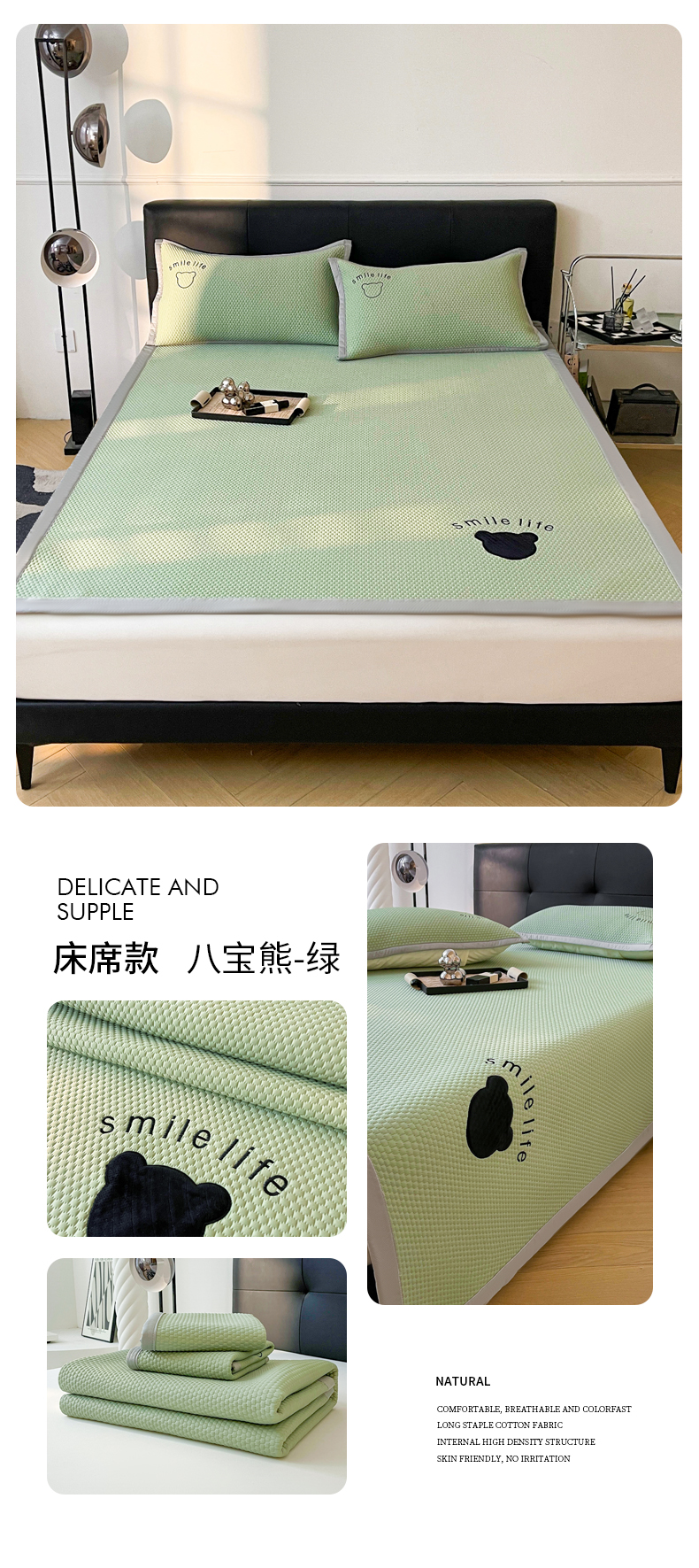 (总)爱思凯家纺 2025新款凉感冰豆豆软席绑带款-八宝熊