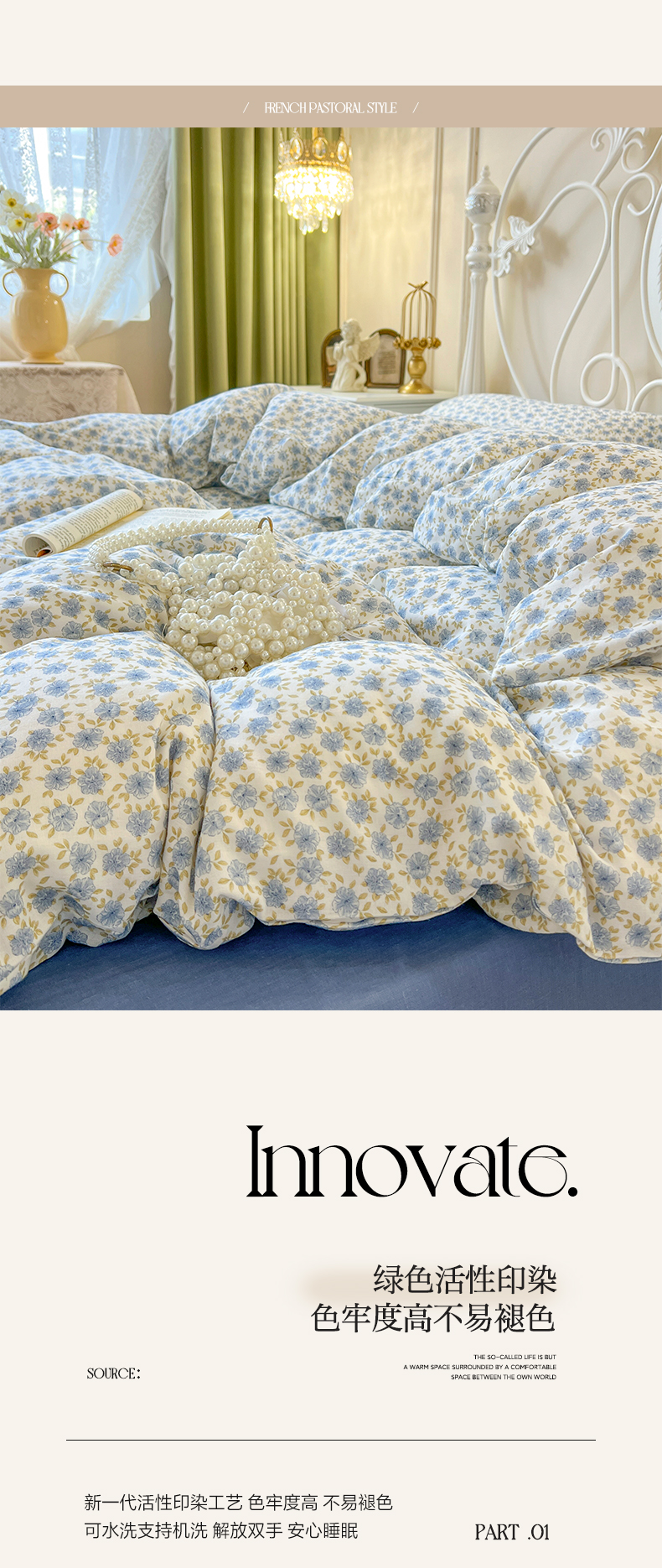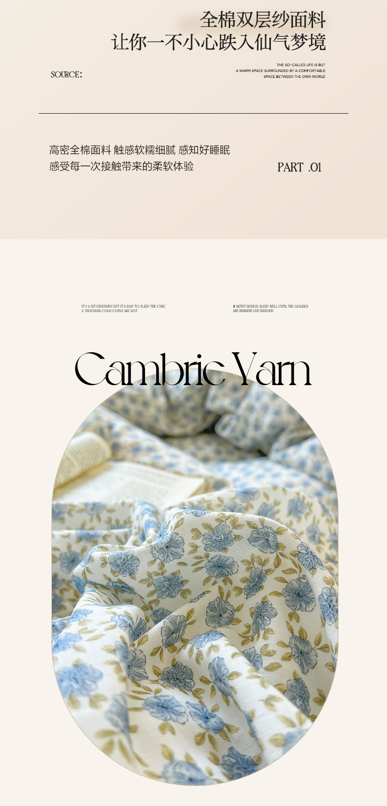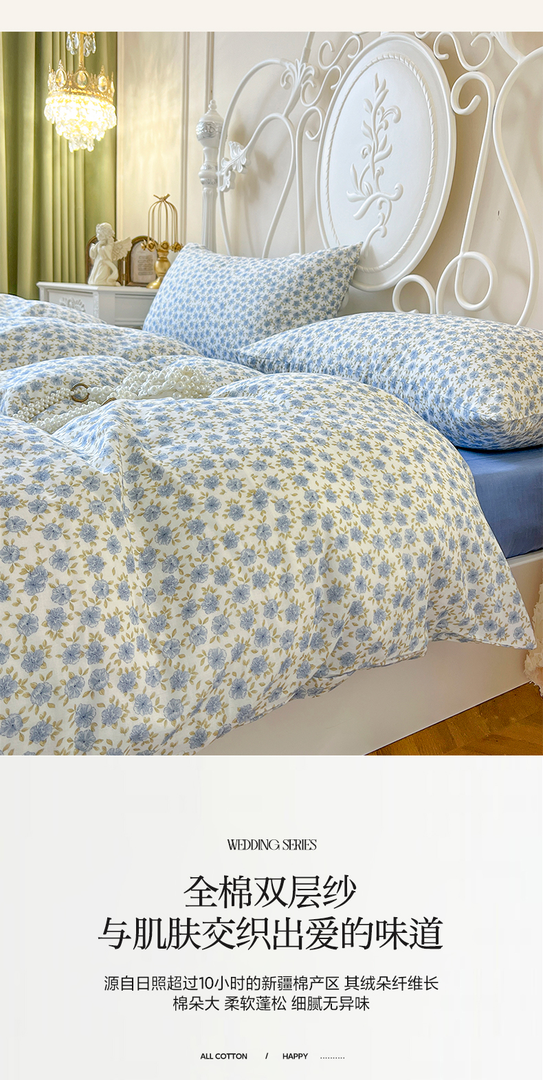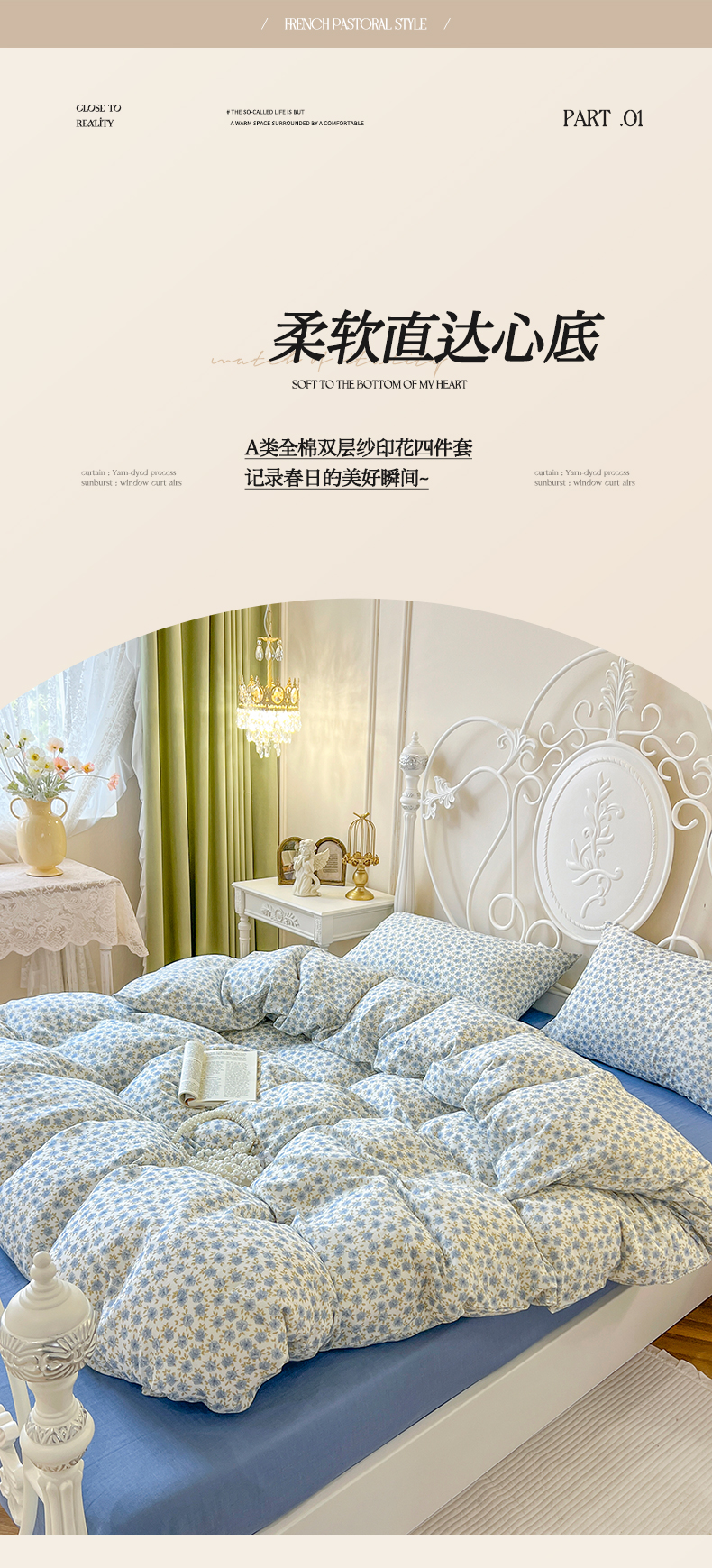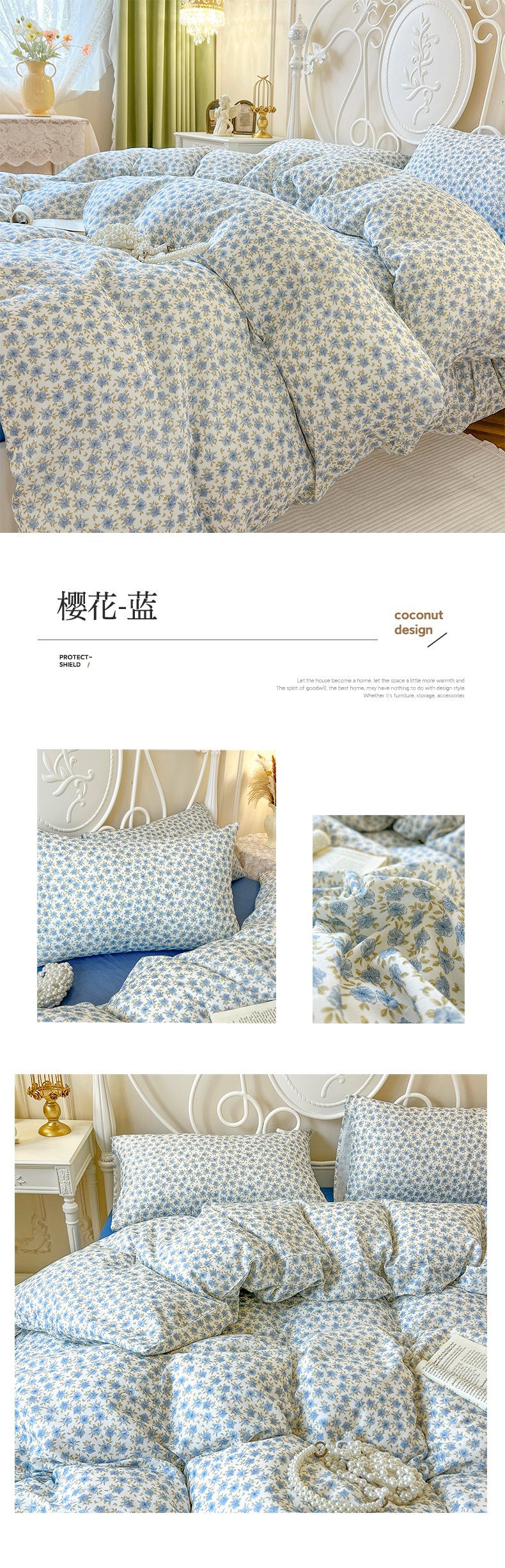 当前位置: 91家纺网 > 商品网购 > 床品套件 > 四件套 > 双层纱四件套 > 麒豆豆 2024款全棉双层纱四件套樱花-蓝