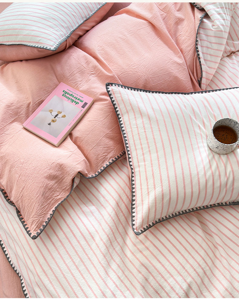 (总)晚依家纺 2024新款全棉色织水洗棉贝壳边绣三角针工艺四件套--单被套