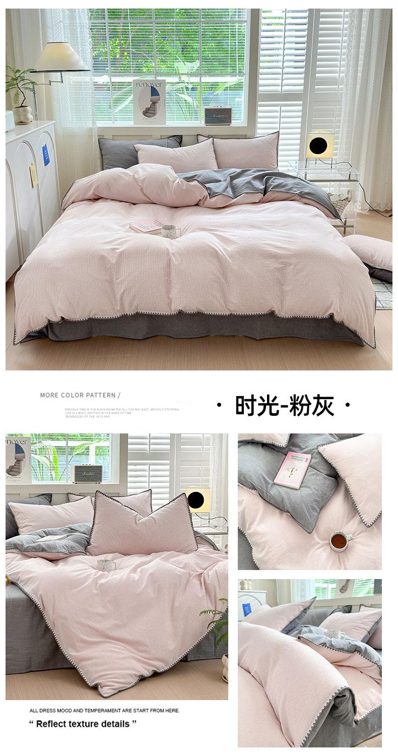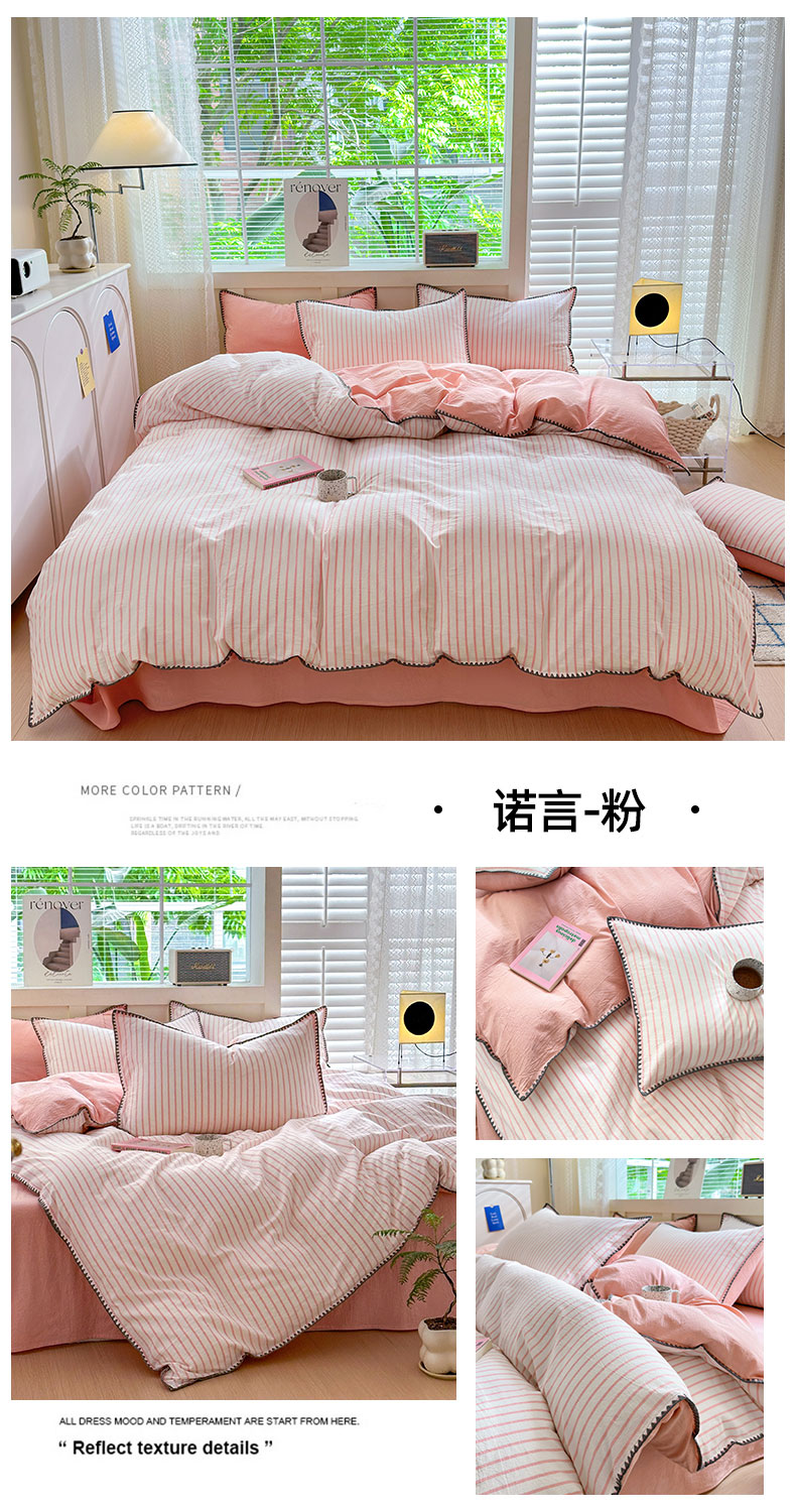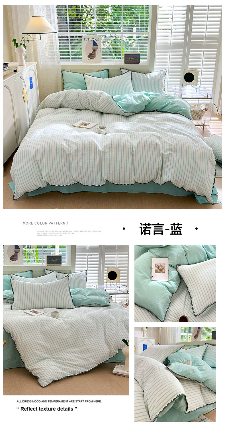 (总)晚依家纺 2024新款全棉色织水洗棉贝壳边绣三角针工艺四件套可定制,诺言-粉,诺言-蓝,诺言-绿,诺言-紫,时光-粉灰,时光-灰豆沙,时光-米灰,时光-浅蓝,星语-绿豆沙,星语-浅粉灰,星语-浅灰,遇见-草绿,遇见-蜜粉,遇见-浅蓝,遇见-中灰