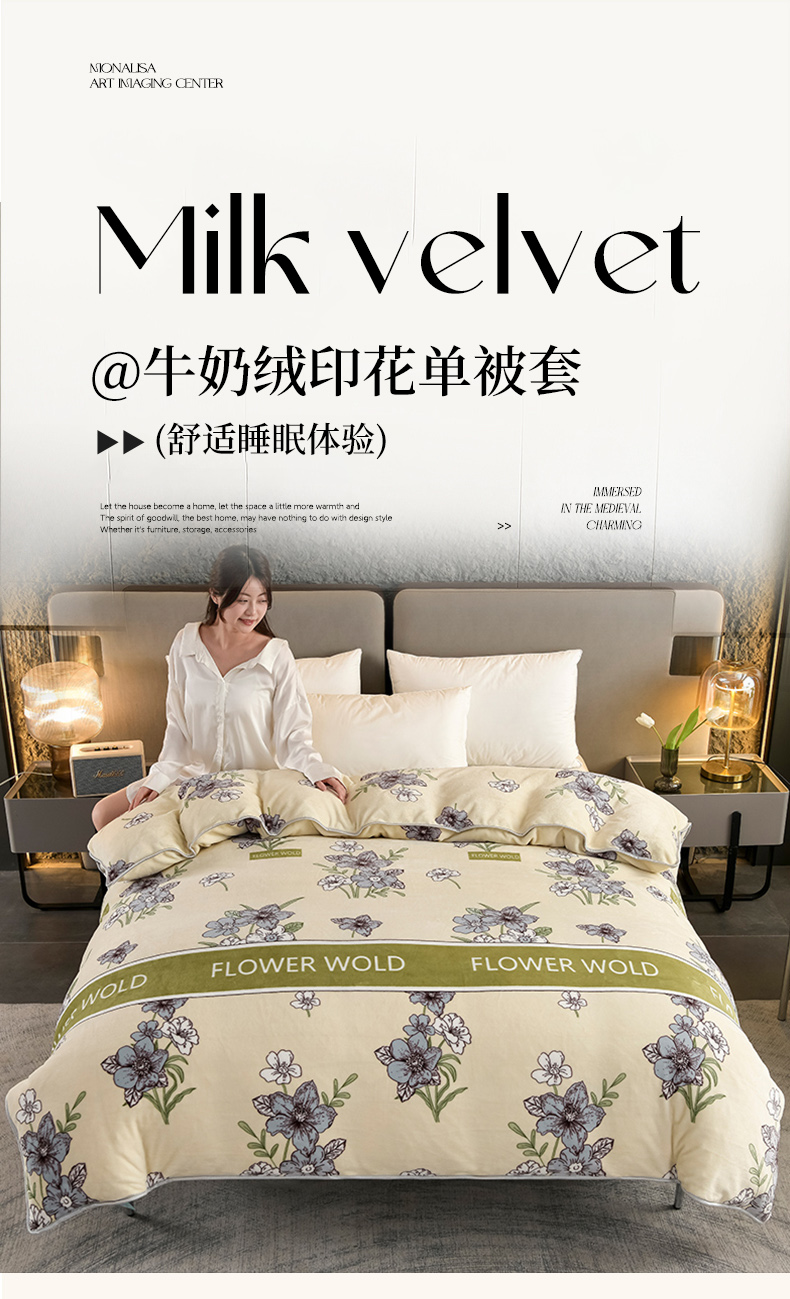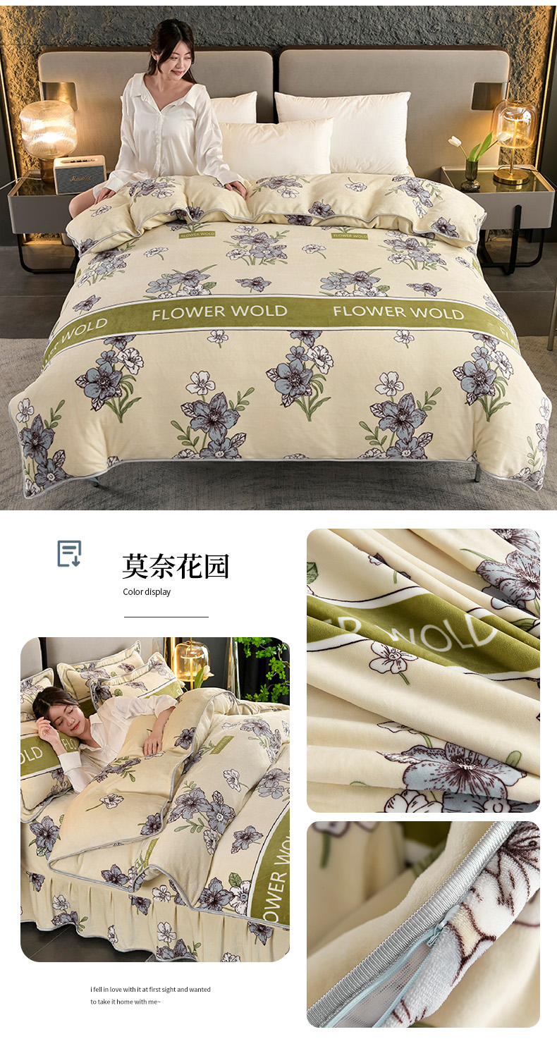 • 91家纺网 家纺一手货源 找家纺 2025直播爆款印花牛奶绒印花单被套220克法莱绒被套单件枕套莫奈花园