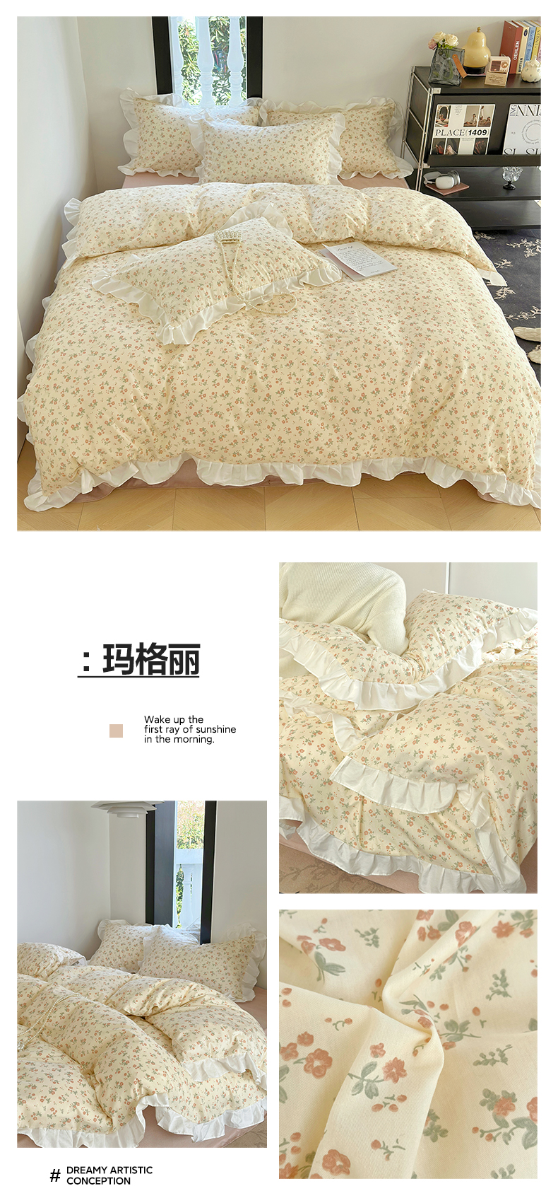 (总)澳萝拉 2022新款全棉印花花边四件套,点点心动,蓝心邂逅,萌系甜心,心动初恋