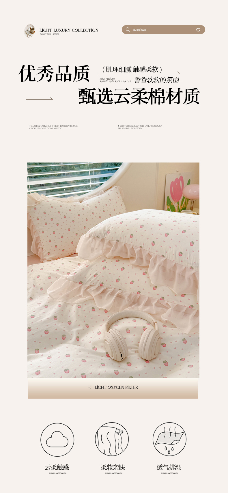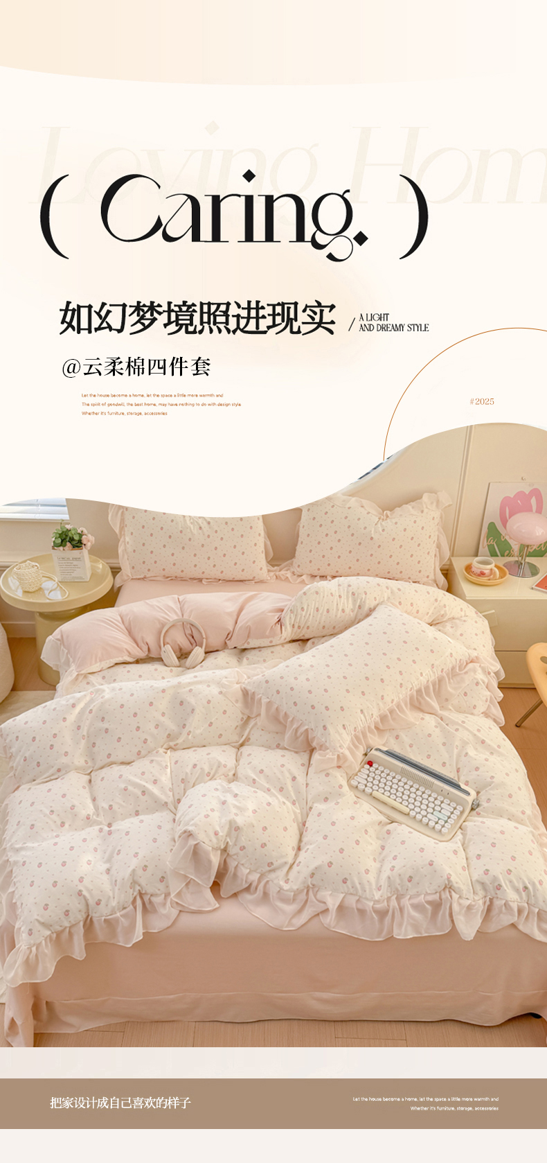(总)橘子家 2025新款云柔棉四件套,静逸花间,墨云间,水墨江南,素描蝶舞,寻花集,樱桃果果,安娜,可可小姐,蓝啵啵,绿啵啵