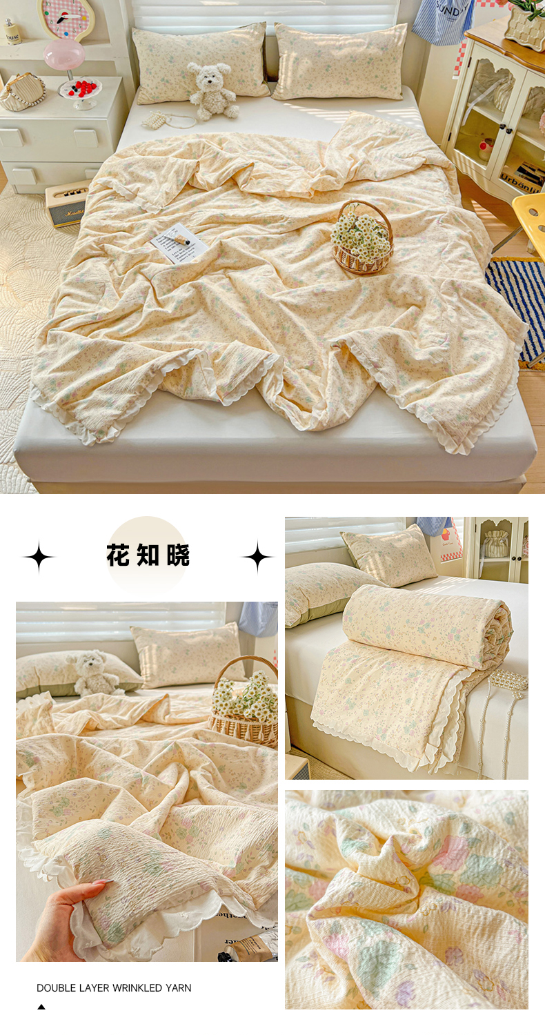 商品名称:一比一家纺 2025新款云感皱皱双层纱全棉纯棉花边单夏被夏凉被空调被系列 花知晓