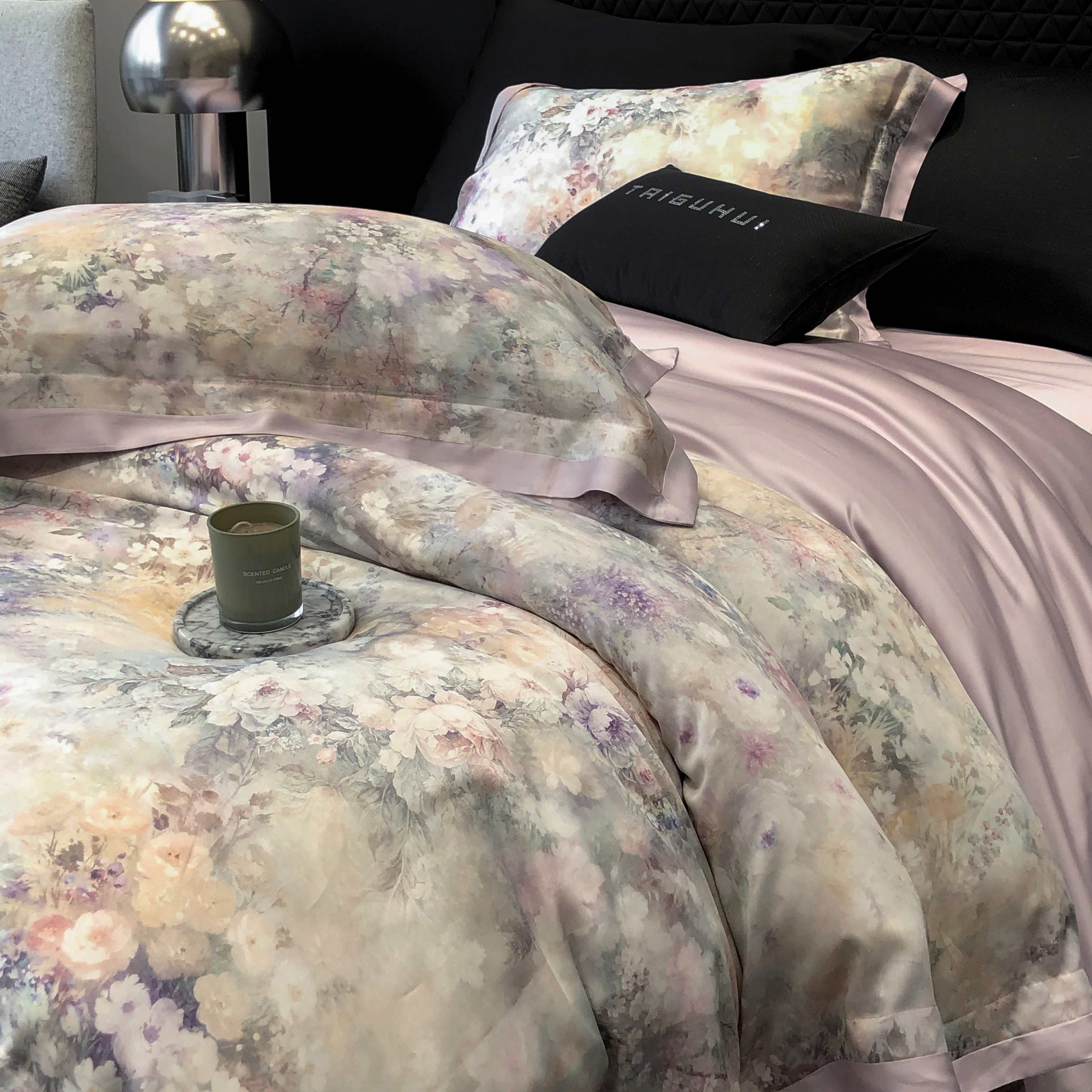 (总)太古汇家居 2025新款60兰精天丝宽边被套枕套活性数码印花系列四件套【券后不低于338】