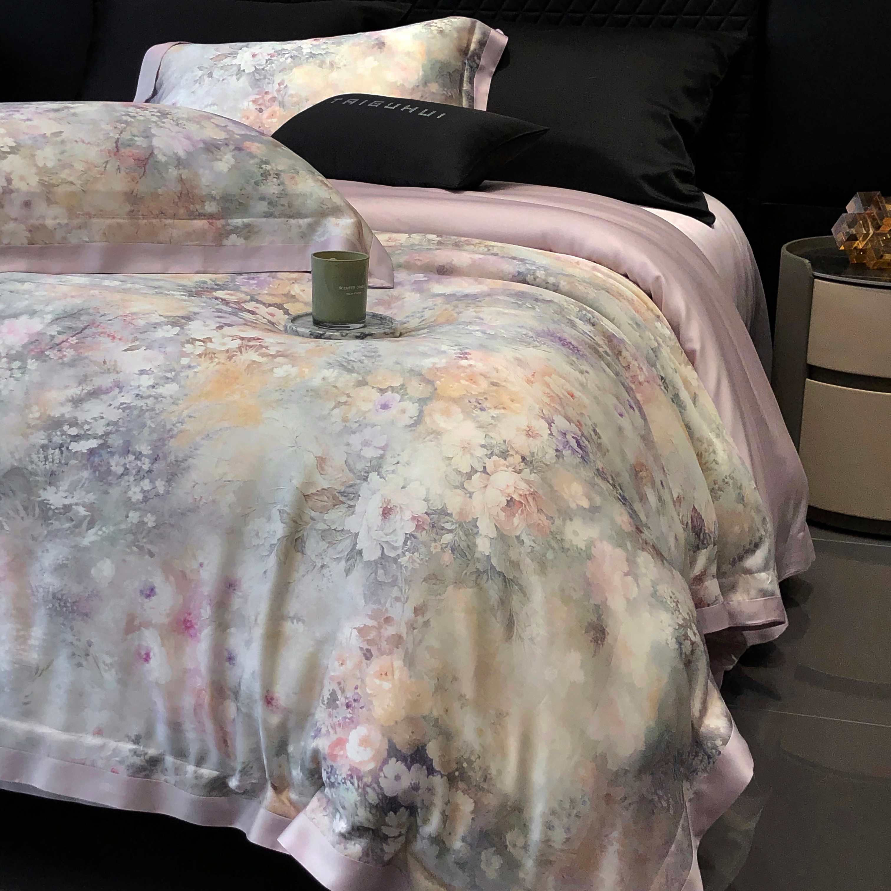 商品名称:(总)太古汇家居 2025新款60兰精天丝宽边被套枕套活性数码印花系列四件套【券后不低于338】