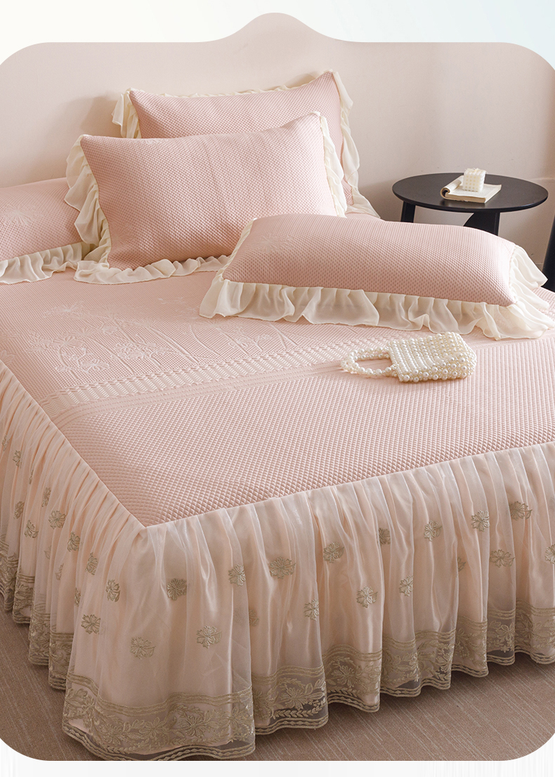 (总)好儿喜家纺 2024新款伊芙琳夏被凉席床裙四件套,浅绿,橄榄绿,奶白,浅粉,浅蓝