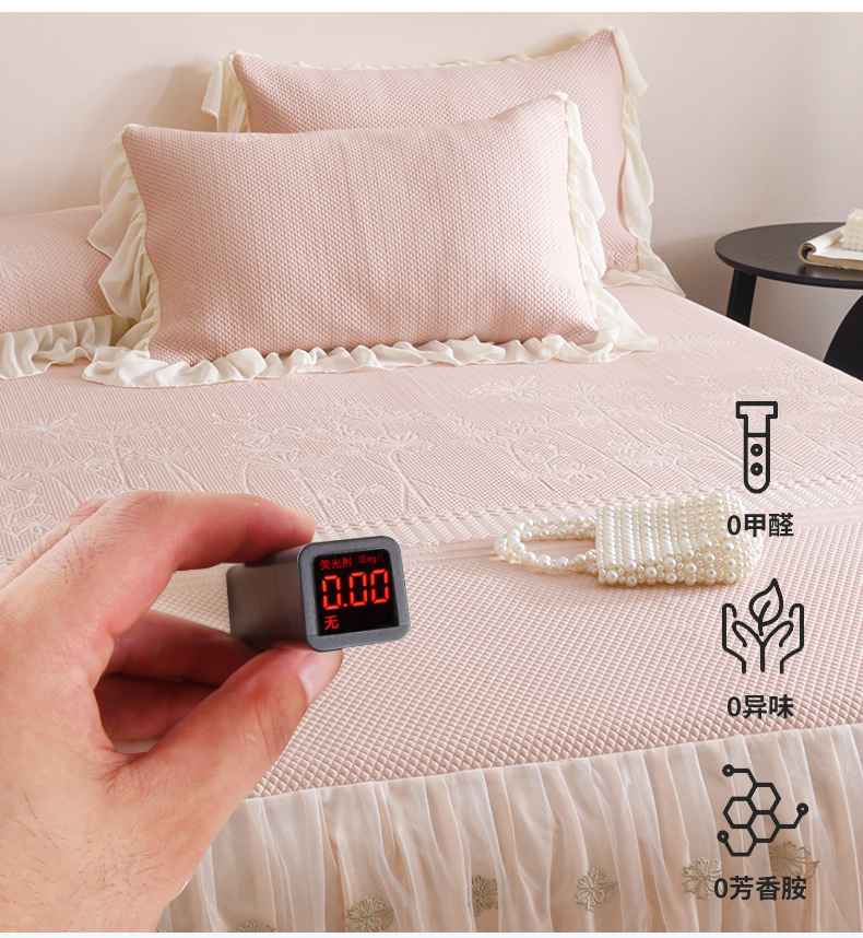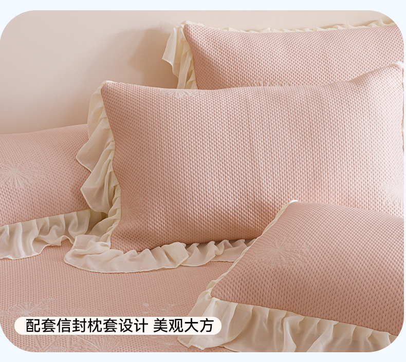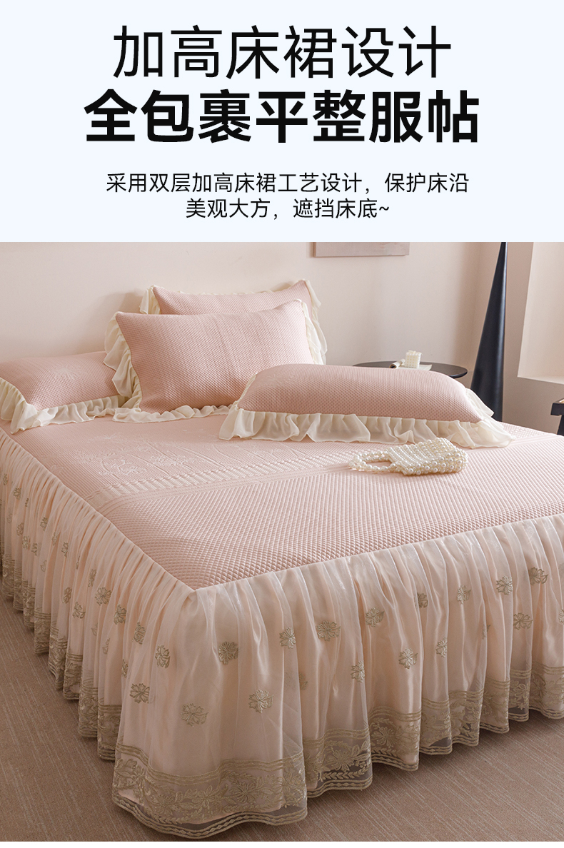 (总)好儿喜家纺 2024新款伊芙琳凉席床裙三件套,浅绿,橄榄绿,奶白,浅粉,浅蓝