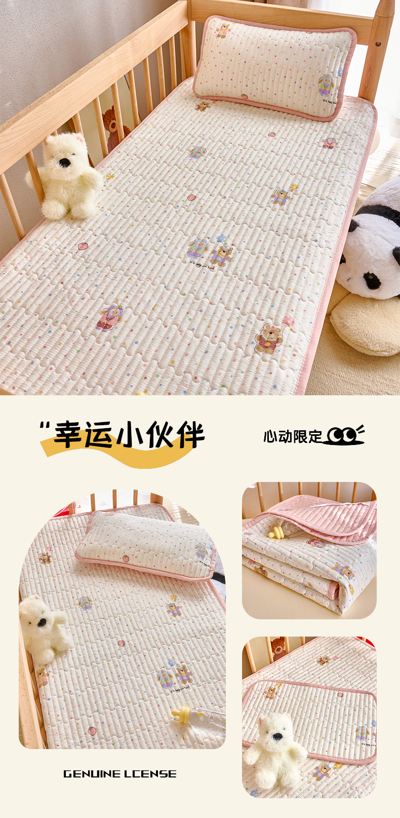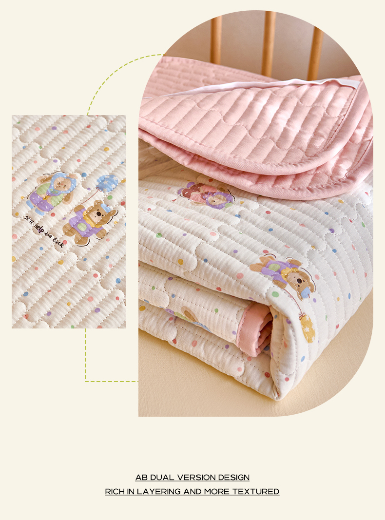 • 91家纺网 家纺一手货源 找家纺 X猫先生 2025新款全棉双层纱婴幼儿童床盖夹棉床单睡垫薄床垫子母婴级 幸运小伙伴