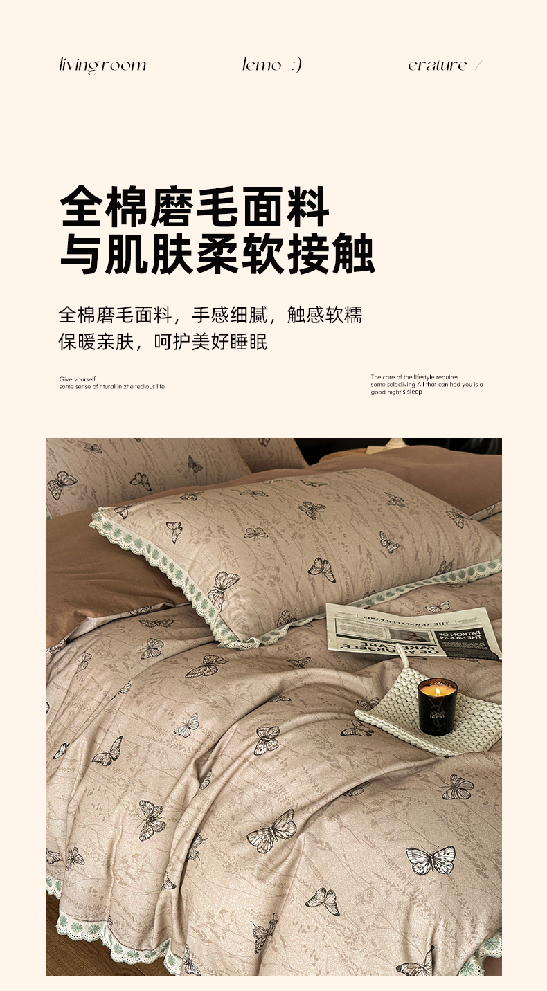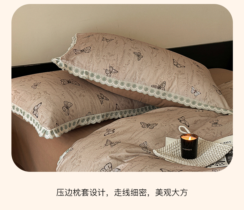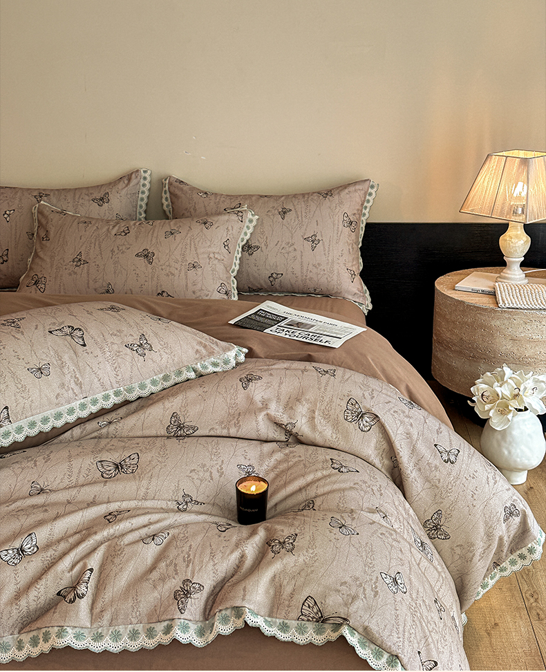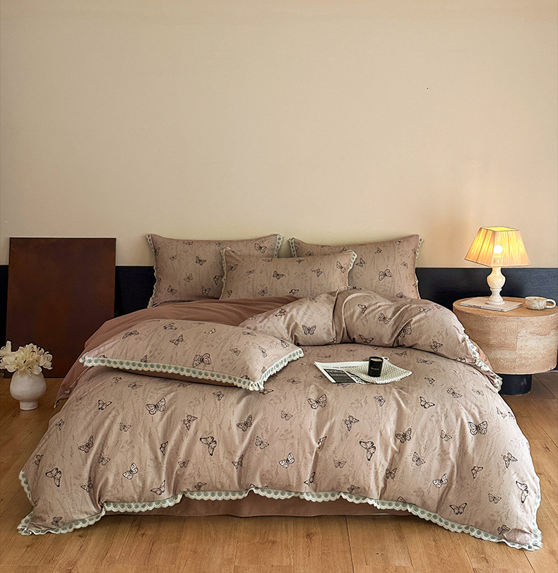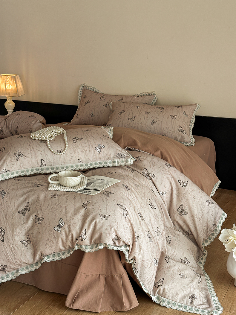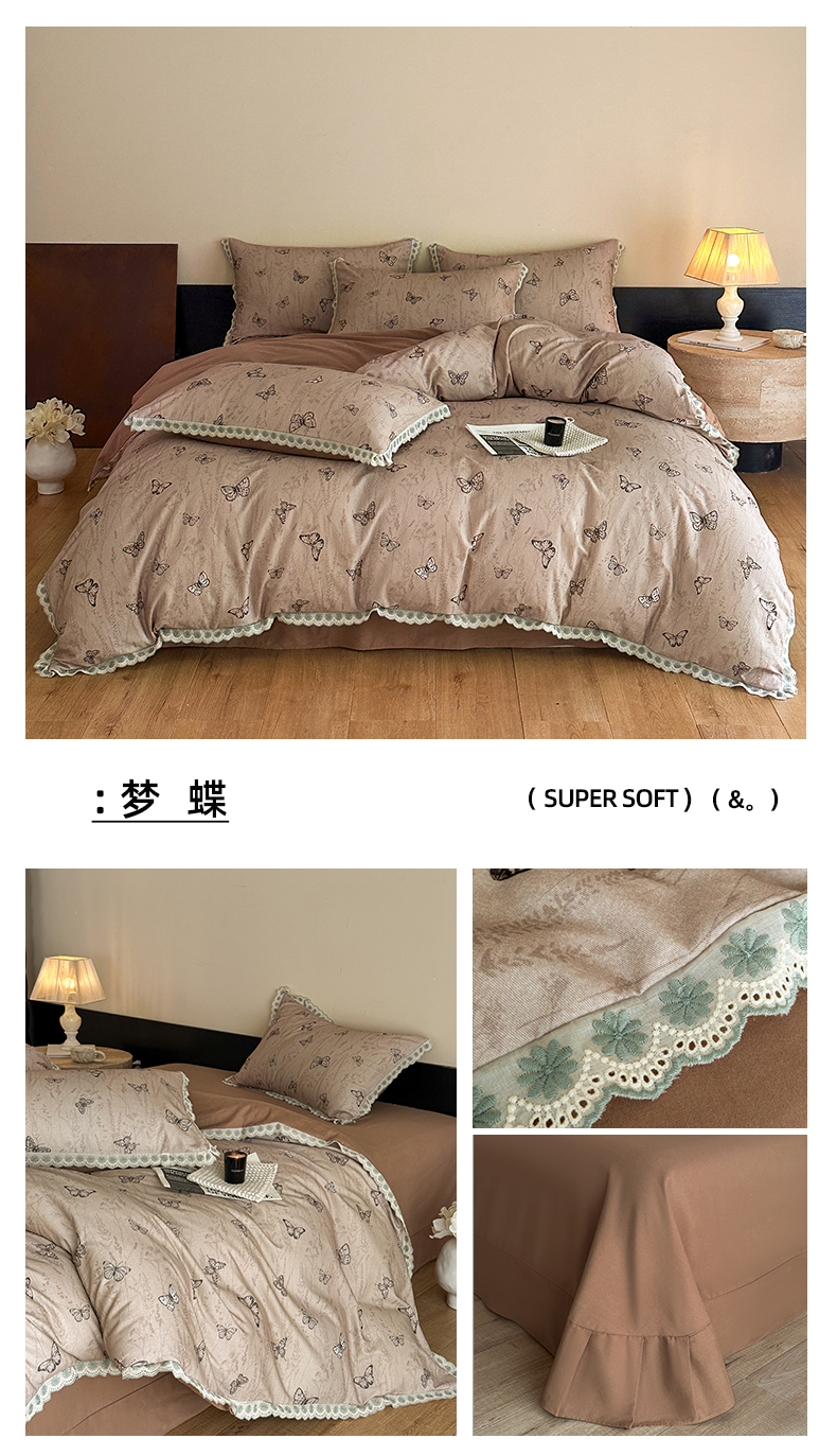 当前位置: 91家纺网 > 商品网购 > 床品套件 > 四件套 > 全棉普通四件套 > 帛美家纺 2025年新款全棉纯棉花边印花磨毛四件套 梦蝶