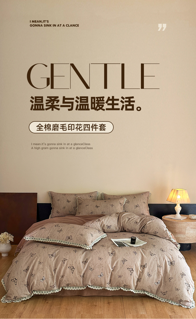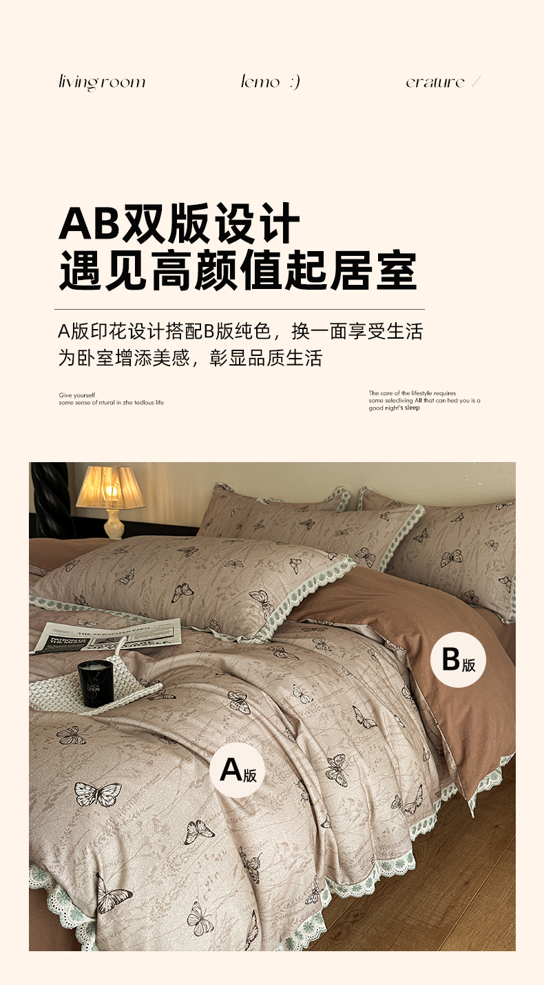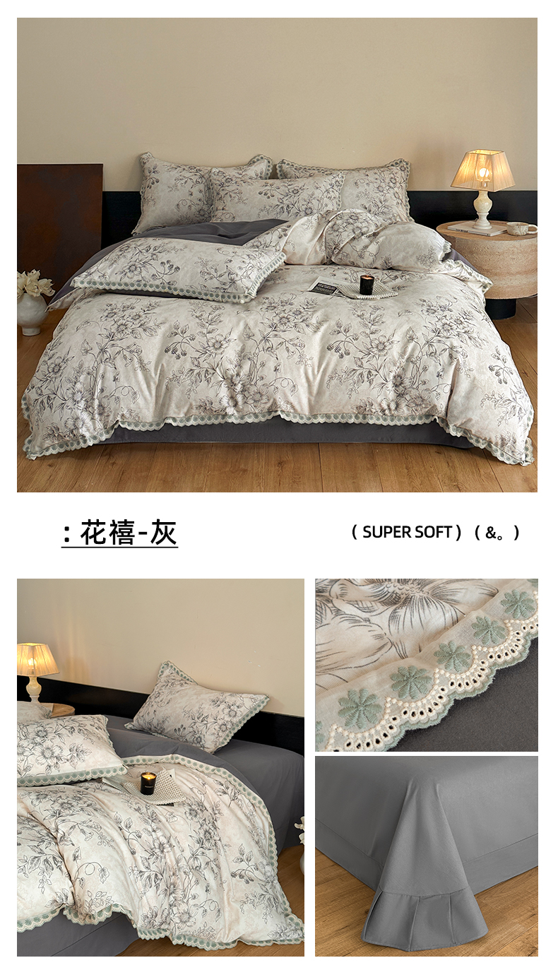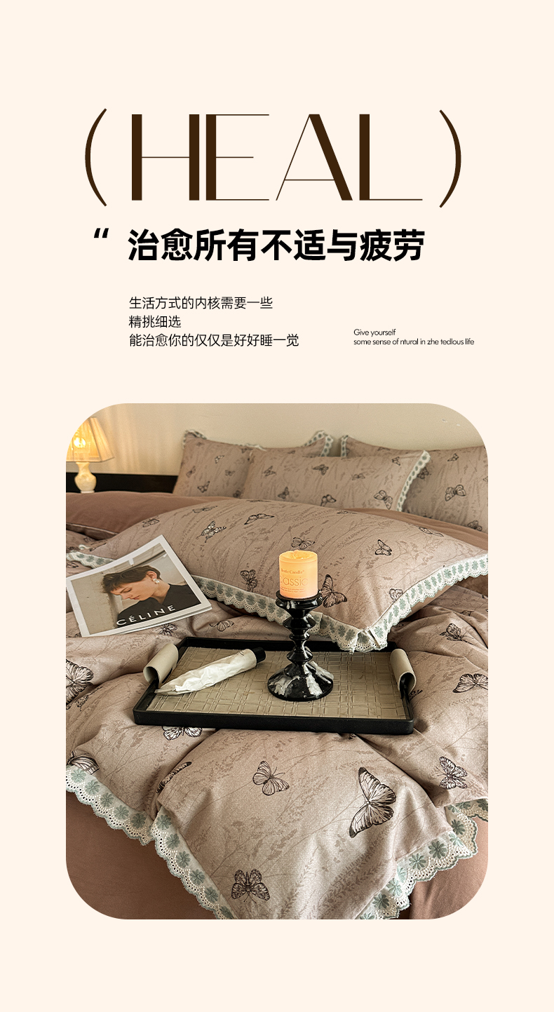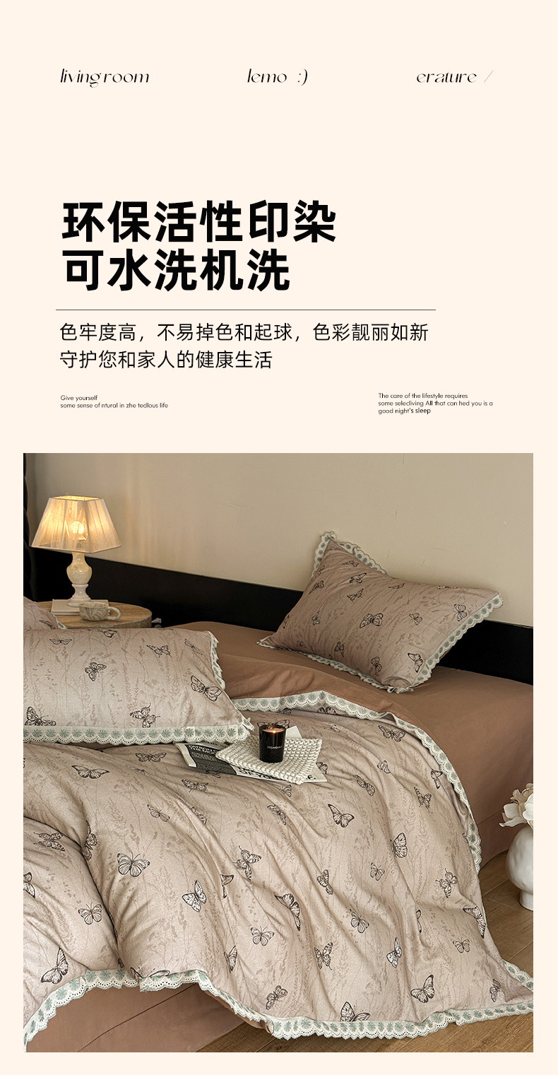 当前位置: 91家纺网 > 商品网购 > 床品套件 > 四件套 > 全棉普通四件套 > 帛美家纺 2025年新款全棉纯棉花边印花磨毛四件套 梦蝶