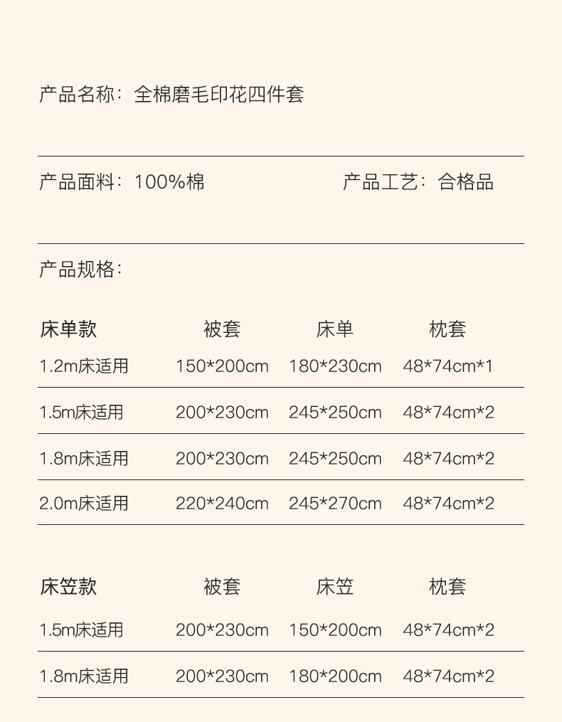 单被套200x230cm | ¥85.00 |