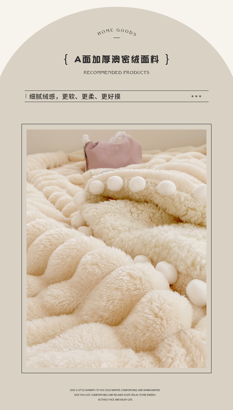 商品名称:潮邦创意家居 2025新款宽条球毯大抽条配羊羔绒立体工艺绒毯毛毯盖毯 宽条球毯白