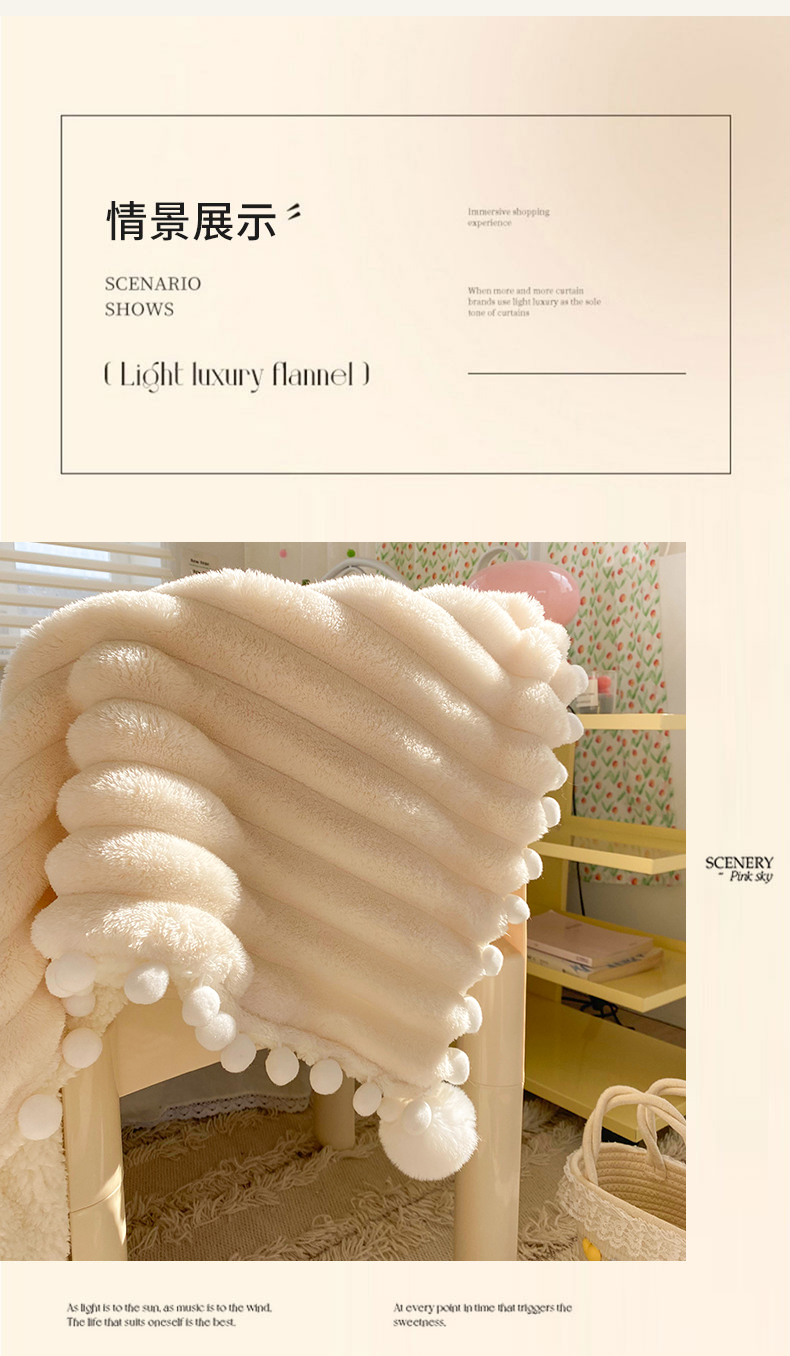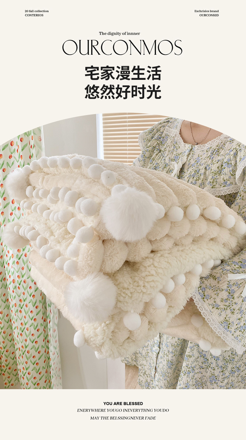 (总)潮邦创意家居 2025新款 奶芙绒流苏球毛毯,薄荷绿,焦糖咖,绵云白,浅蓝灰,深暮灰,甜莓粉