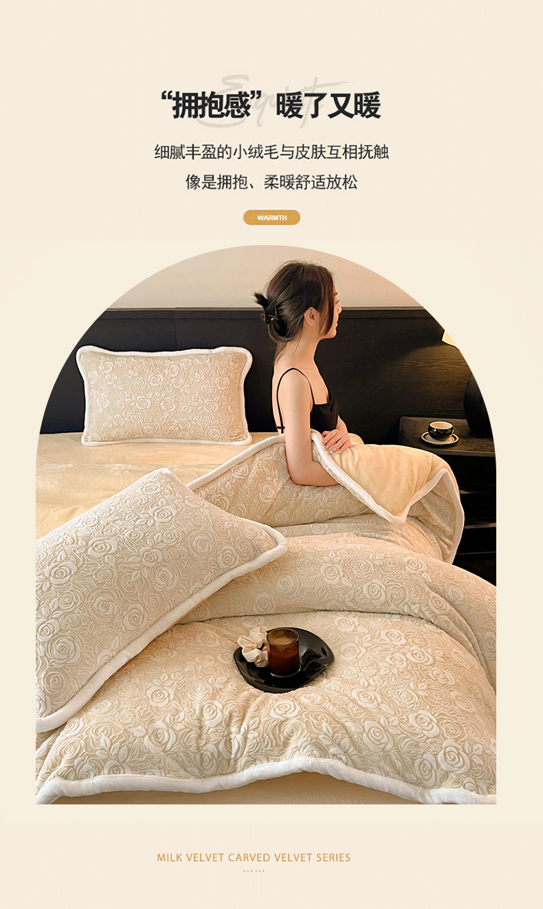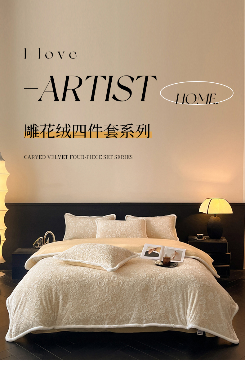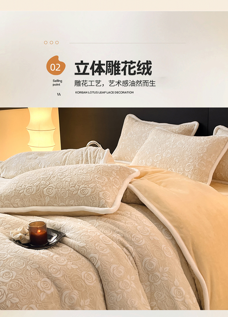 诺梵 2025新款立体雕花牛奶绒四件套_控价标准高于149,加大高于159 玫瑰之约-黄