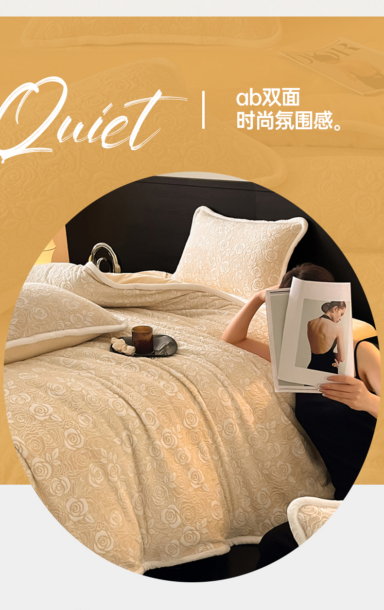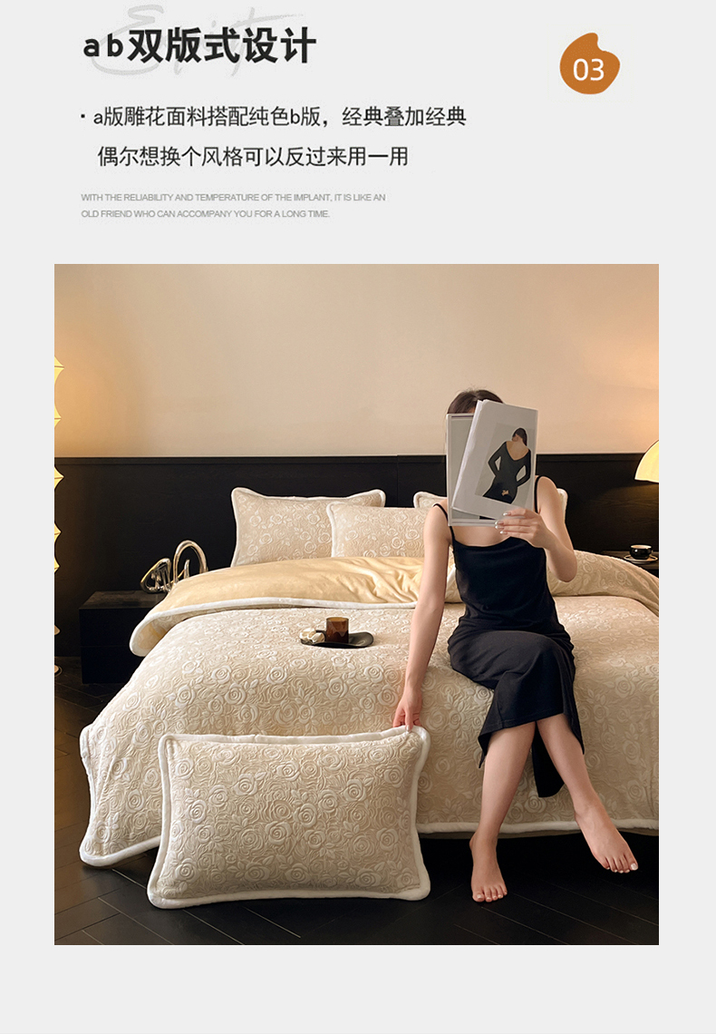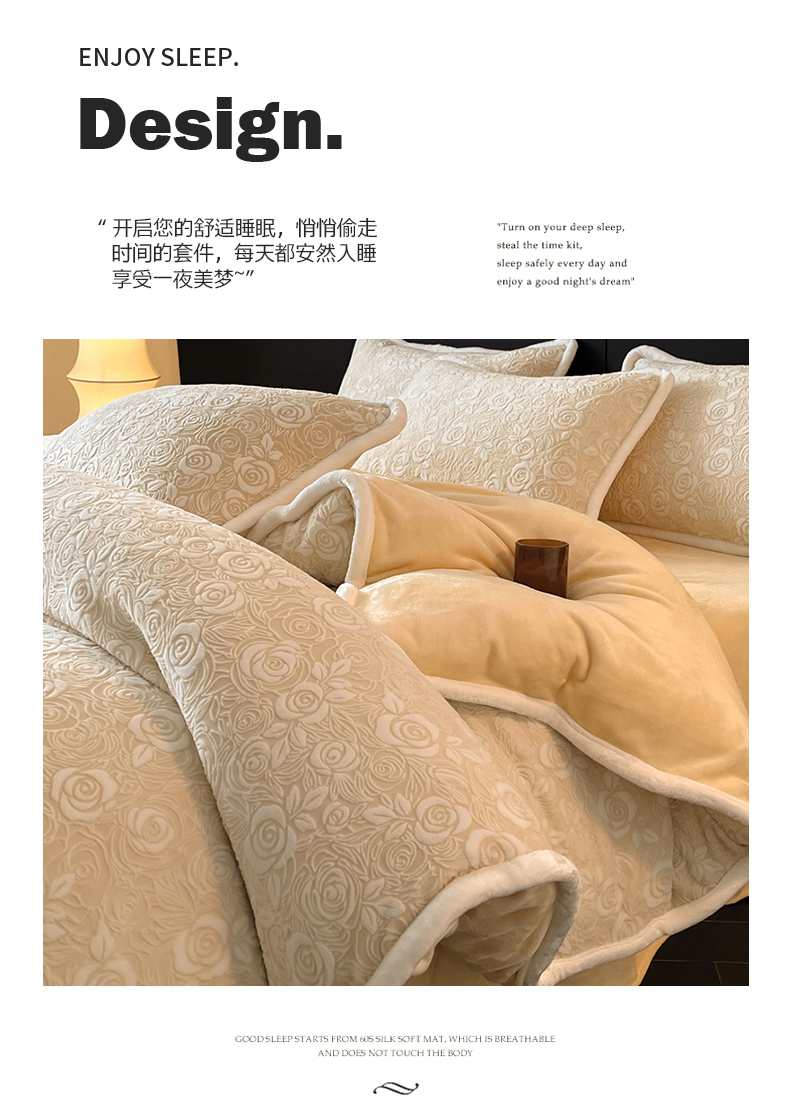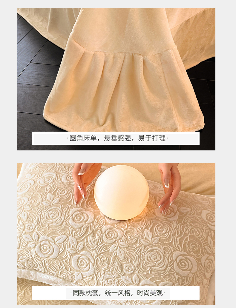 诺梵 2025新款立体雕花牛奶绒四件套_控价标准高于149,加大高于159 玫瑰之约-黄