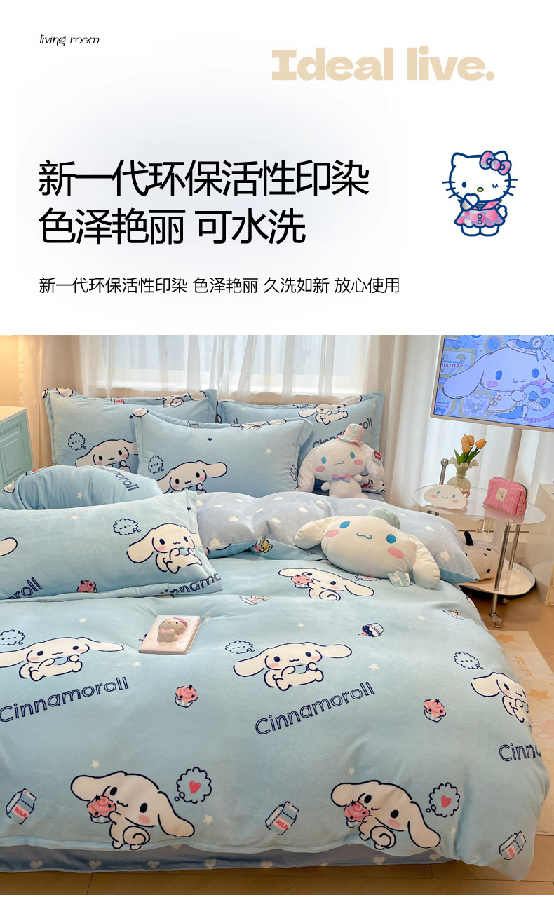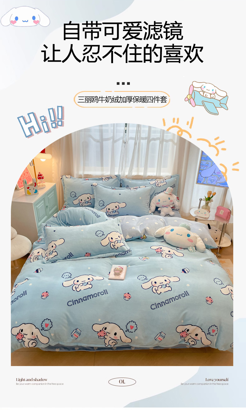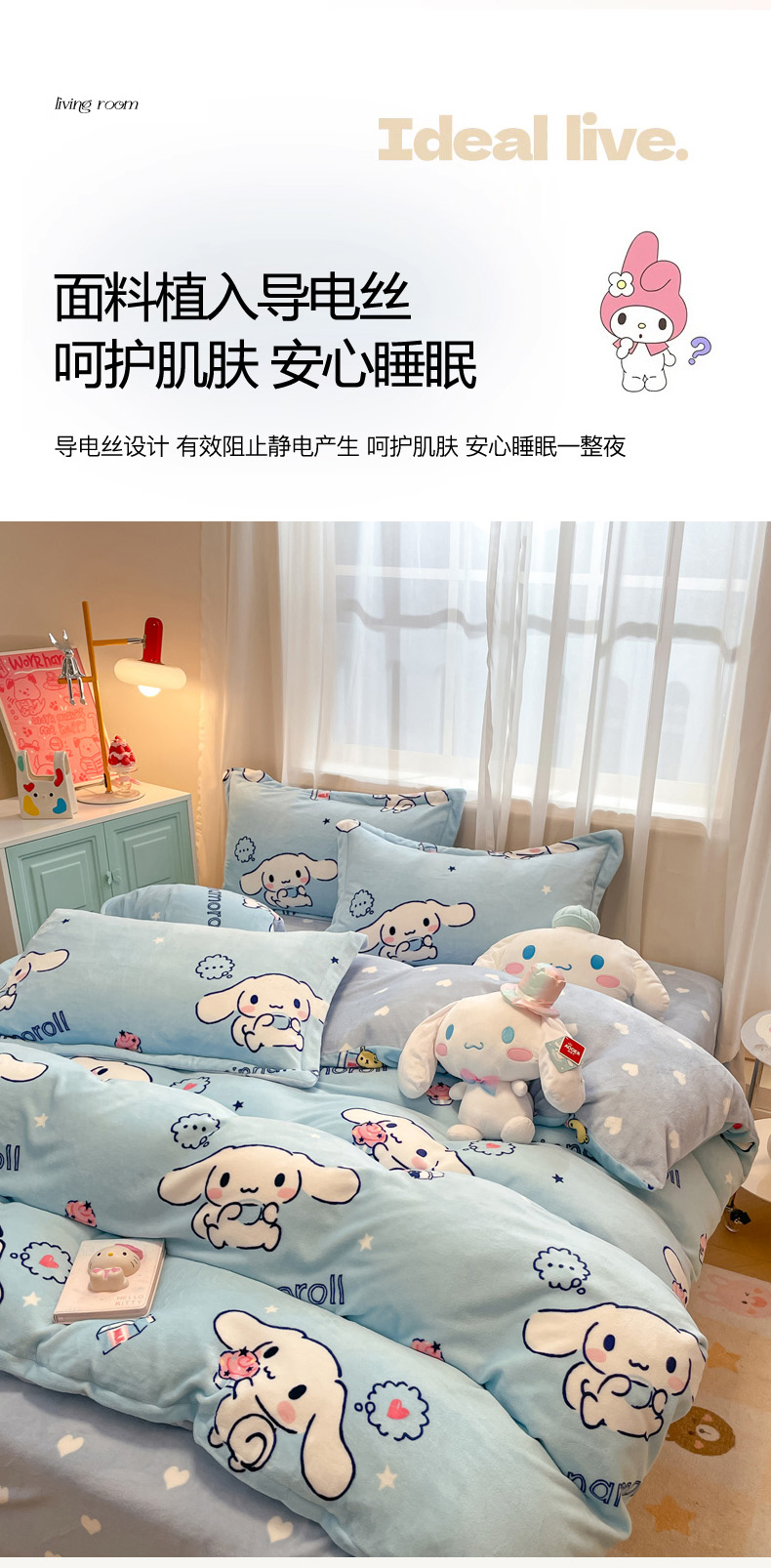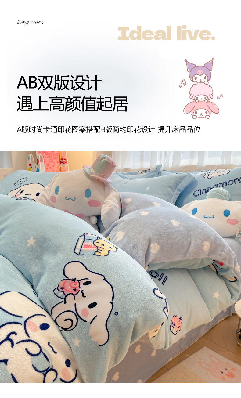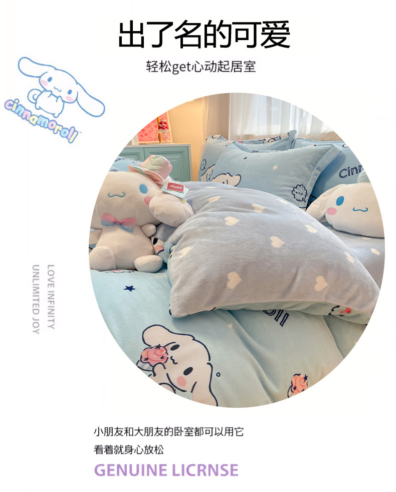 当前位置: 91家纺网 > 商品网购 > 床品套件 > 四件套 > 牛奶绒四件套 > 暮思家居 2025新款三丽鸥正版授权高克重200克加厚保暖卡通牛奶绒四件套 牛奶绒-甜品玉桂狗