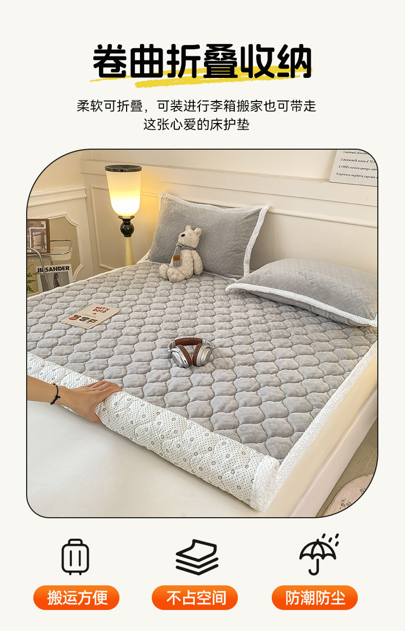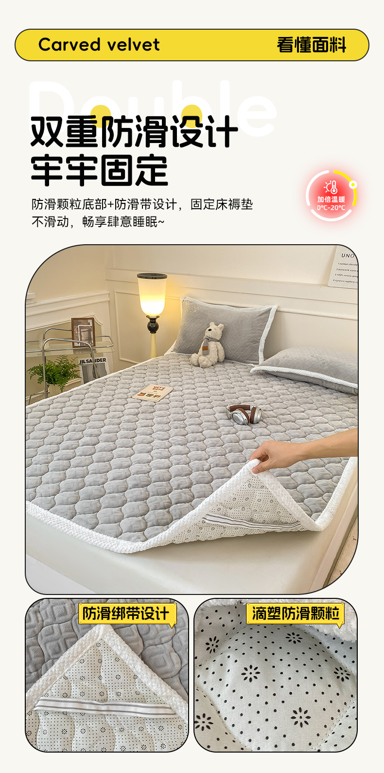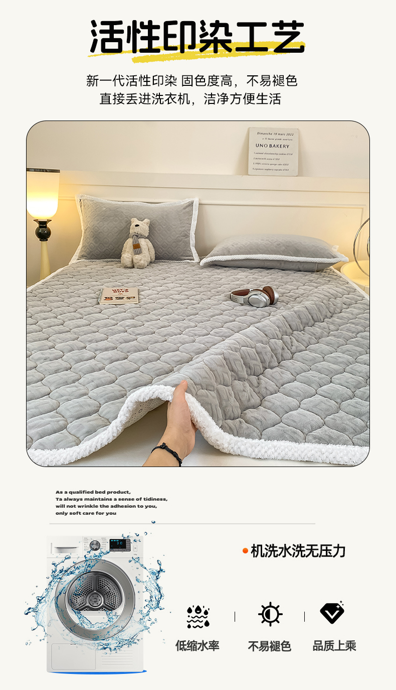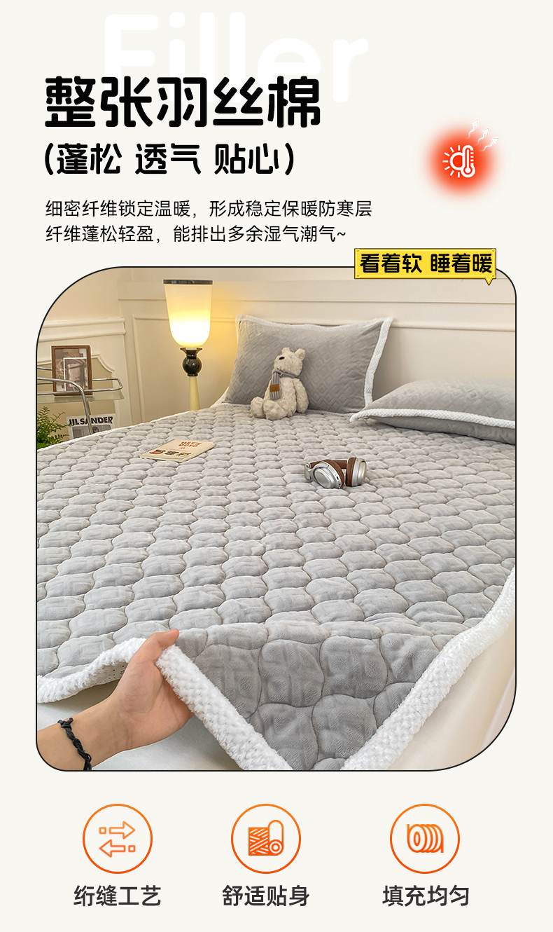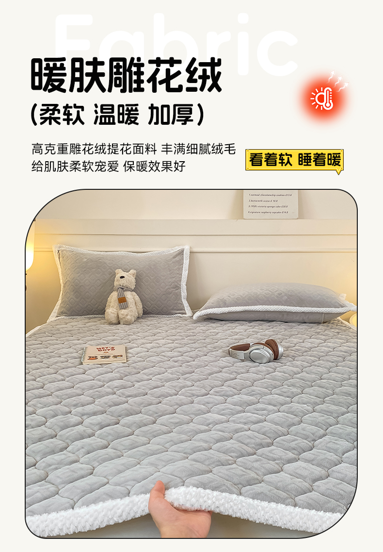 床垫/床褥 > (总)正邦家纺 2025新款加厚全消光牛奶绒床垫夹棉床褥高克重5D雕花牛奶绒单人床上下铺床护垫