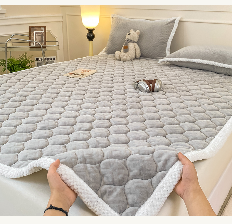 商品名称:(总)正邦家纺 2025新款加厚全消光牛奶绒床垫夹棉床褥高克重5D雕花牛奶绒单人床上下铺床护垫