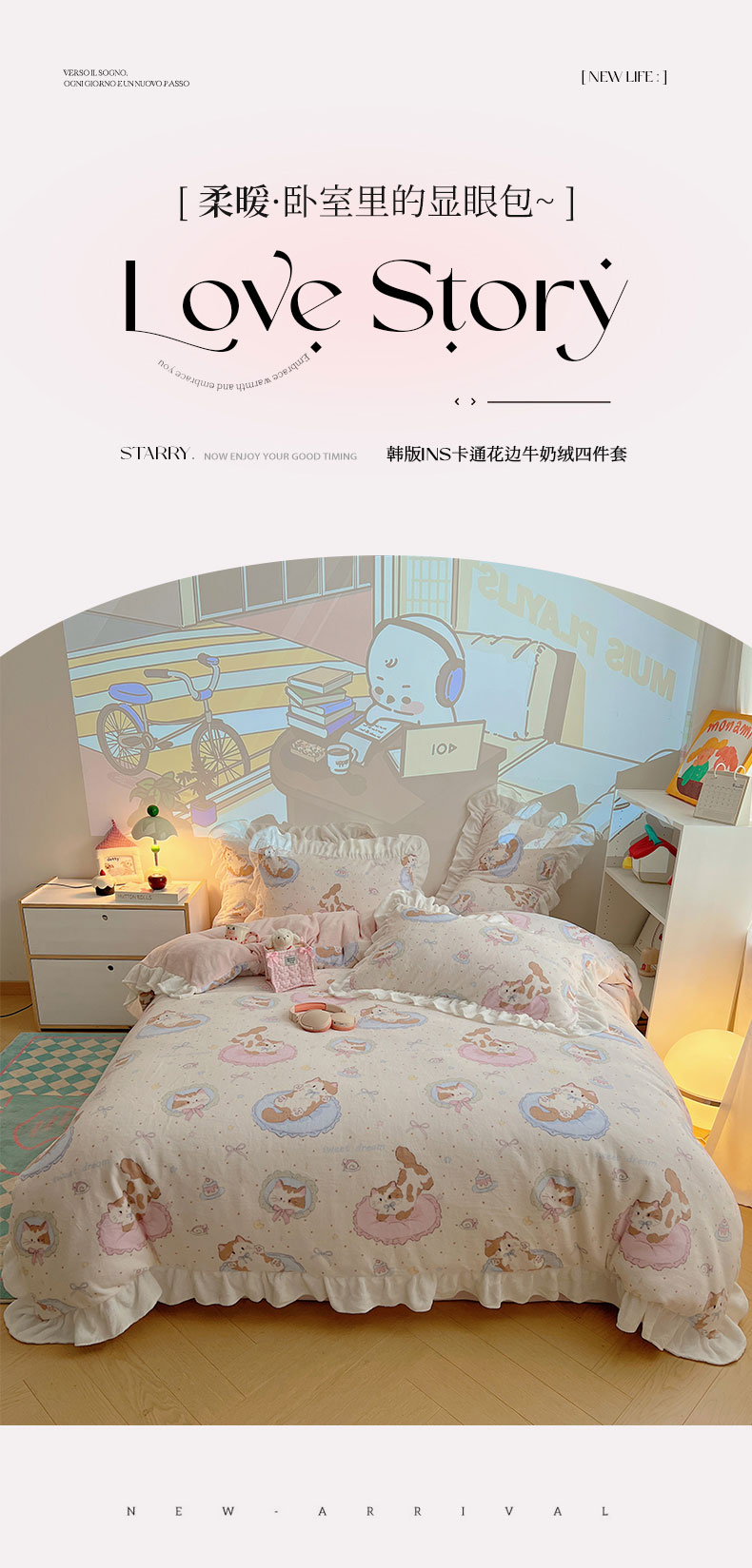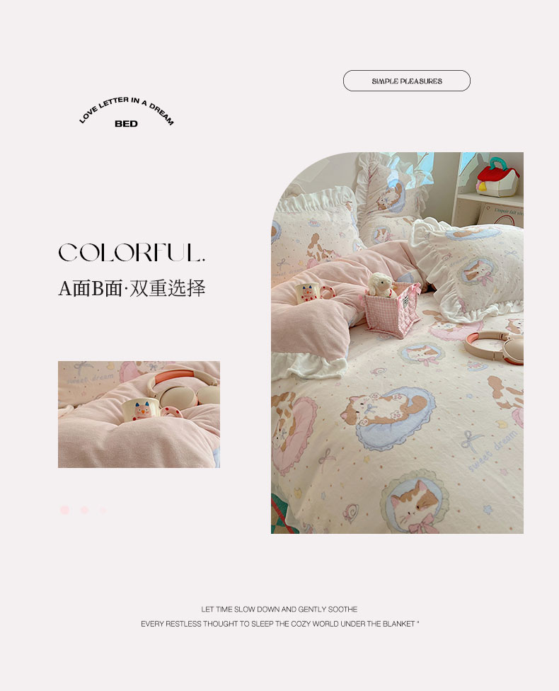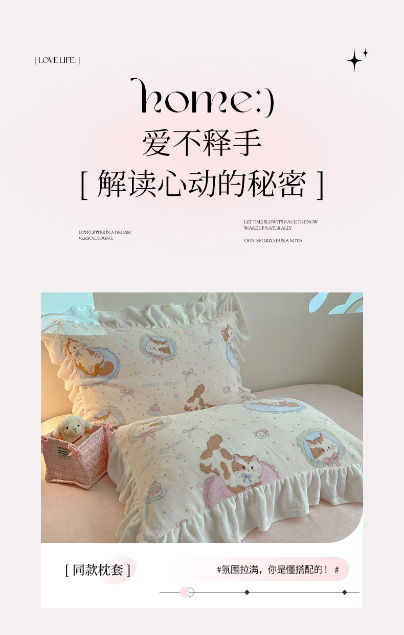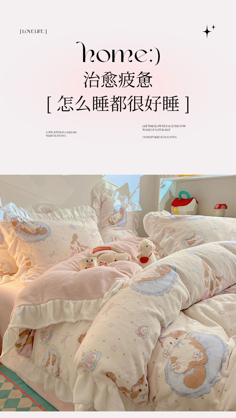 当前位置: 91家纺网 > 商品网购 > 床品套件 > 四件套 > 牛奶绒四件套 > 六巷胡同 2025新款韩式博主风花边款INS卡通A类牛奶绒四件套(第一系) 花边萝莉猫咪崽