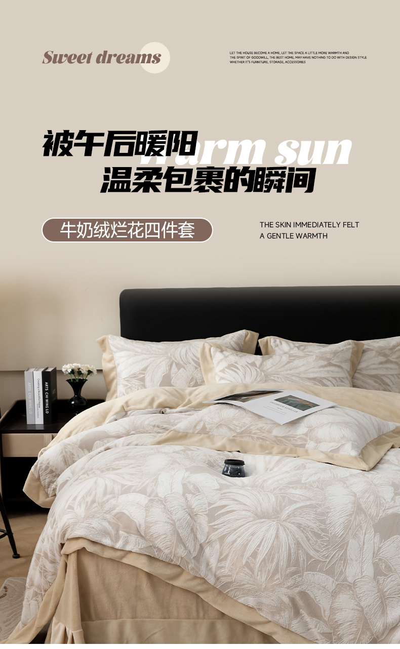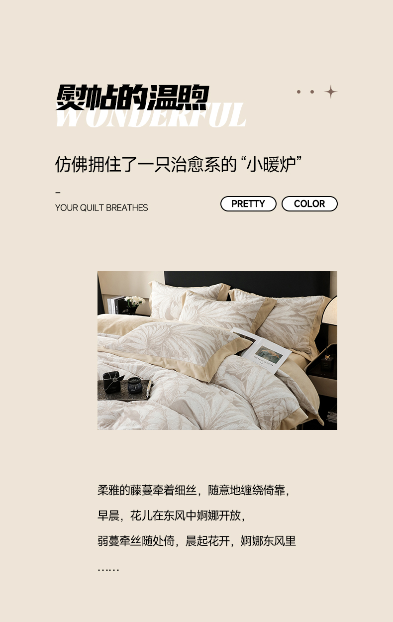商品名称:千姿坊 2025新款冬季雕花牛奶绒加厚保暖四件套复古风轻奢烂花床单被套床上用品 盛夏丛林-卡其