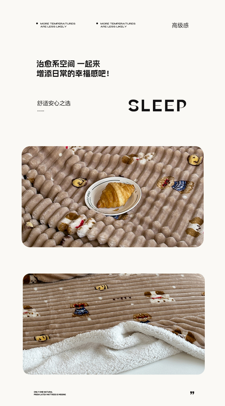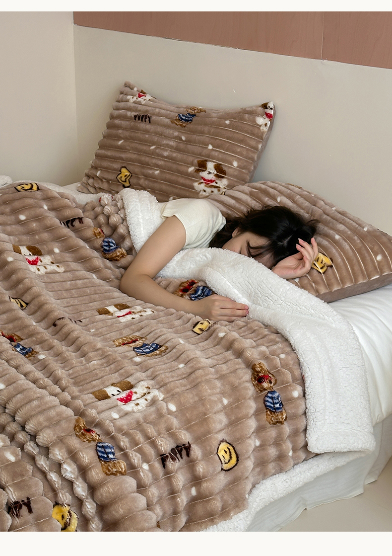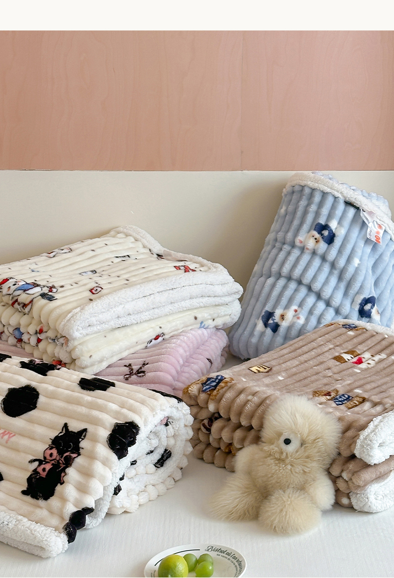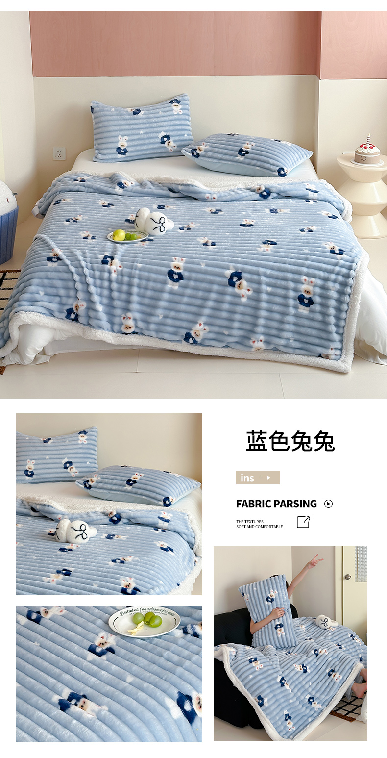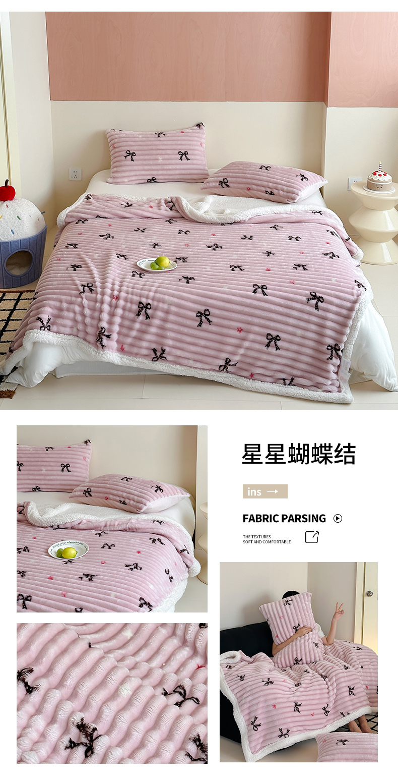 商品名称:RYB红黄兰 2025新款设计师原创抽条280g兔兔绒羊羔绒加厚毛毯 星星蝴蝶结